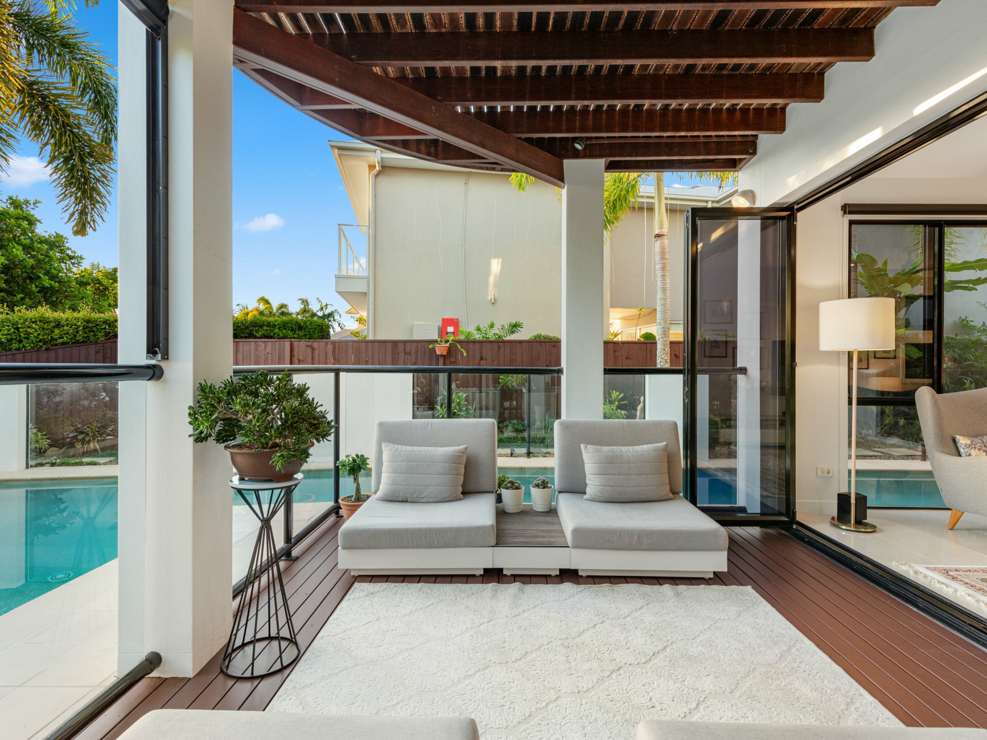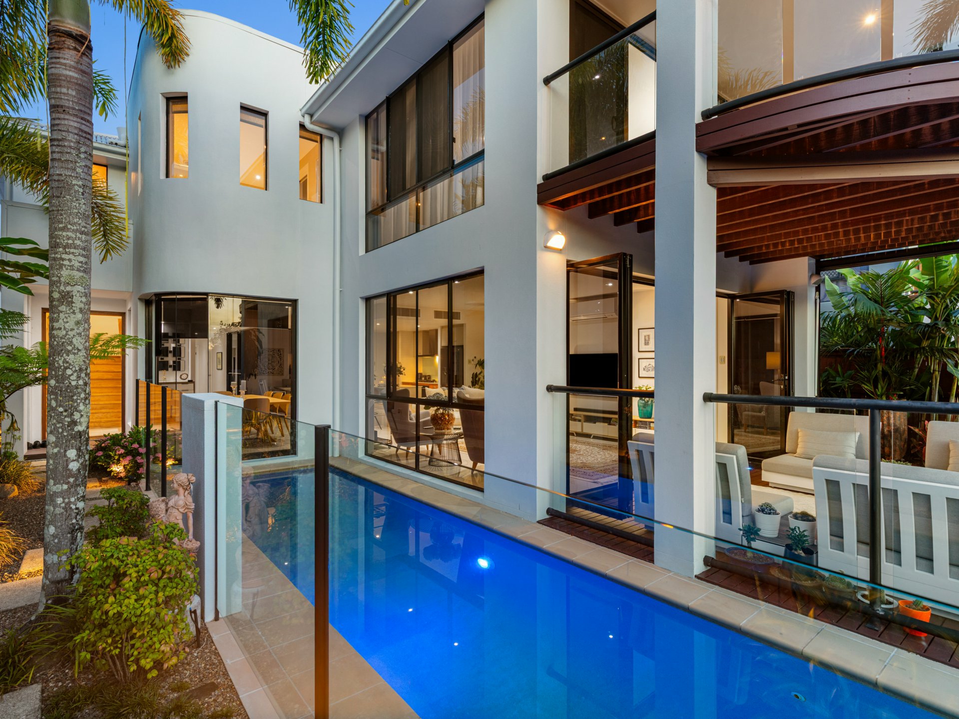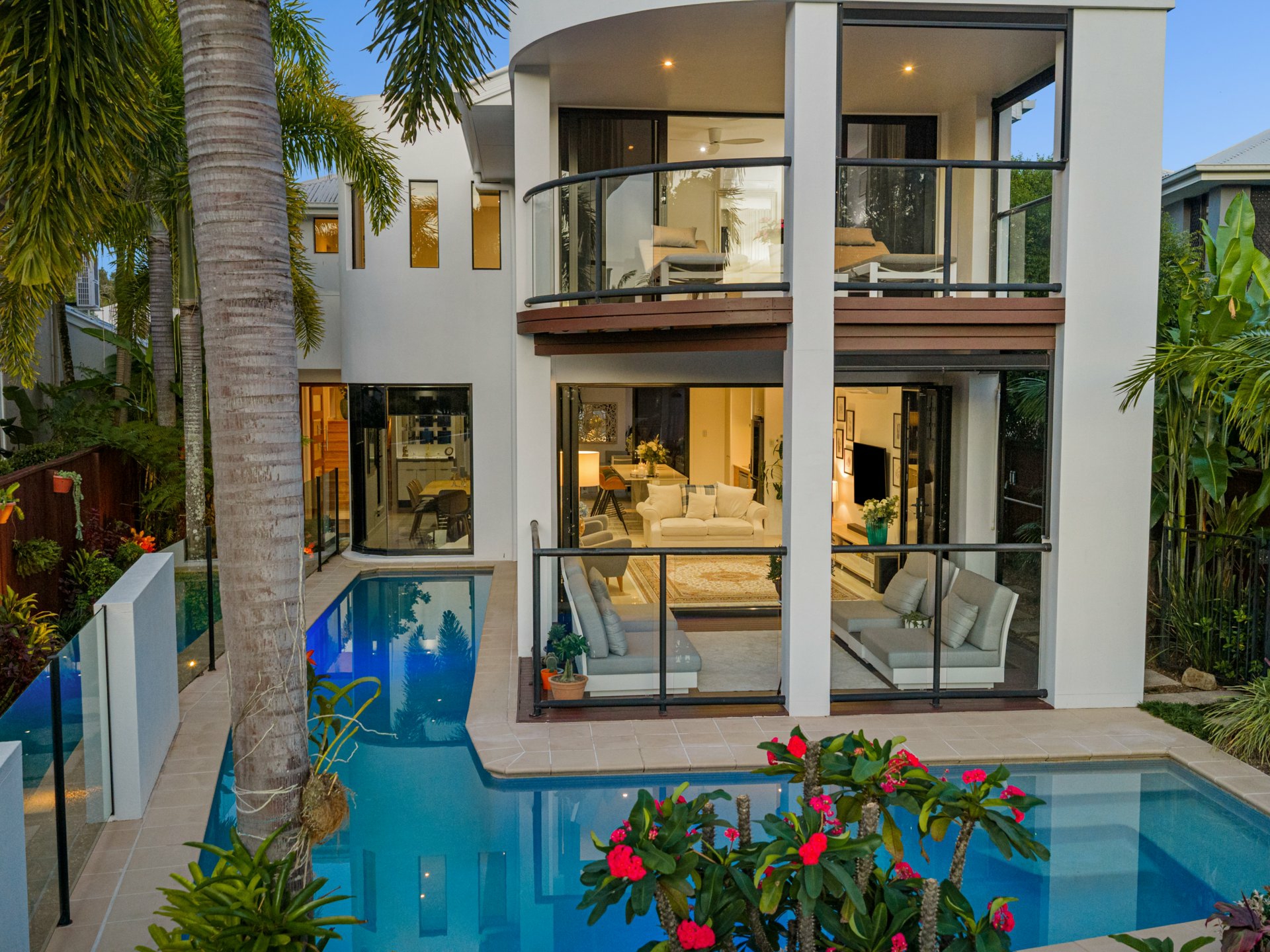 Delivering a sophisticated coastal lifestyle with a focus on design, privacy and effortless luxury, this architecturally considered residence occupies a prized dual frontage position directly opposite parkland and the Twin Waters canal system.