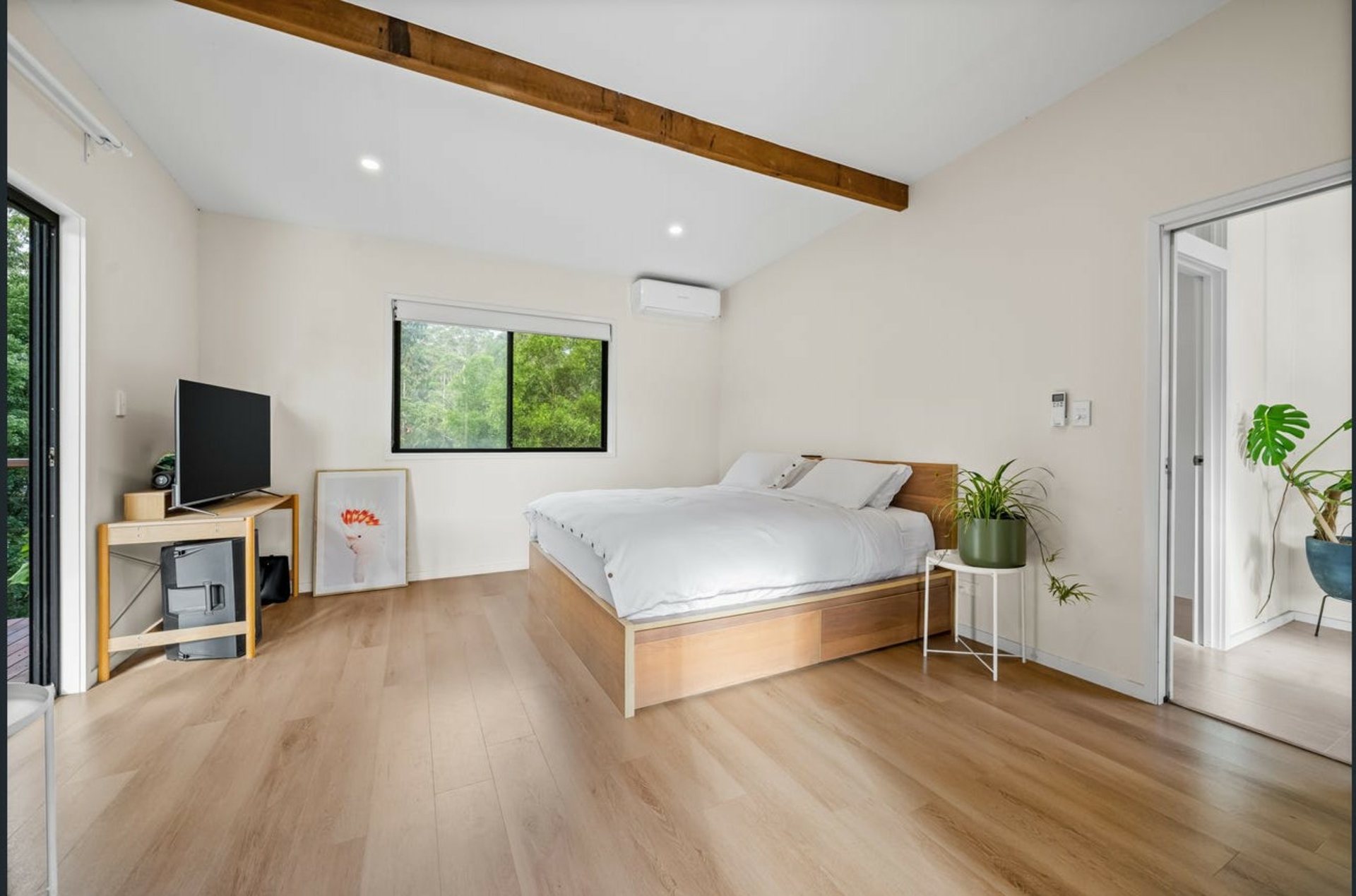 The existing residence offers four bedrooms and two bathrooms, with relaxed indoor-outdoor living that connects beautifully with the surrounding forest landscape.