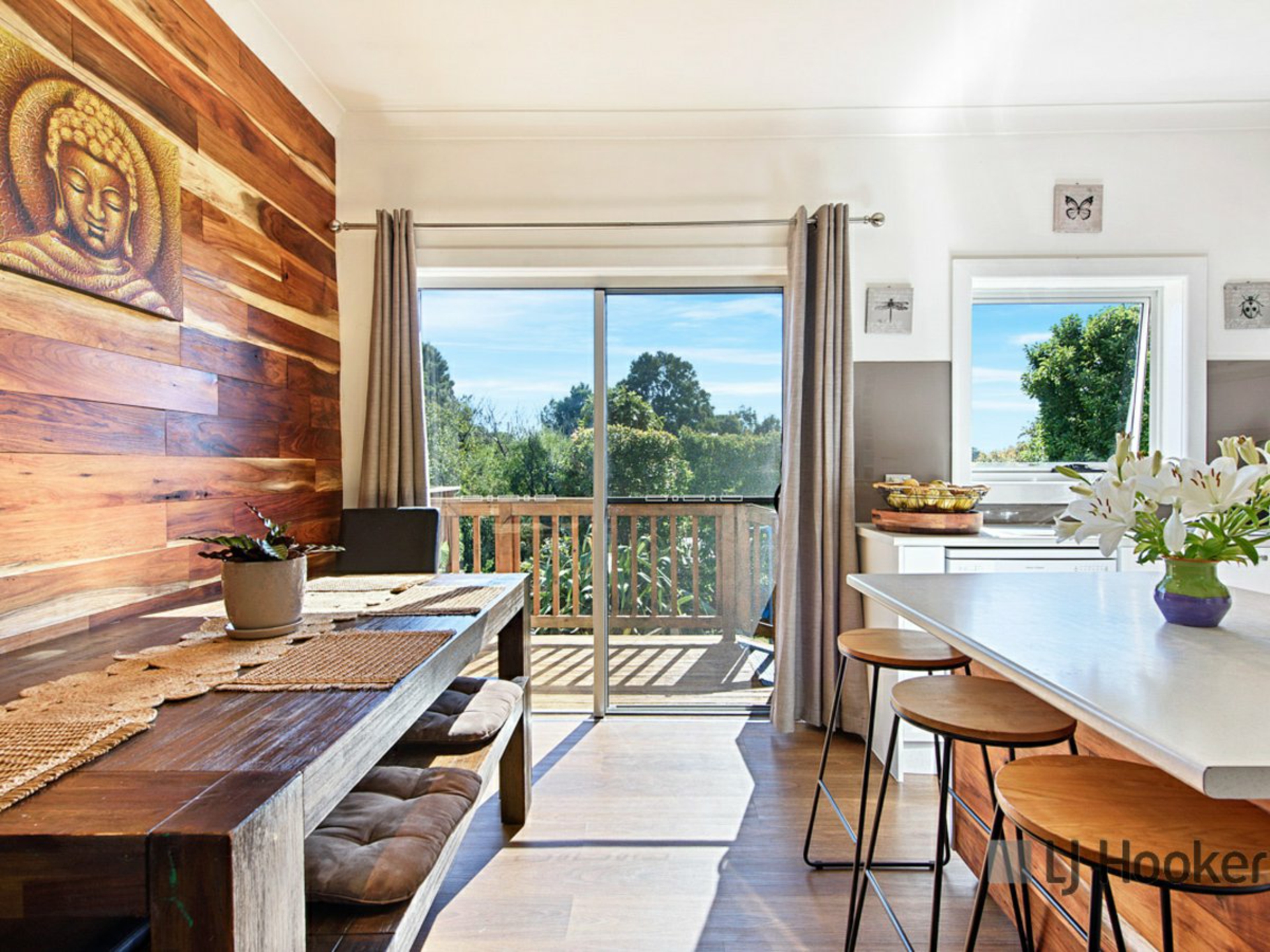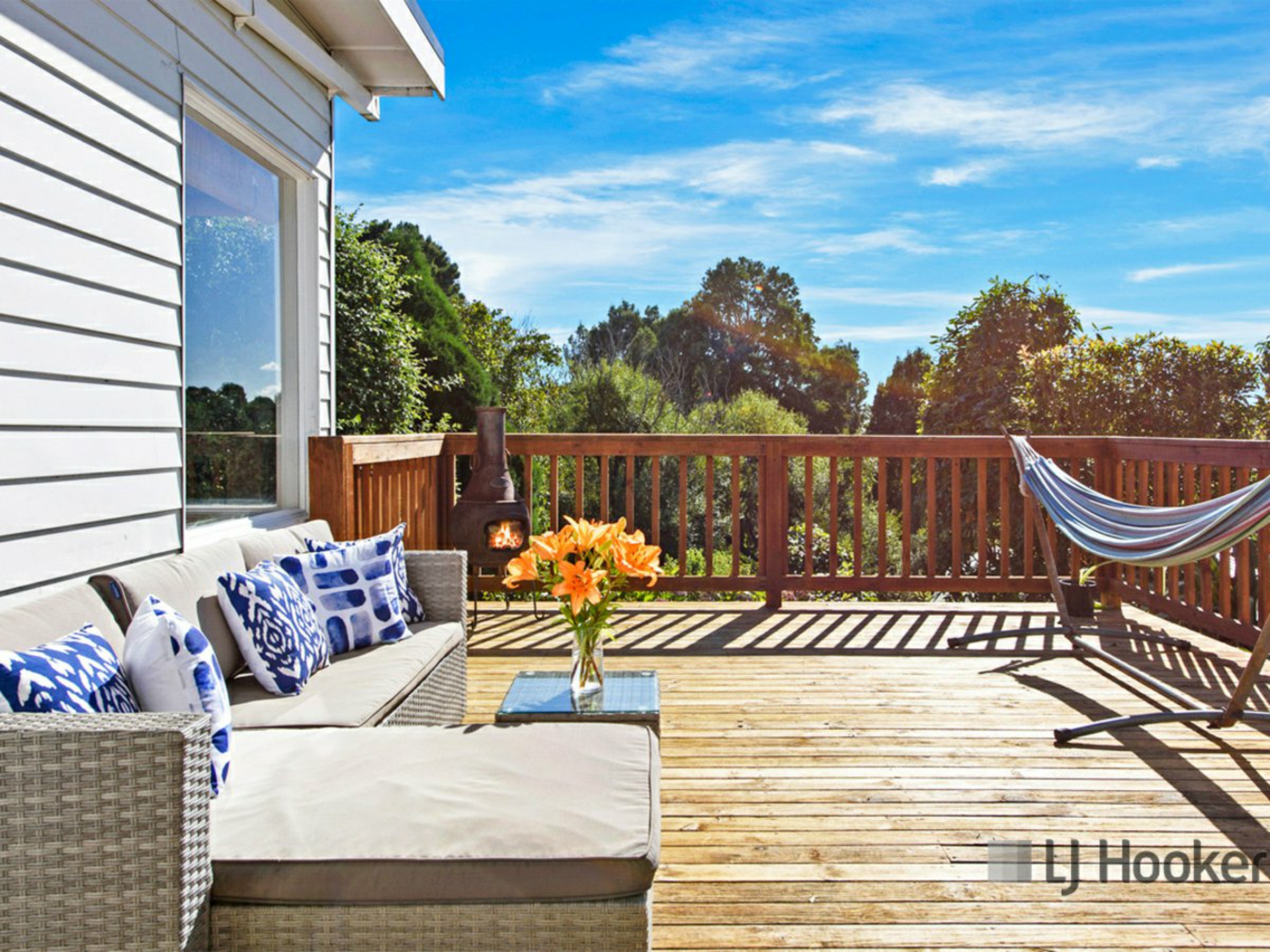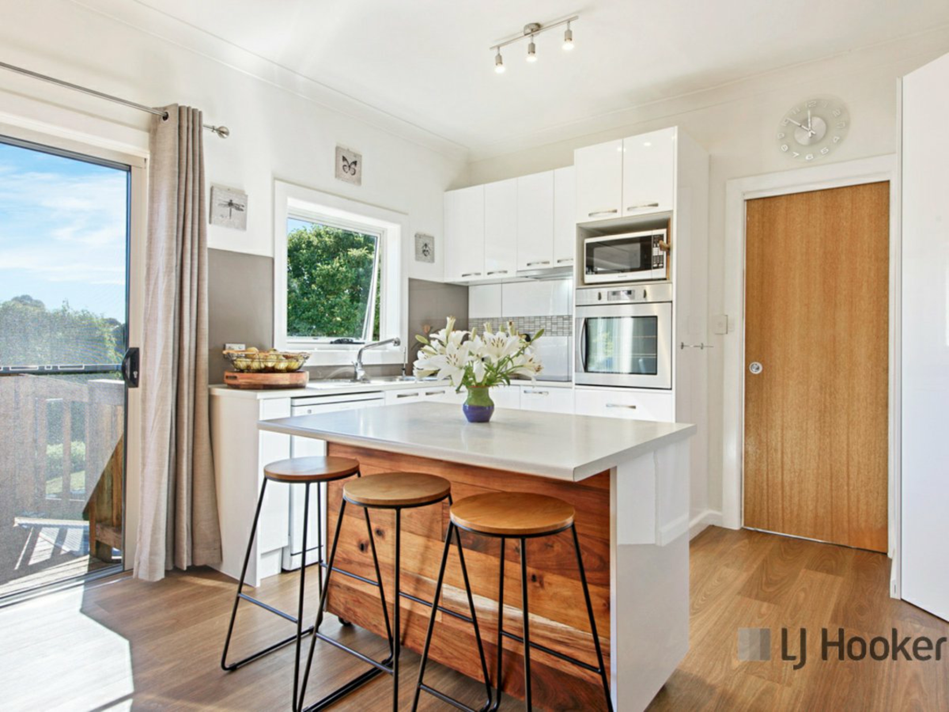 A sunlit kitchen comes equipped with quality stainless steel appliances, a dishwasher and a moveable island bench which can be positioned to meet your cooking needs. Glass sliders in the kitchen and lounge connect to a sun-drenched deck. Appreciating a prized, north facing aspect, the deck is an idyllic spot to relax or entertain.