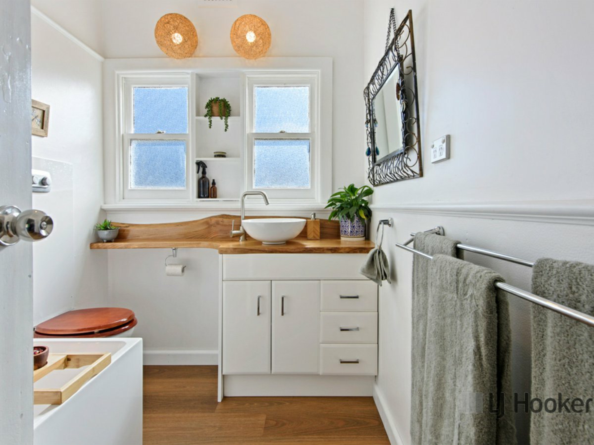 Perched behind a tree lined fence, this 1953 home has been beautifully restored for the modern era without losing the essence of its original rustic charm. Soaring 2.7m high ceilings combine with Blackwood feature walls enhancing the cosy and inviting living spaces throughout the lounge and dining areas.
