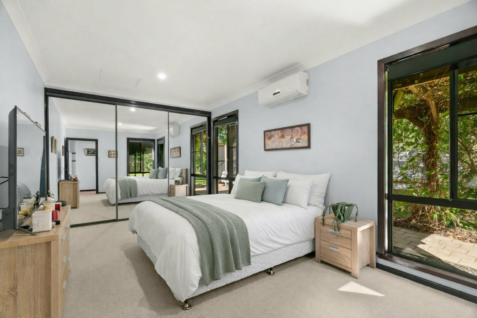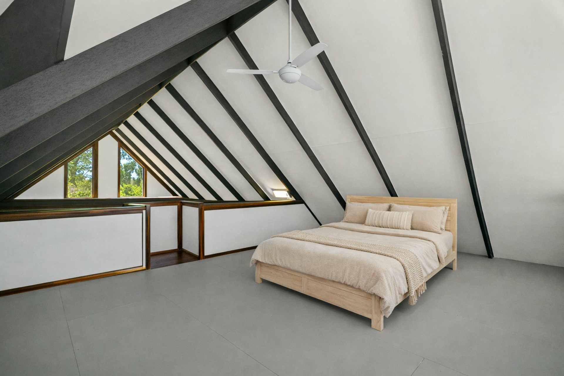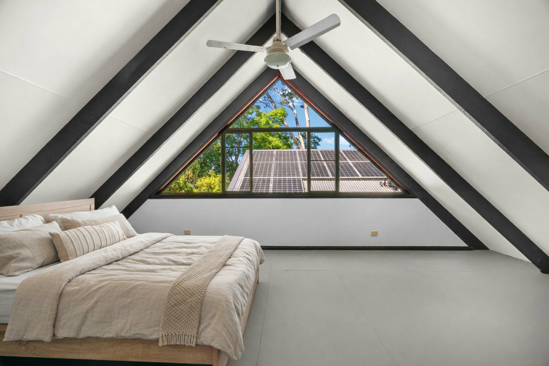 - Three generously sized bedrooms, with two featuring air conditioning and built-in wardrobes, and a huge loft bedroom as a private guest or teenagers retreat with a ceiling fan