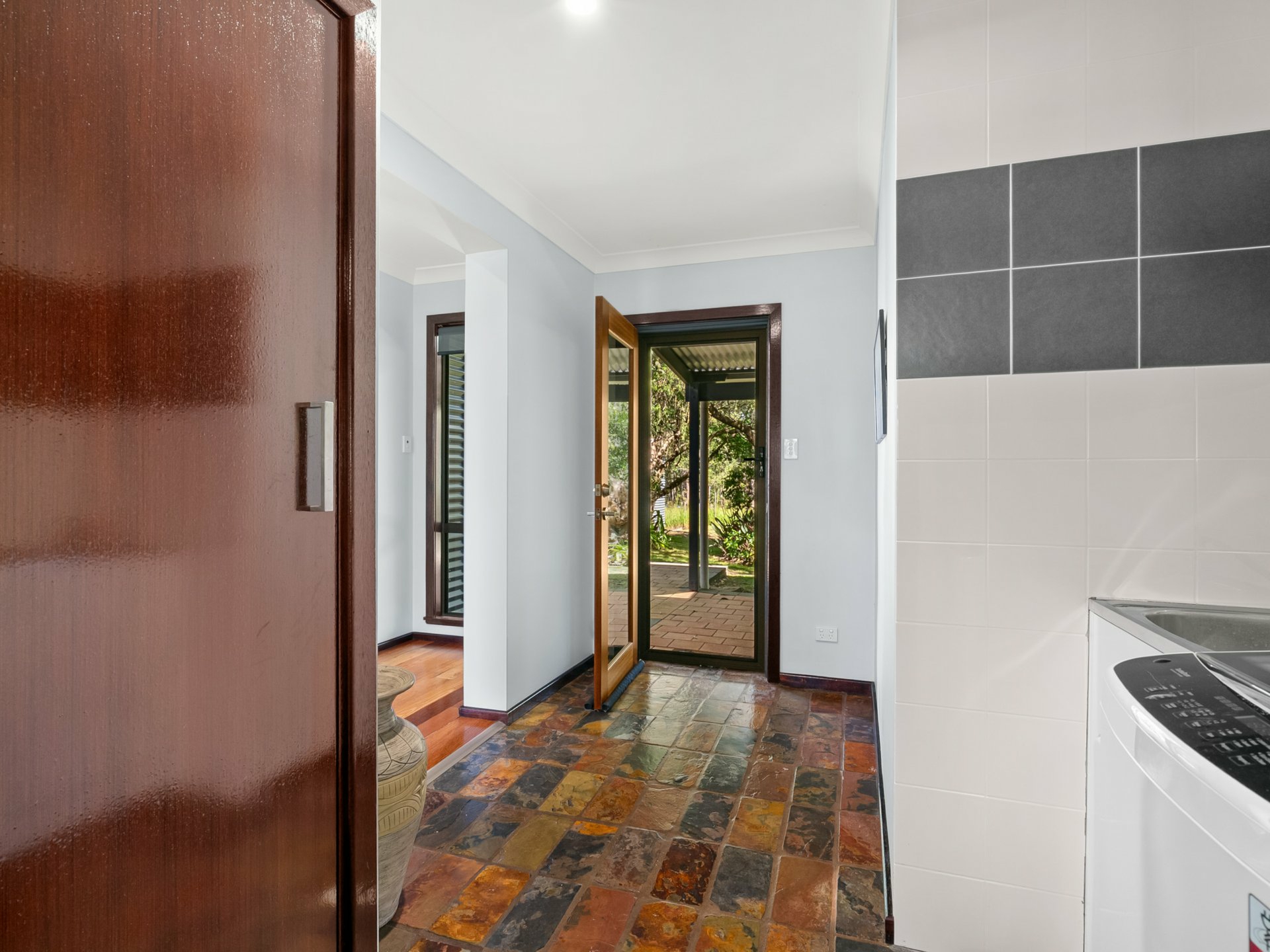 - Internal laundry room with direct access to the side patio, enhancing functionality and flow