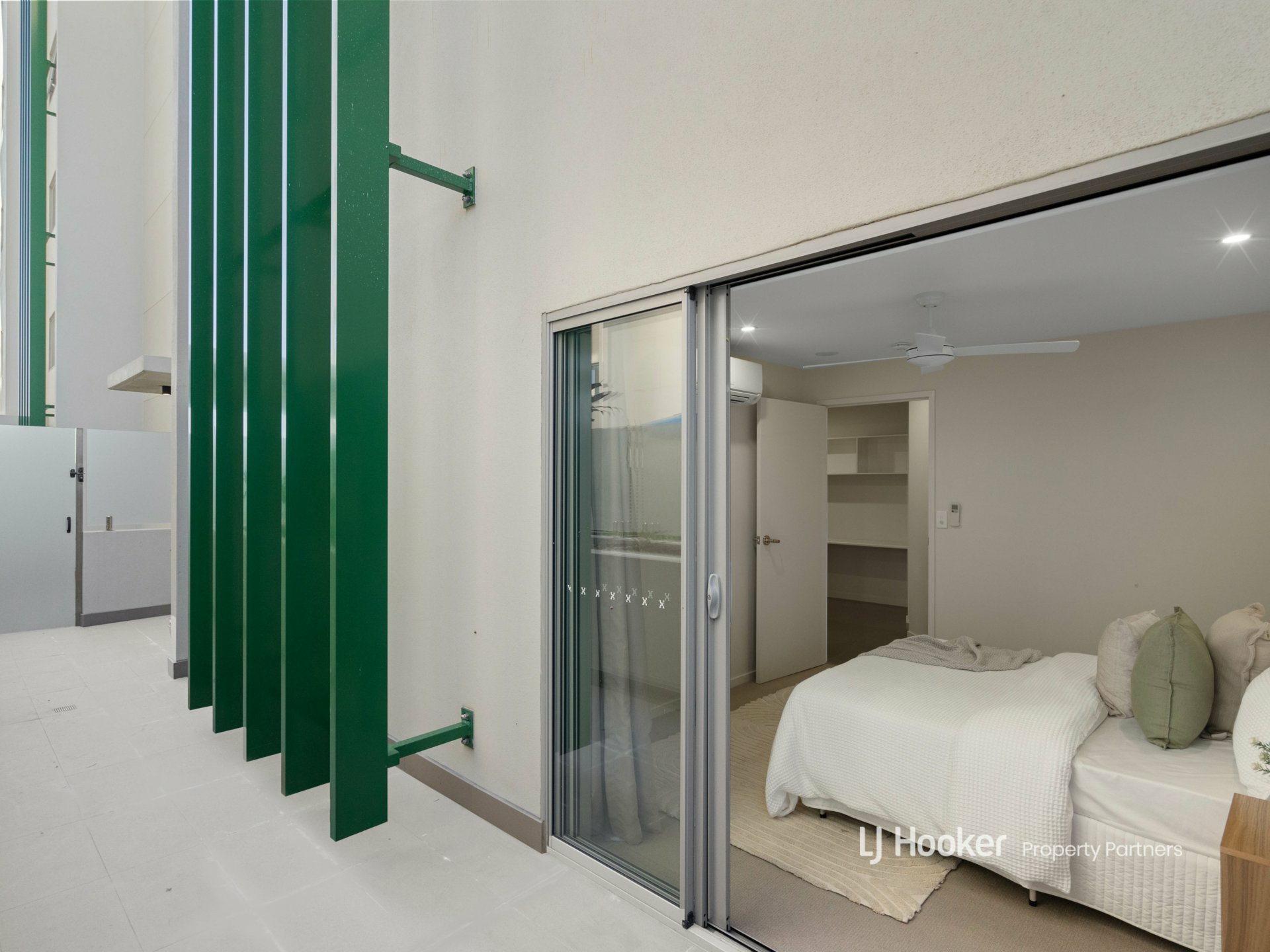 Also enjoying access to this first terrace is the master suite, with a partial divider that could easily be completely blocked off for total peace and privacy. This master bedroom, with its lush carpets, ceiling fan, and air-conditioning unit, flows into its walk-through wardrobe and personal ensuite - every comfort has been considered!