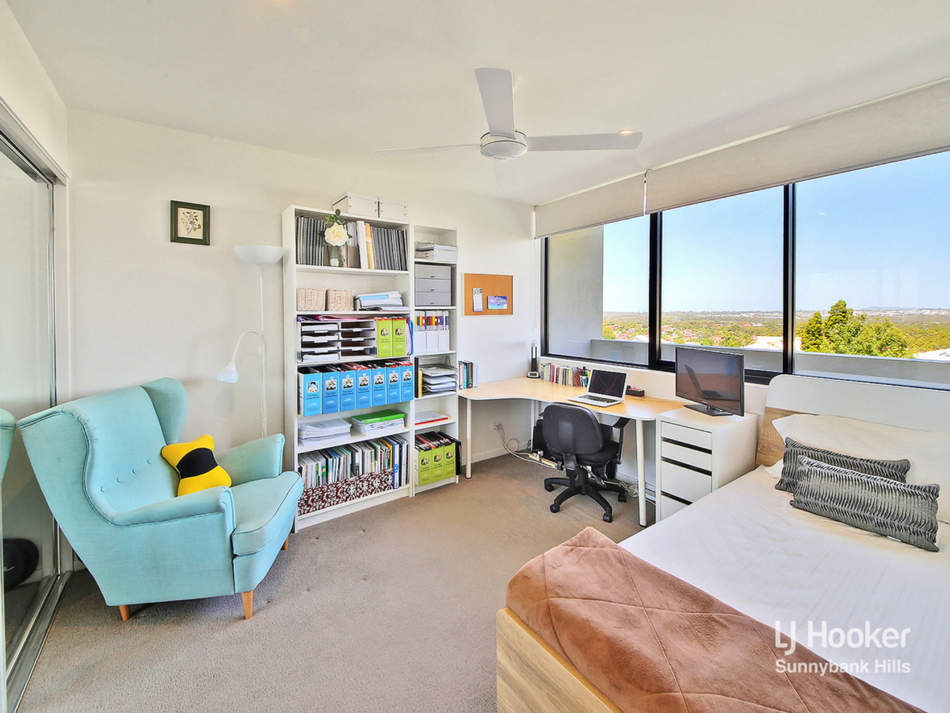 The main bedroom features an extra large built-in wardrobe with plenty of shelving and hanging space, plus gorgeous large windows overlooking the surrounding treetops. The other multi-purpose room is also spacious and can be used as a study or second bedroom.
