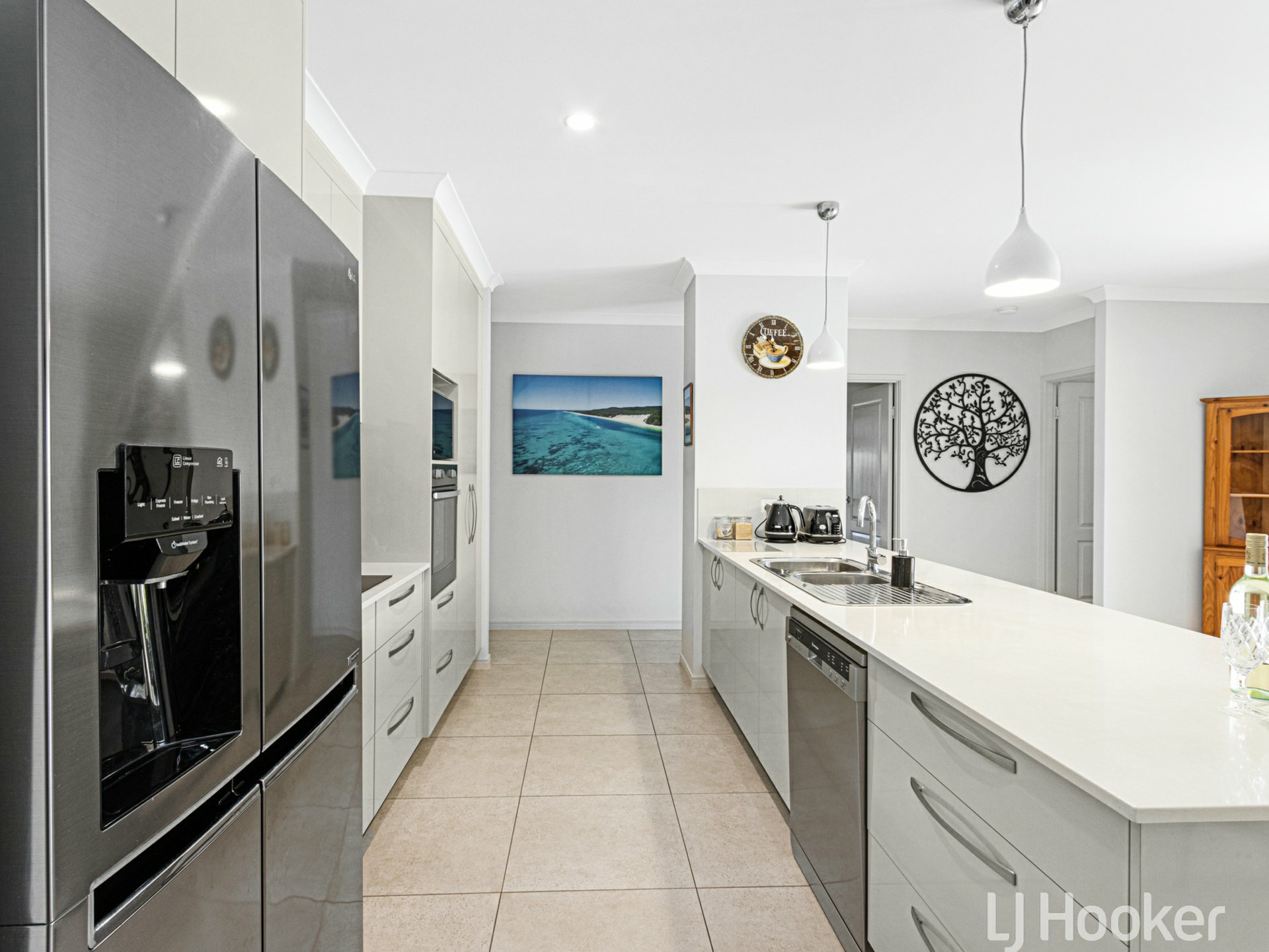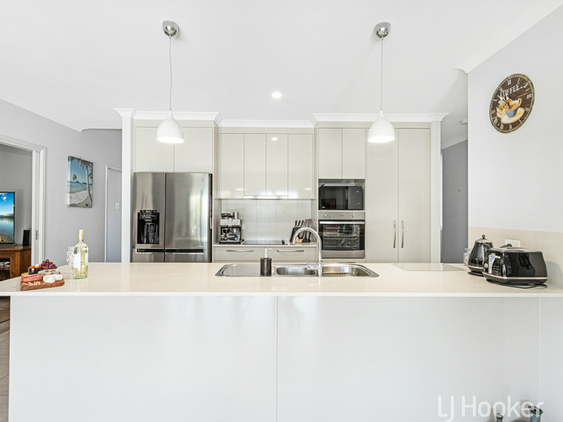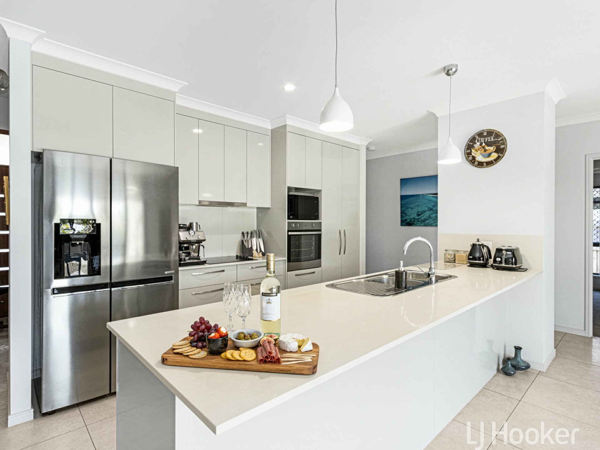 - Modern, stylish kitchen with stone benchtops, soft close doors, stainless-steel appliances, large fridge recess with plumbing in place.