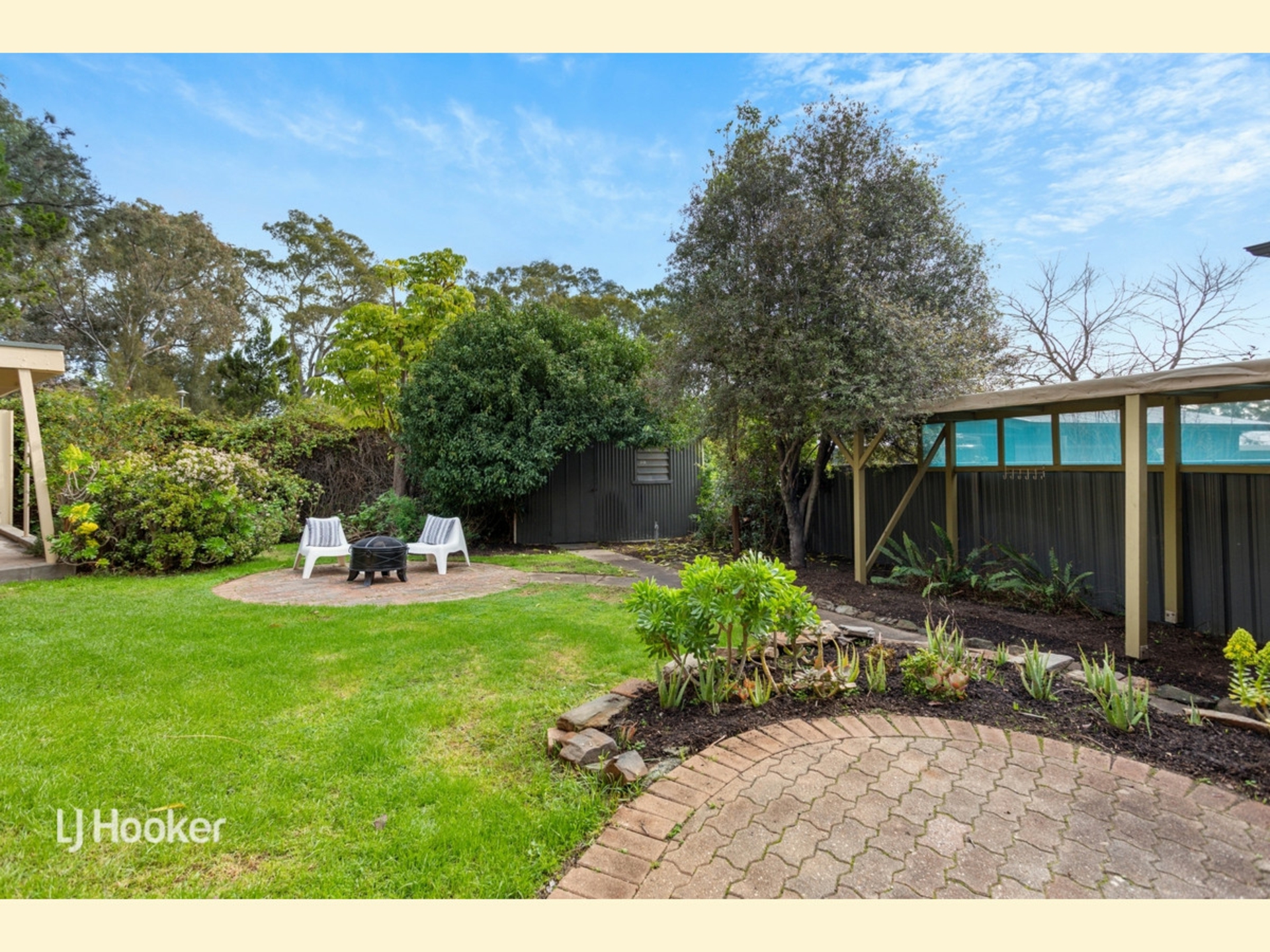 to roam, and includes a cosy fire pit area, a garden shed, and room to create your