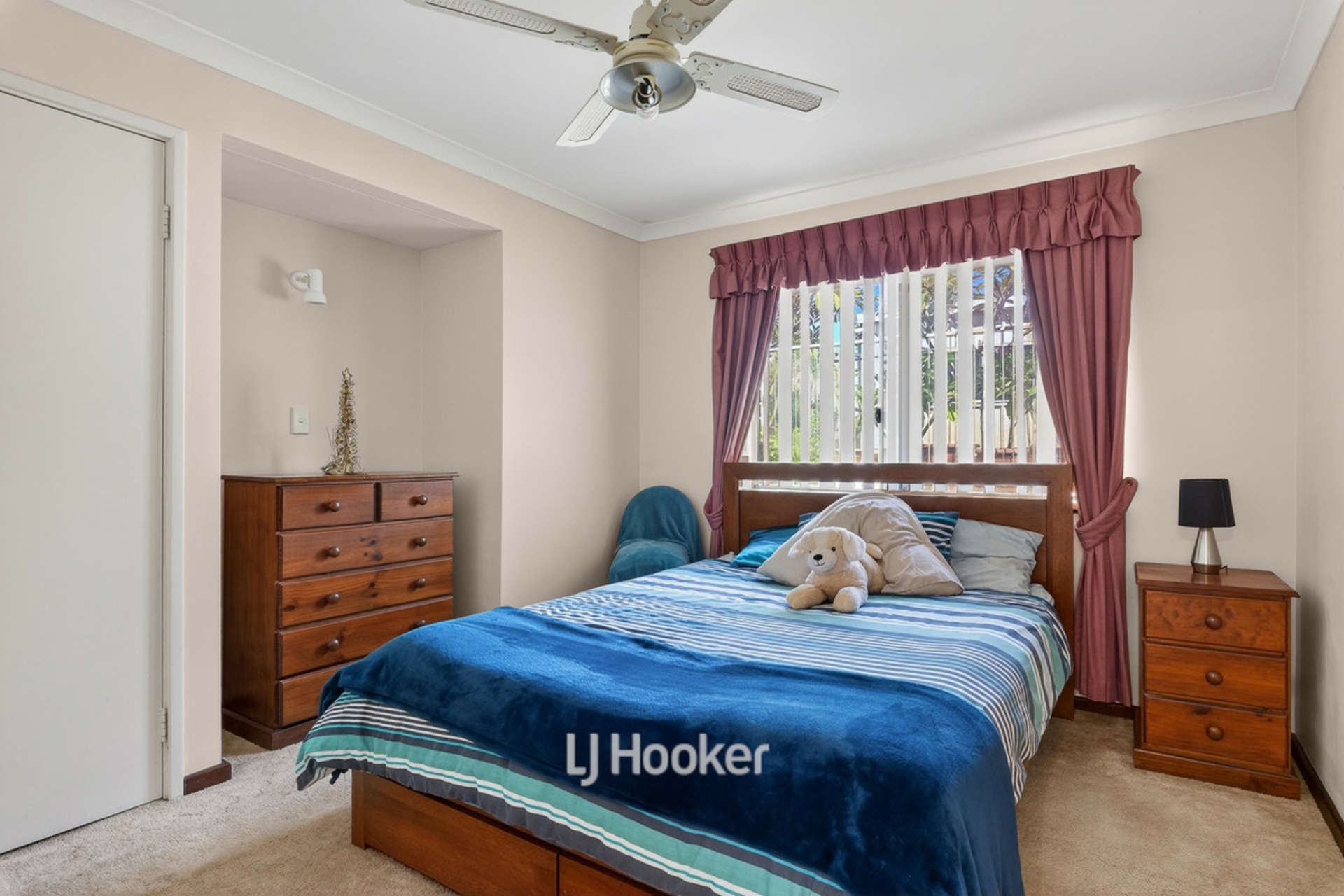Tucked away in a quiet cul-de-sac, this neat and well-presented 4 bedroom, 2 bathroom home offers generous space and comfortable family living. A wide entry welcomes you inside, leading through to a spacious front lounge that provides the perfect spot to relax or entertain guests. The well-appointed kitchen features stylish stone bench tops and overlooks the main living area, creating a practical hub for everyday living. Located near the minor bedrooms, the office with built-in robes is versatile and could easily be used as a fifth bedroom, guest room, or study.