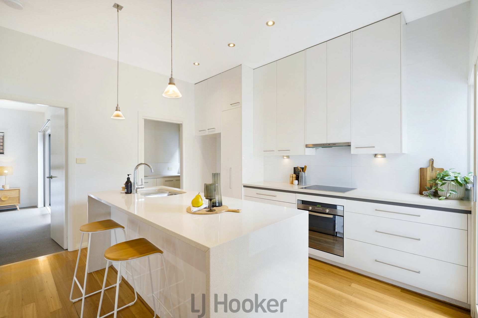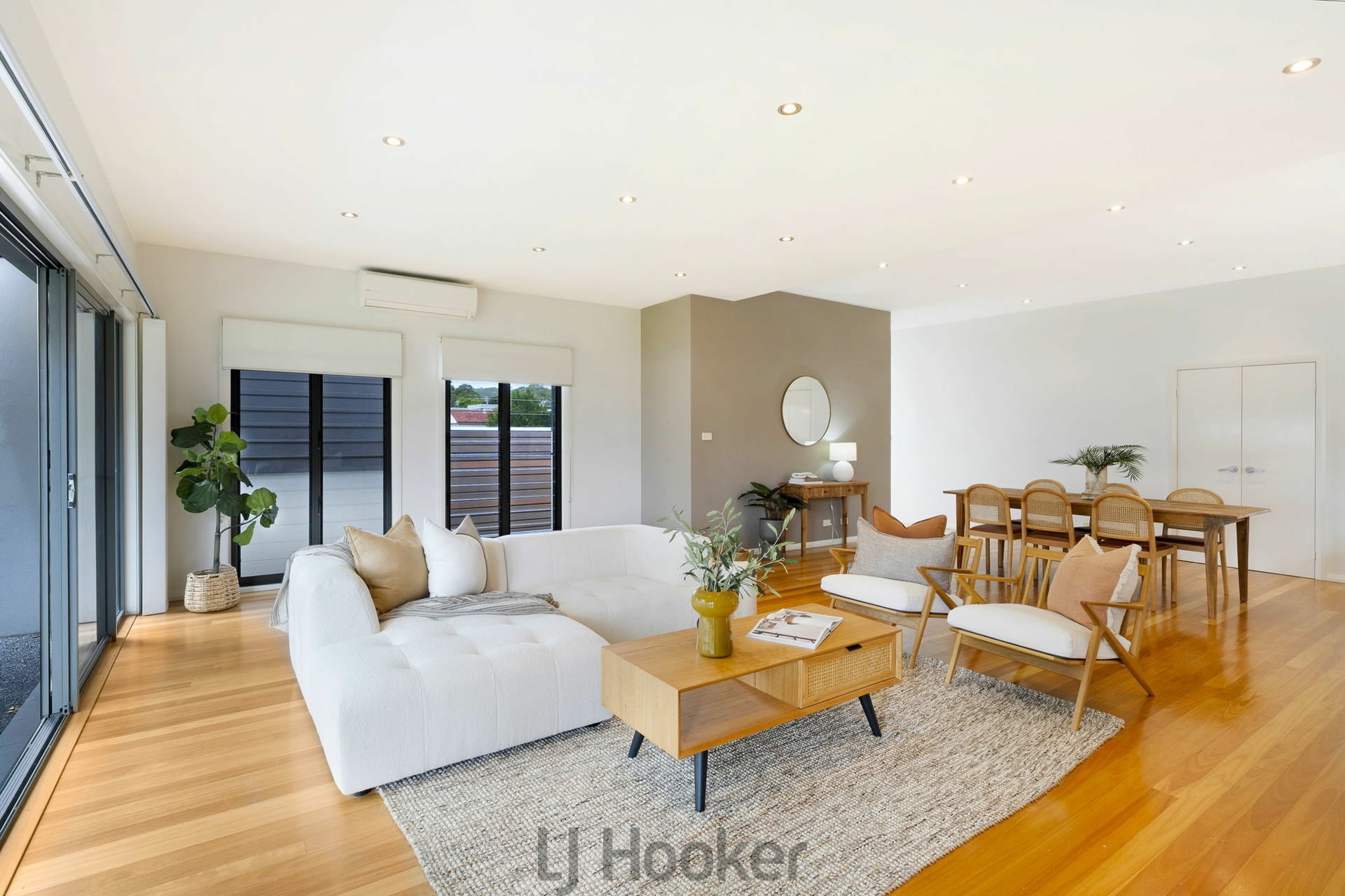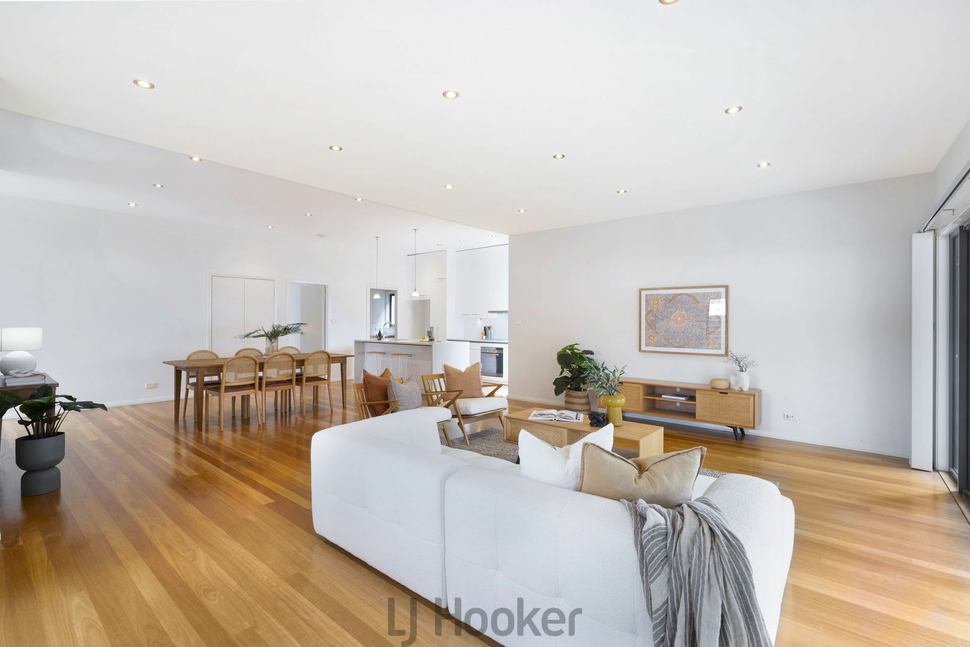 •Expansive open plan kitchen, dining and living area that is exceptionally spacious for a townhouse, enhanced by solid timber flooring and reverse cycle air conditioning.