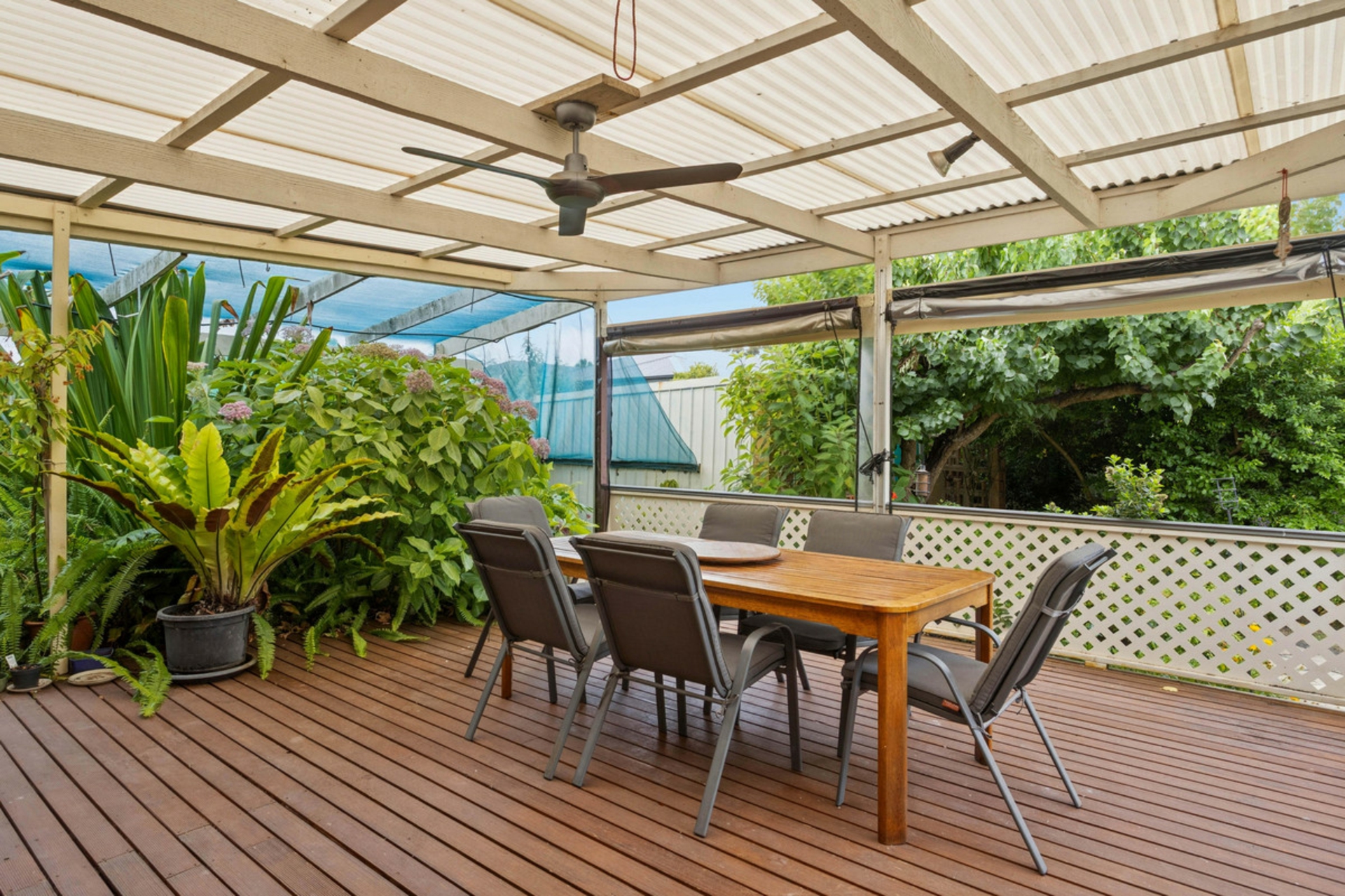 • Covered outdoor entertaining area with café blinds, overlooking the established lawn