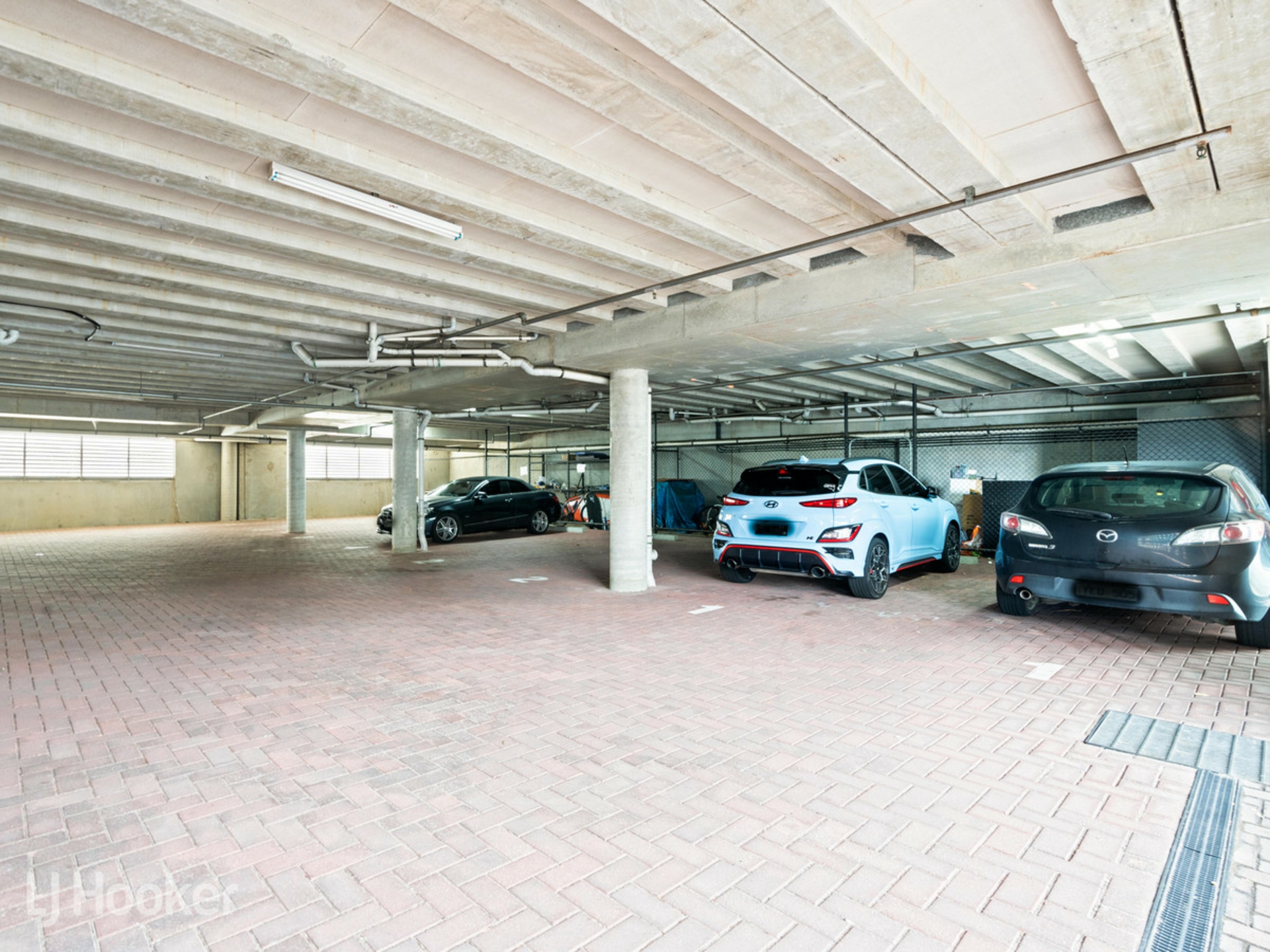 -Two car secure garage with storage cage