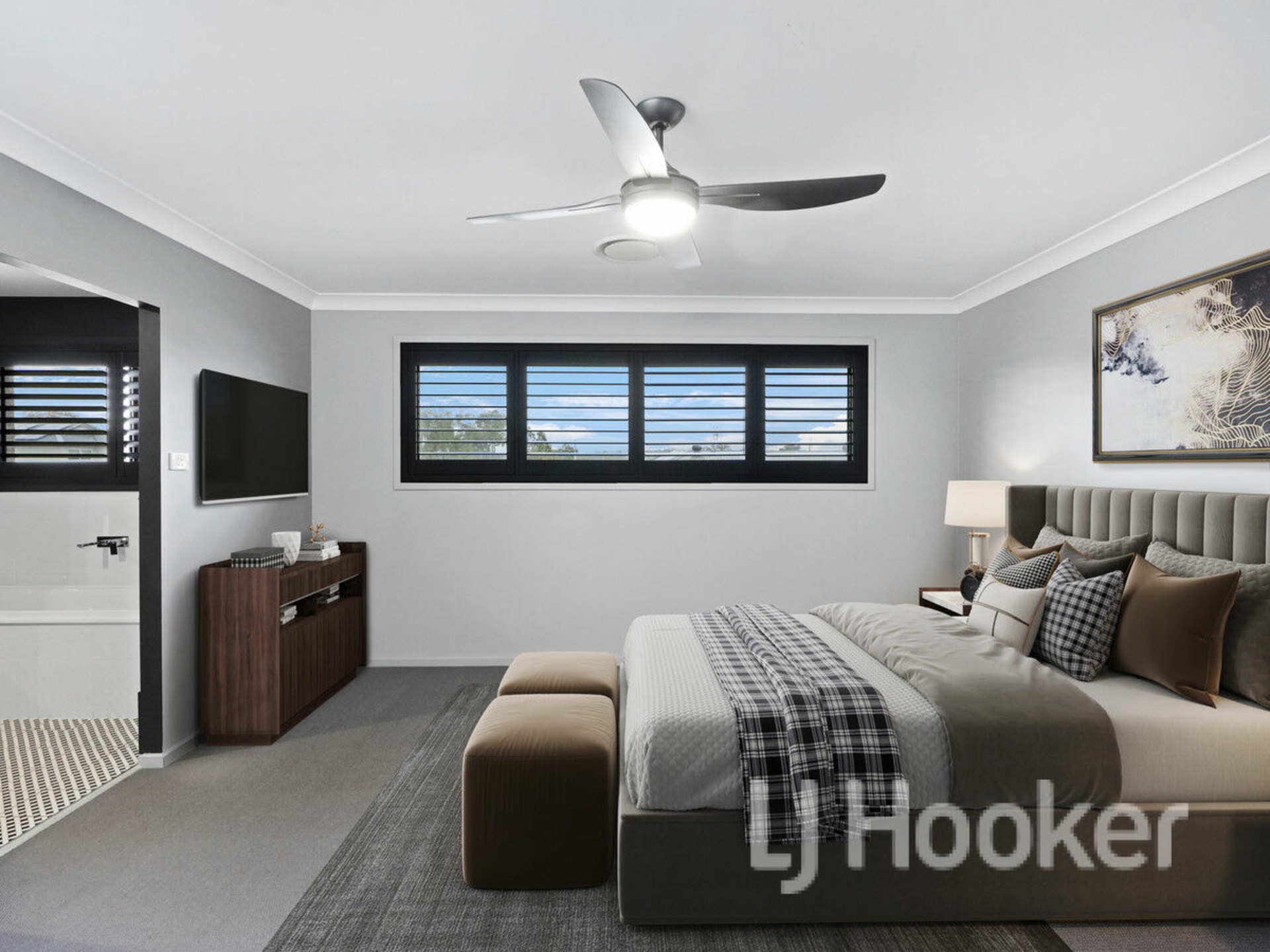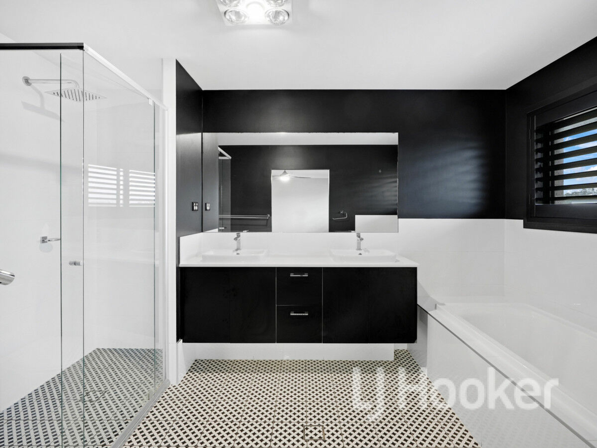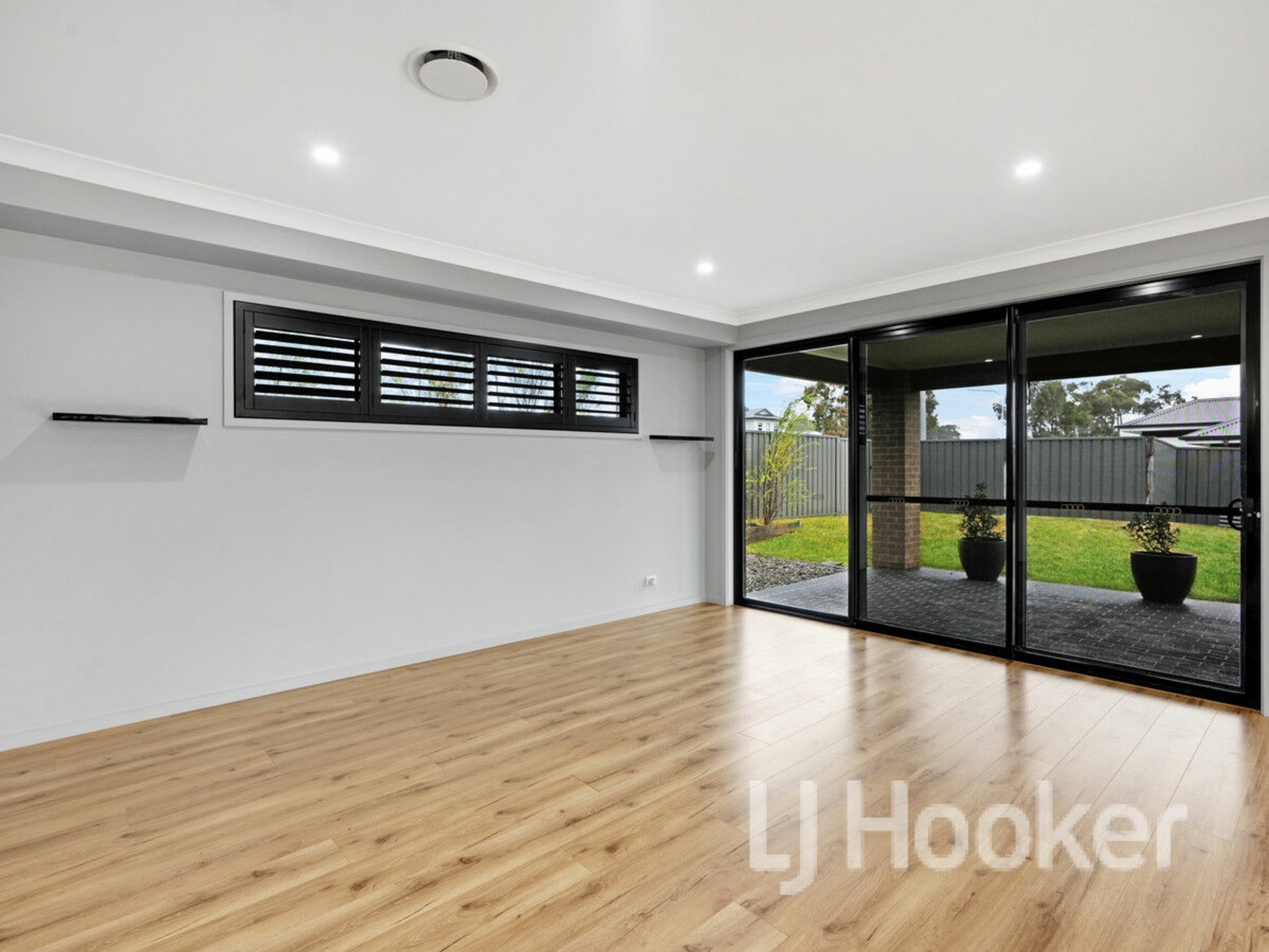Each of the four double bedrooms is thoughtfully appointed with built-in robes, providing practicality. Plantation shutters throughout the home enhance privacy and elegance, while ducted reverse-cycle air-conditioning ensures year-round comfort.