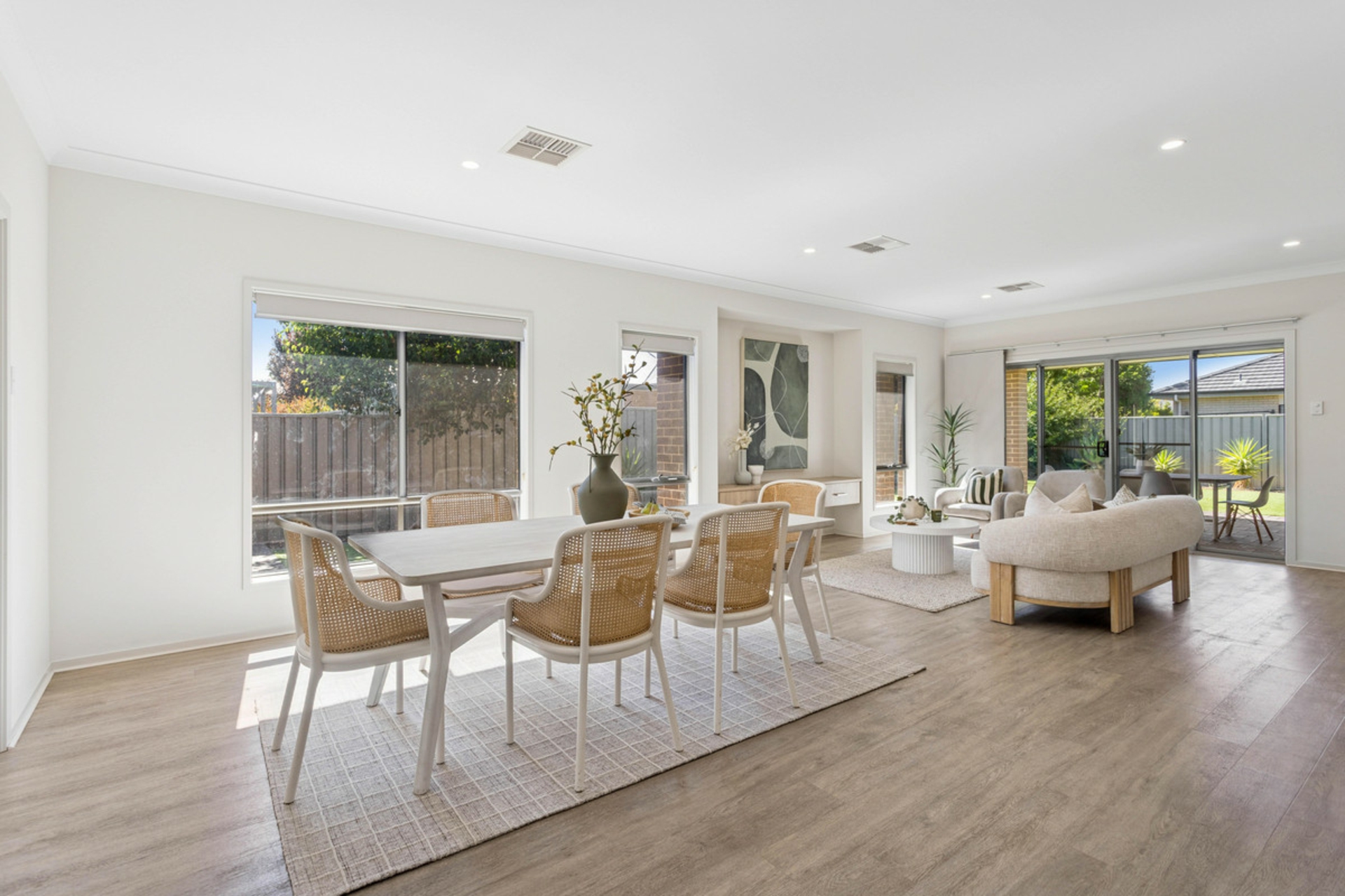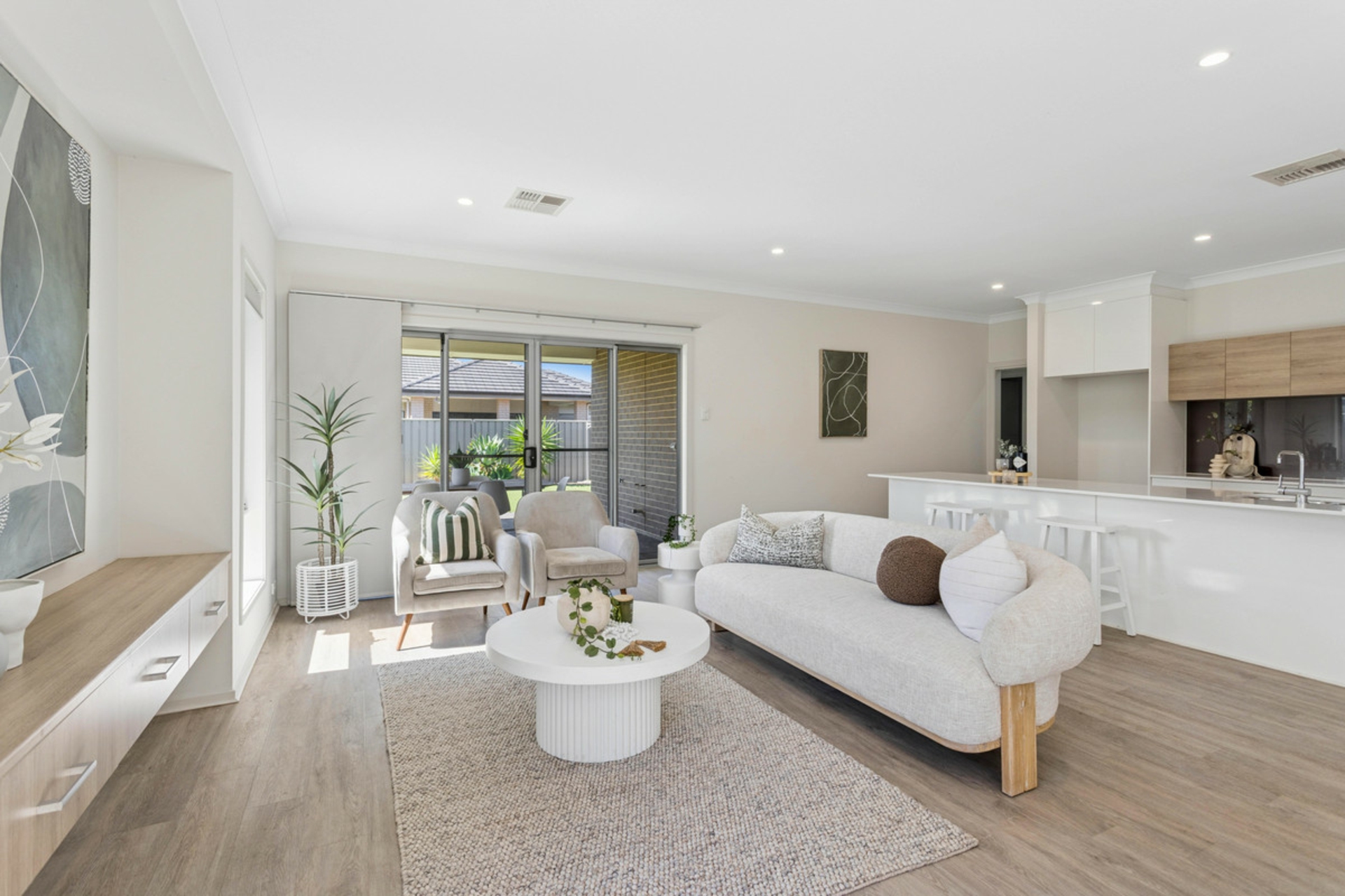 Outside, the generous backyard provides plenty of space for kids and pets while remaining easy to maintain. Synthetic lawn and low-maintenance gardens to both the front and rear allow you to enjoy your weekends, while the alfresco area, seamlessly connected via dual sliding doors from the family room, is ideal for entertaining or relaxed outdoor living.