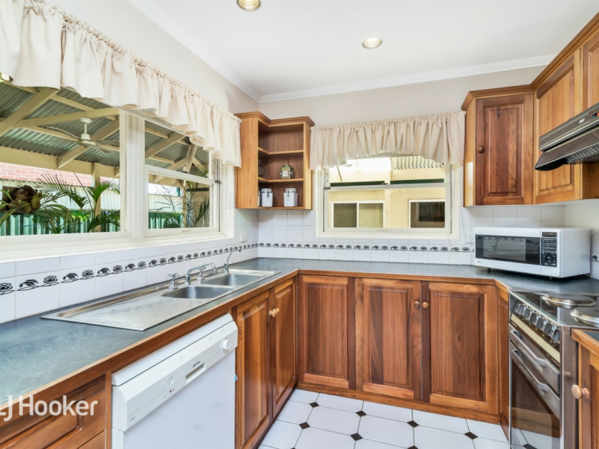 The well appointed kitchen is fitted with dishwasher, pantry, quality timber cupboards and ample bench space and overlooks a light-filled casual dining and family room that spills out through double doors onto a very generous undercover paved alfresco area with pitched pergola roof, ceiling fans and plenty of space for outdoor family enjoyment.