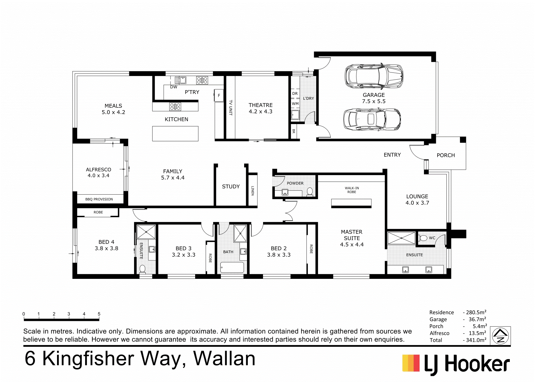 - Four generous bedrooms, including a master suite with space for a walk-in robe and ensuite.