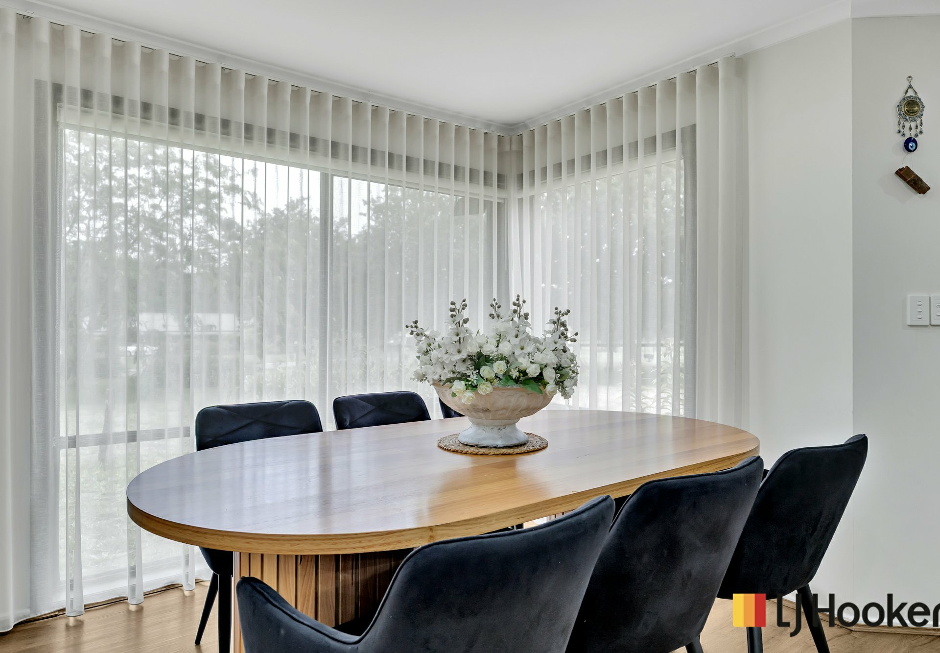 Sheer curtains throughout