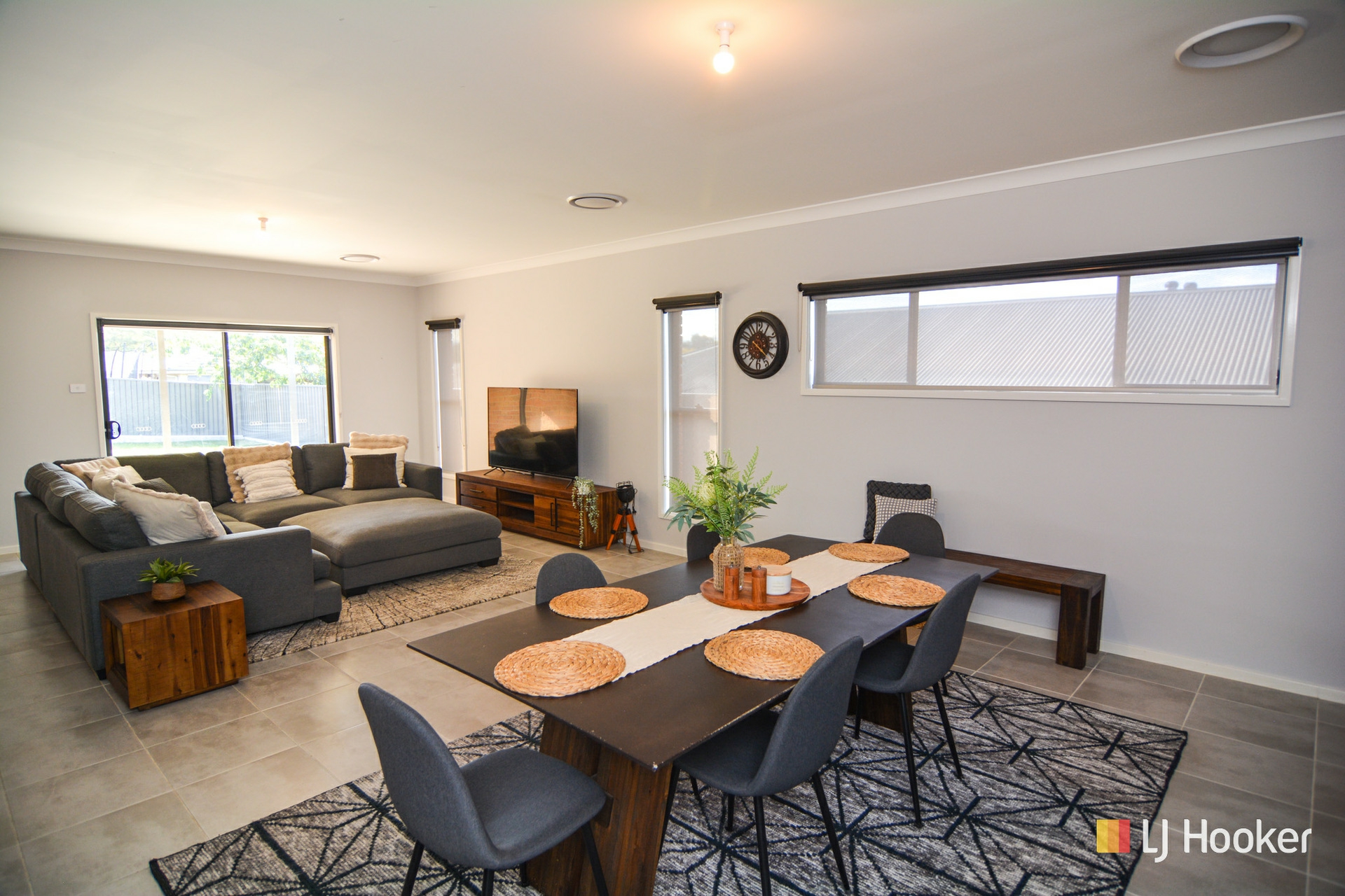 At the heart of the home, a light-filled open-plan living and dining area seamlessly connects to a sleek, modern kitchen featuring quality appliances, ample bench space, and plenty of storage-perfect for busy mornings or entertaining friends and family.