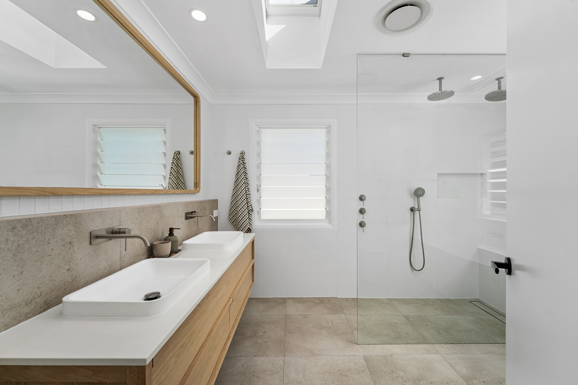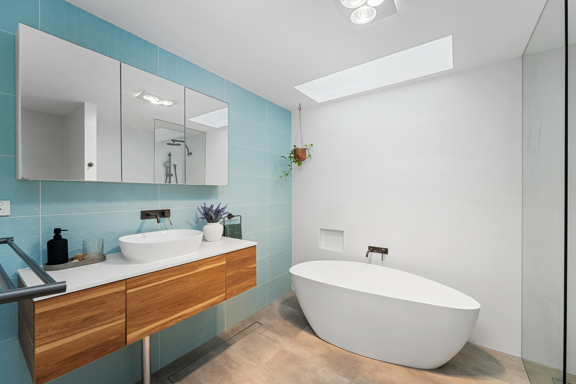 -3 bathrooms including a beautifully renovated main bathroom featuring freestanding egg-shaped bath, floating timber vanity and skylight over the bath