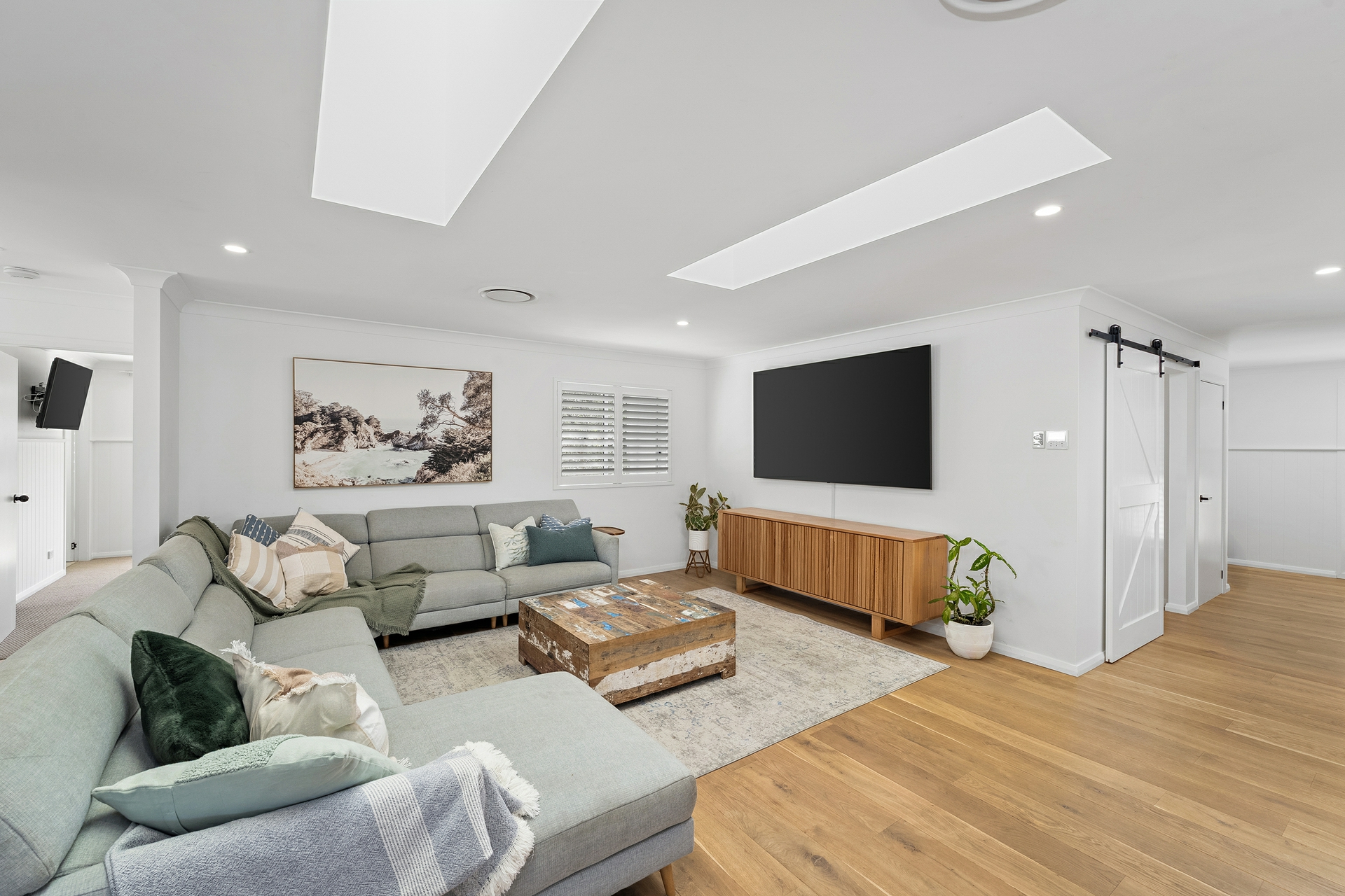 -Engineered oak flooring, Velux skylights, plantation shutters
