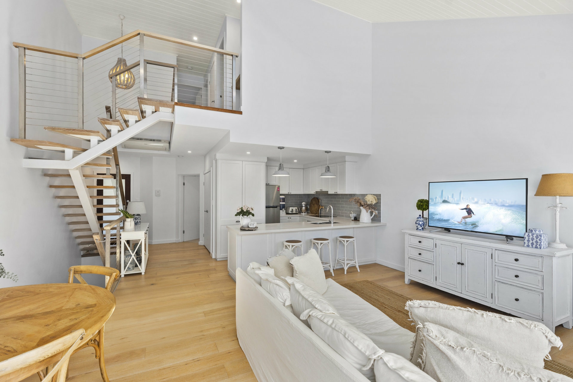 Light-filled open-plan living is enhanced by soaring vaulted ceilings, creating an inviting sense of space ideal for both everyday relaxation and effortless entertaining. Spread across three thoughtfully zoned levels, the home offers three generous bedrooms, two bathrooms, an entertainers' kitchen and a flexible floorplan that balances privacy with connection.