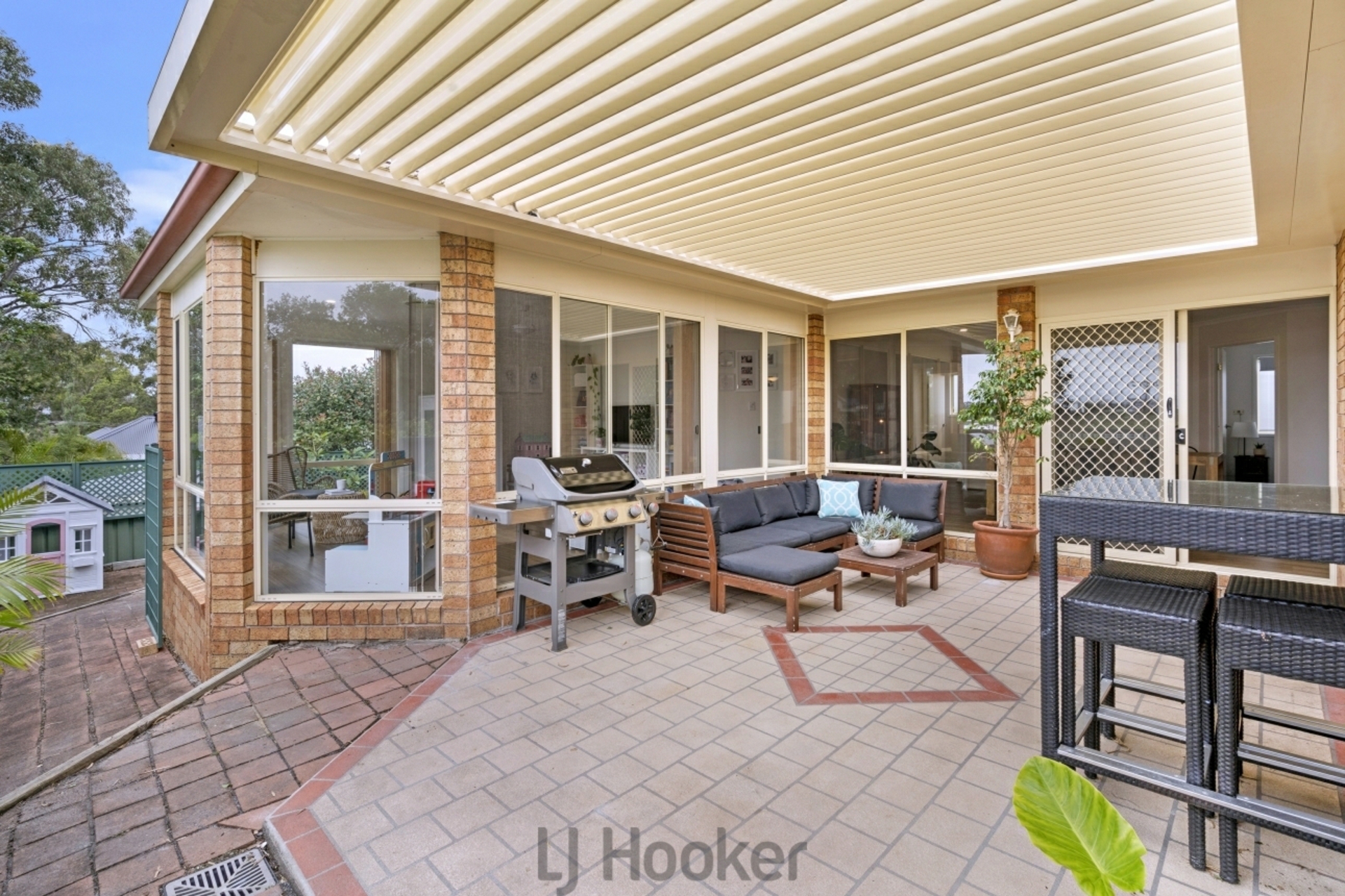 The alfresco area offers functional outdoor living year round with motorised roof louvers to let the sun in and keep the rain out. The fenced, low maintenance yard offers privacy and a practical space for pets and gardening.