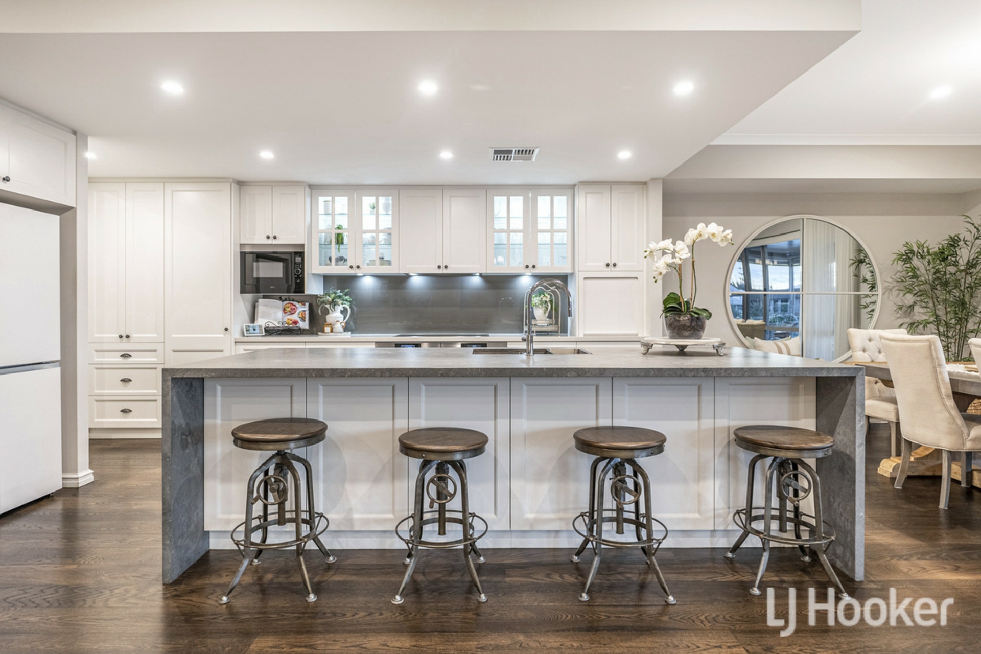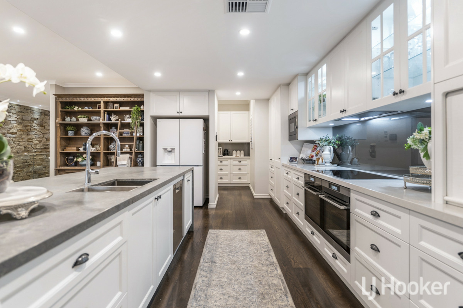 The designer kitchen forms the centrepiece of the home, complete with premium appliances, dual oven, coffee station, concrete Caesar stone benchtops, generous storage & multiple bins � ideal for both everyday living and hosting on a grand scale. The pantry leads from the main kitchen into a private zone, and there is a further huge laundry with bin and plenty BIC on the other wing of the home.