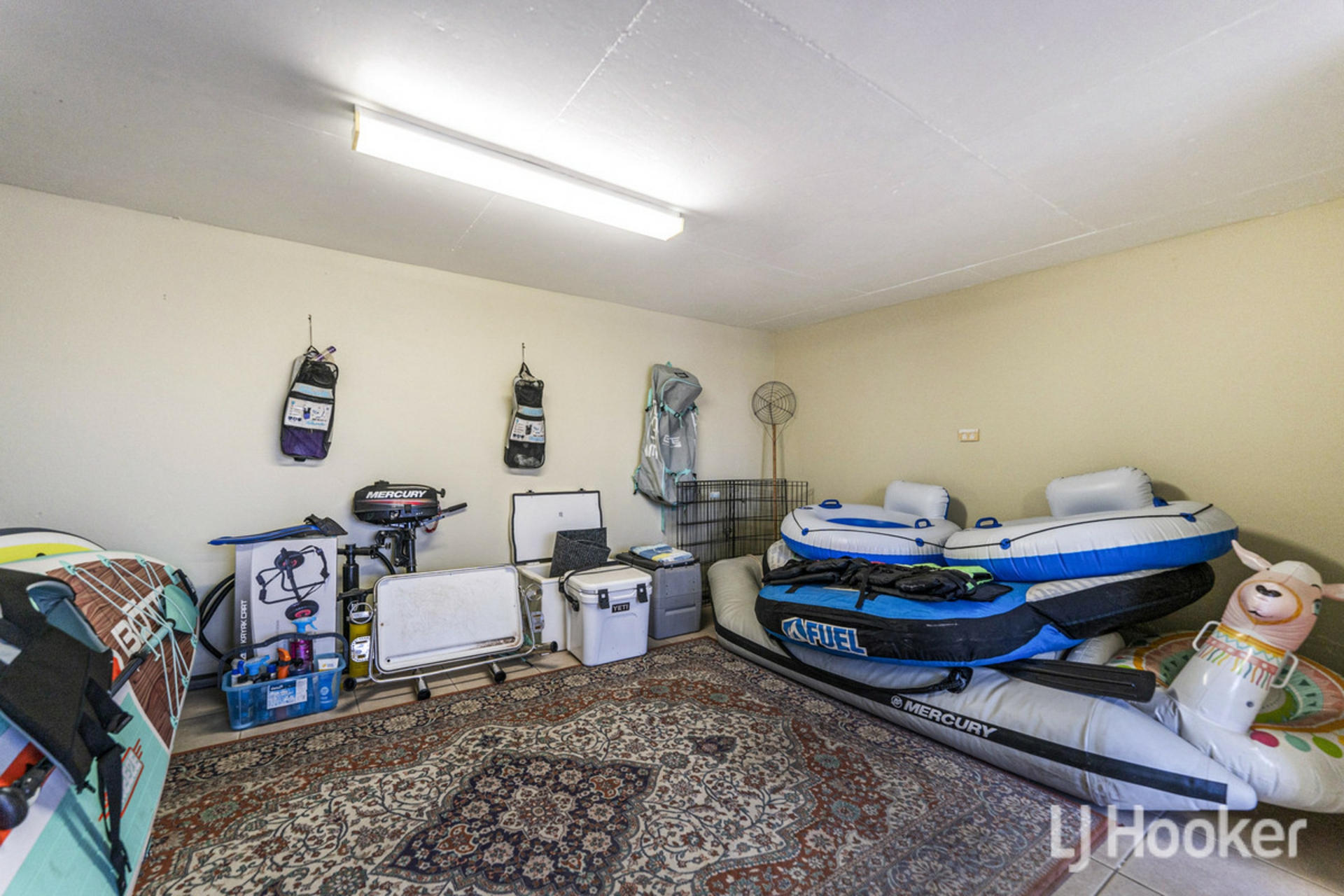 Down the side staircase to the water's edge, you will find the wooden jetty( with ladder) that can accommodate up toa 9m boat, along with the bonus of a multipurpose under croft complete with multiple power points and leaving space for you to create a workshop, craft room or simply store away the kayaks along with all the other toys. There is also an outside shower nearby.