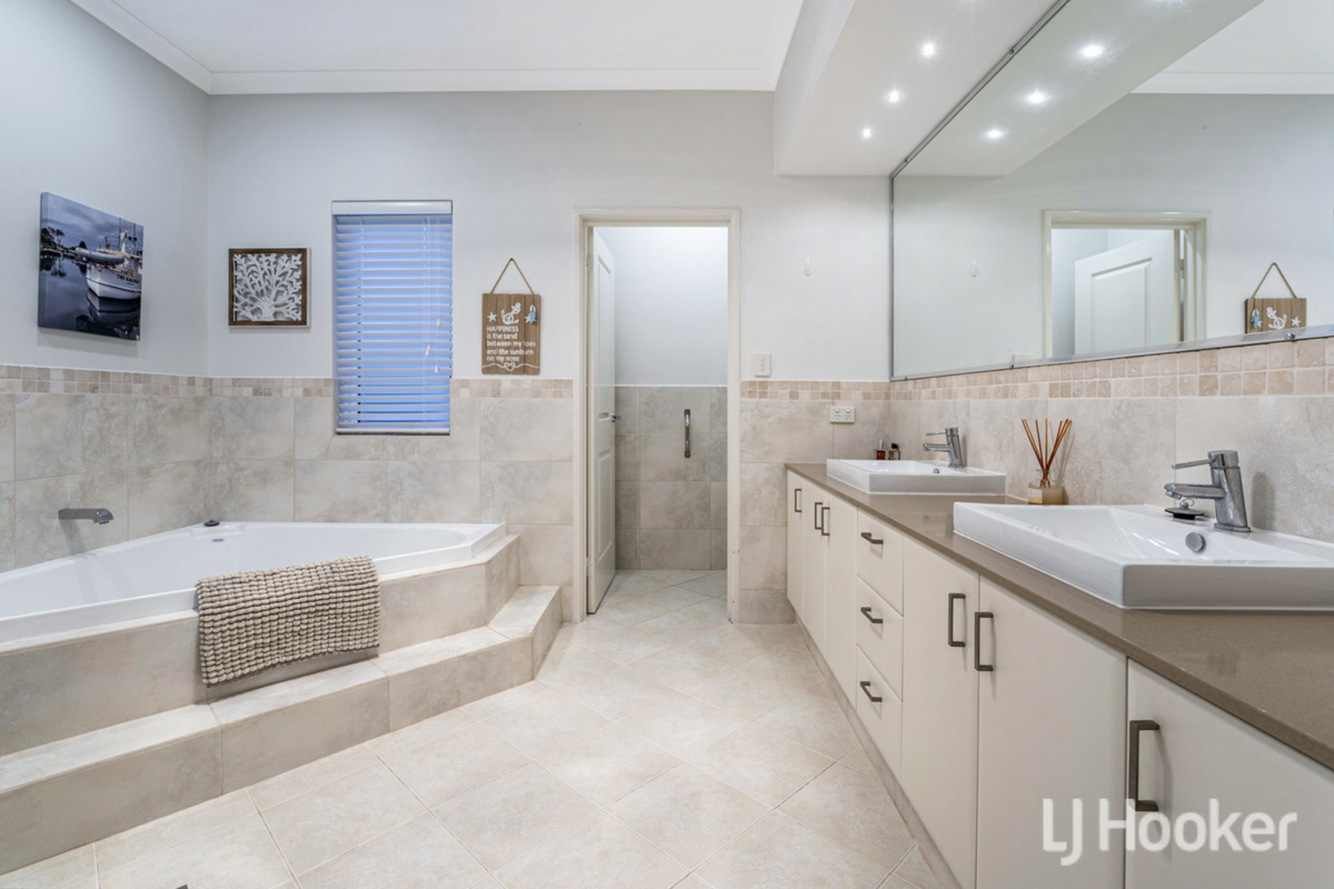 On the opposite side of the home, you will find the privately placed & elevated master suite, a clever design as it creates views out to the water's edge from the comfort of your own bed. Featuring a large walk-in robe and massive ensuite bathroom with screenless shower, corner bath, double vanities, ample cabinetry, and a separate W/C.