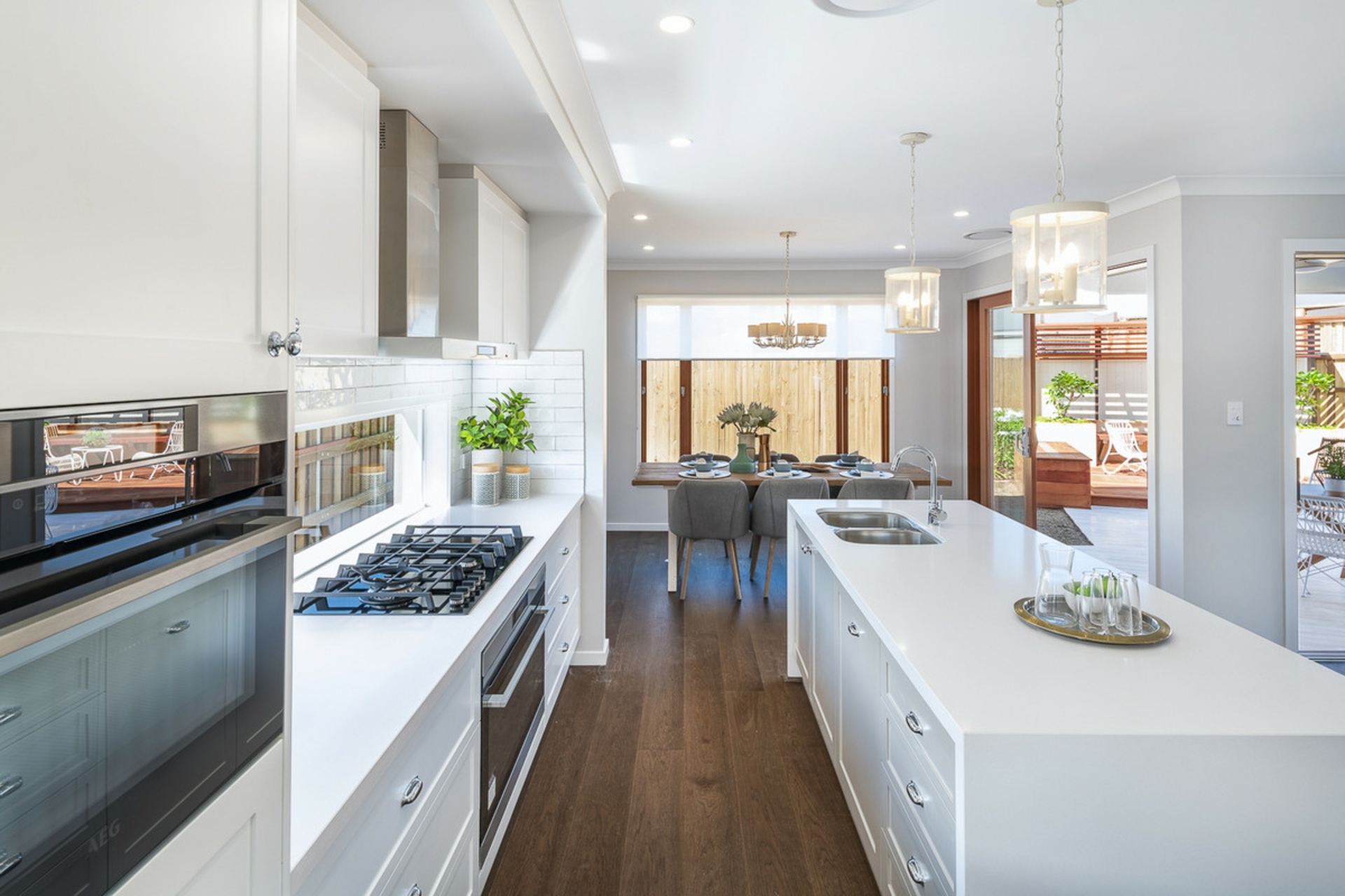 • Galley style kitchen with breakfast bar, 5 burner gas cooker and stone benchtops with premium cabinetry