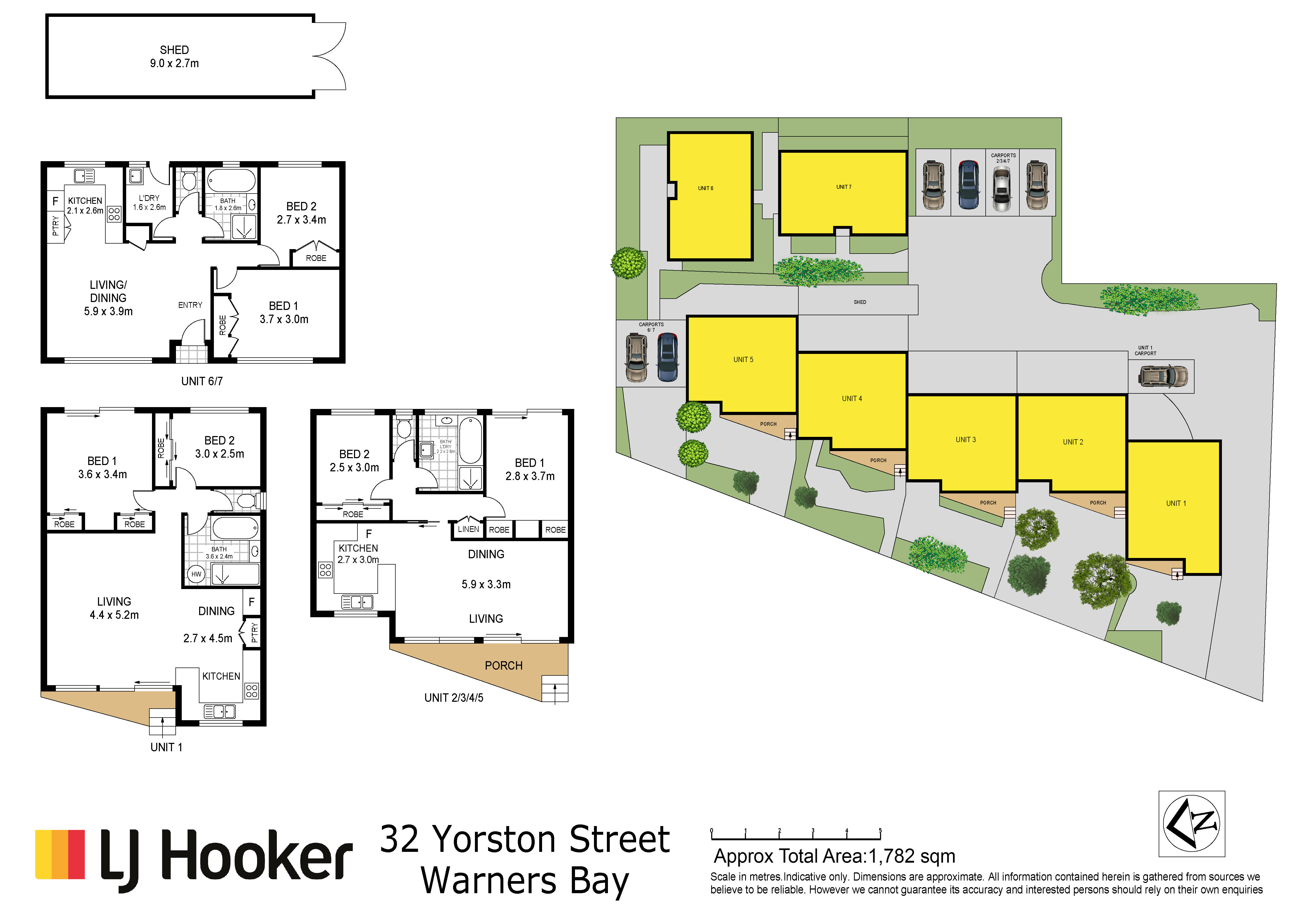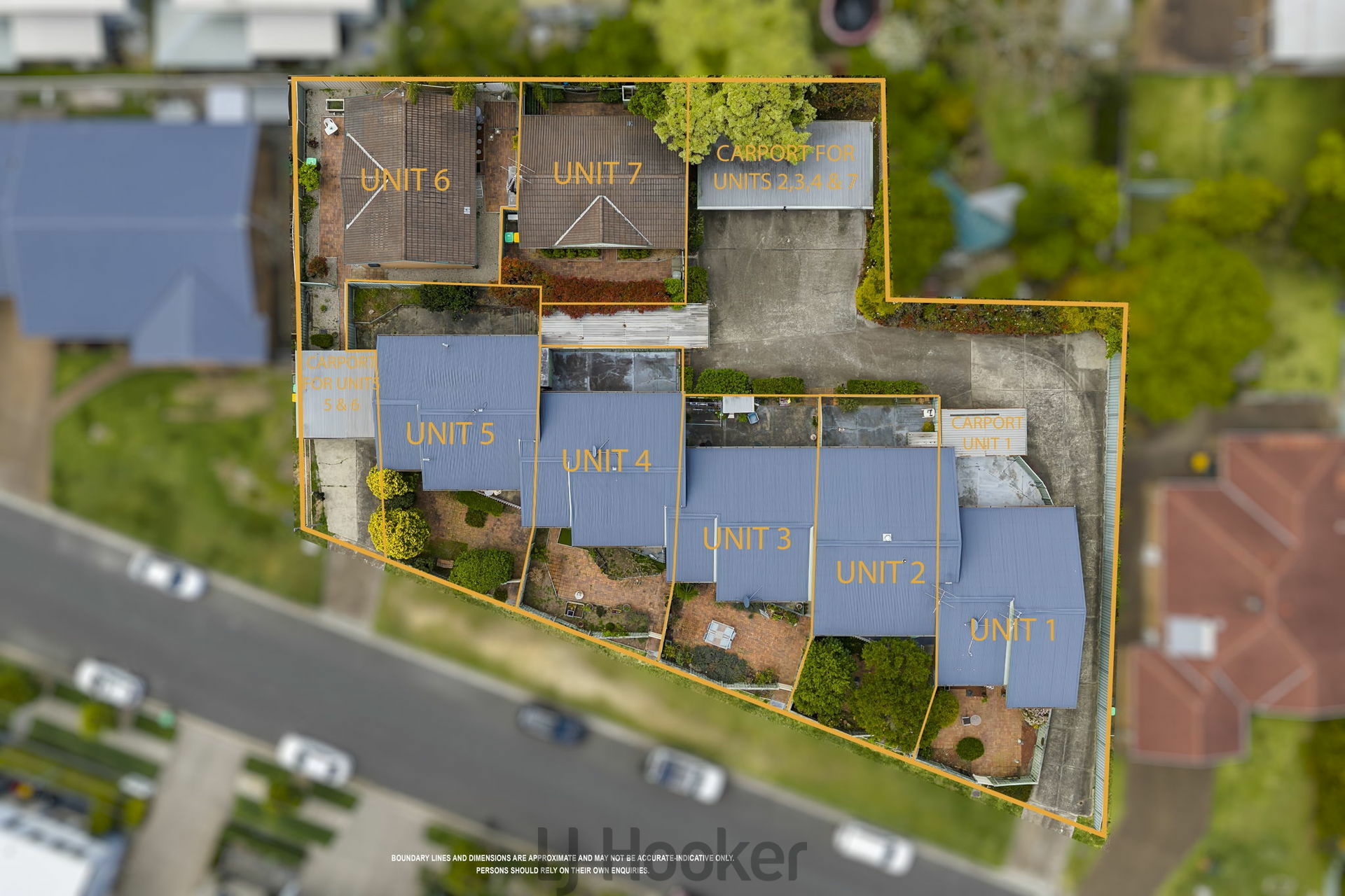 This property comprises a large lot with seven, two bedroom villas and parking for seven vehicles.