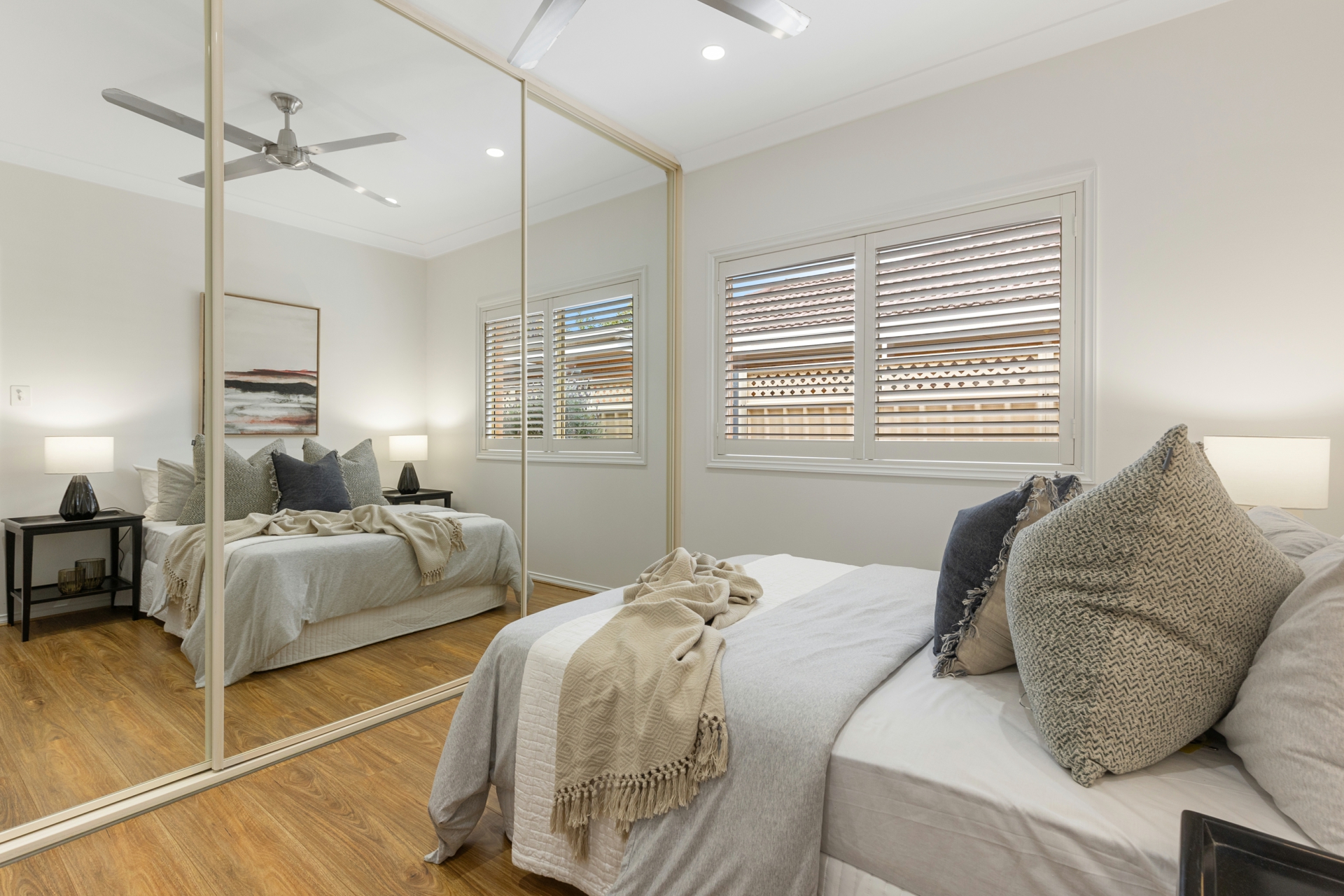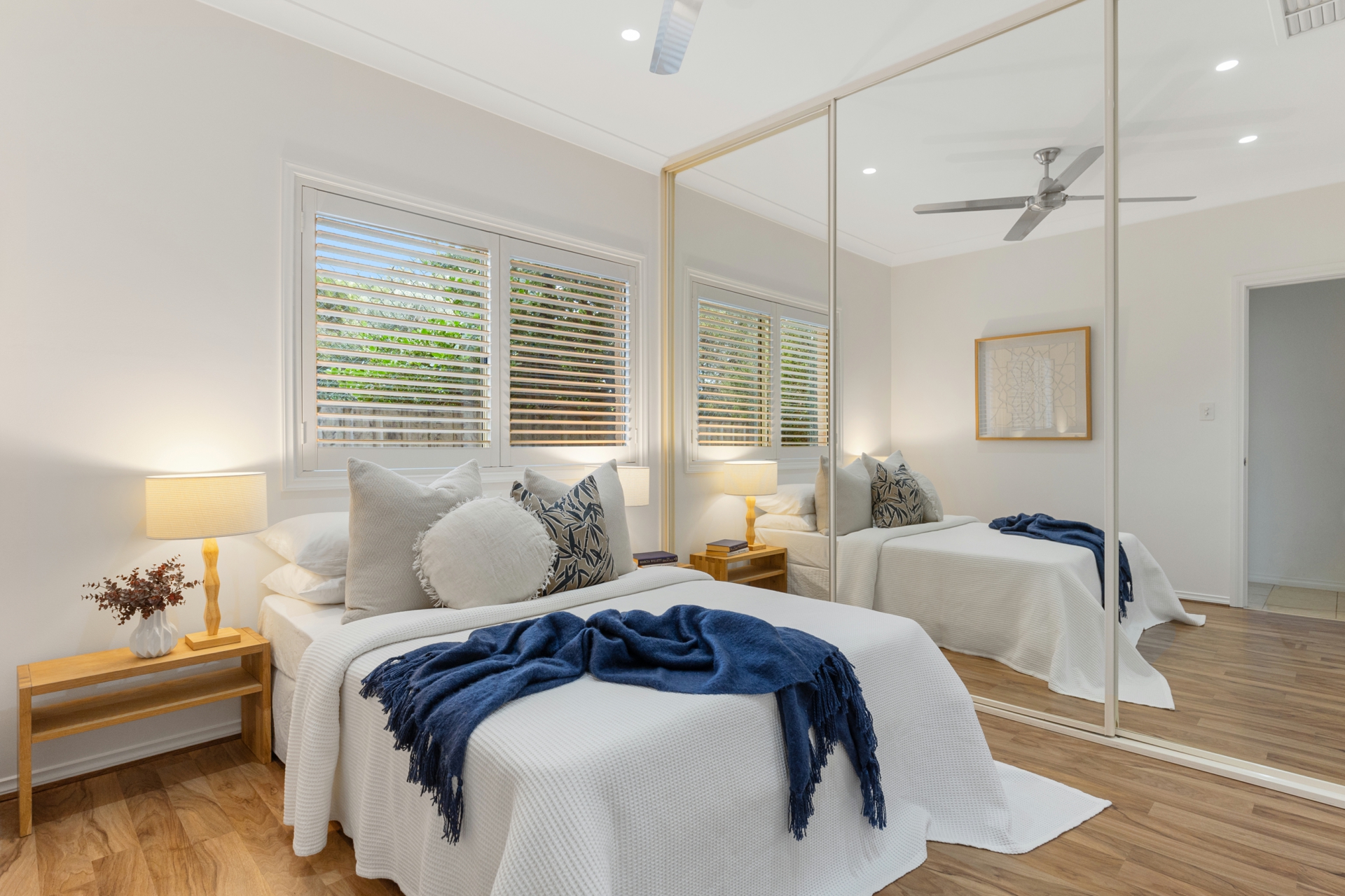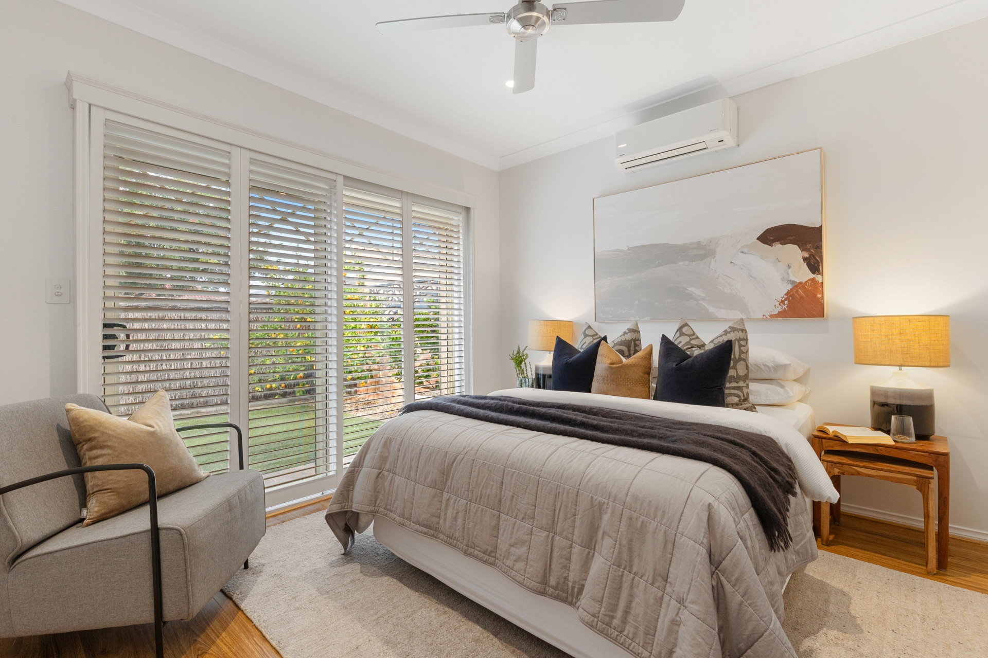 Inside the high 2.7m ceilings and tiled floors sweep you through to the spacious living and dining room complete with ceiling fans, LED lighting and split system air conditioning. The kitchen is well equipped with an electric cooktop, oven, dishwasher and there is a huge amount of storage space with full height cupboards. The main bedroom features a private outlook of the front garden through its large picture windows and plantation shutters. Further features include an automatic security shutter, ceiling fan, split system air conditioner, walk in robe and ensuite making this your very own sanctuary. Bedrooms 2 and 3 both offer floating timber floors, ceiling fans and built robes. There is a dedicated study which features a built in cupboard and a desk which could be easily removed if you wanted to convert it back into a 4th bedroom. The main bathroom is complete with a full size bath and second toilet. Ducted evaporative air conditioning throughout will keep you cool efficiently.