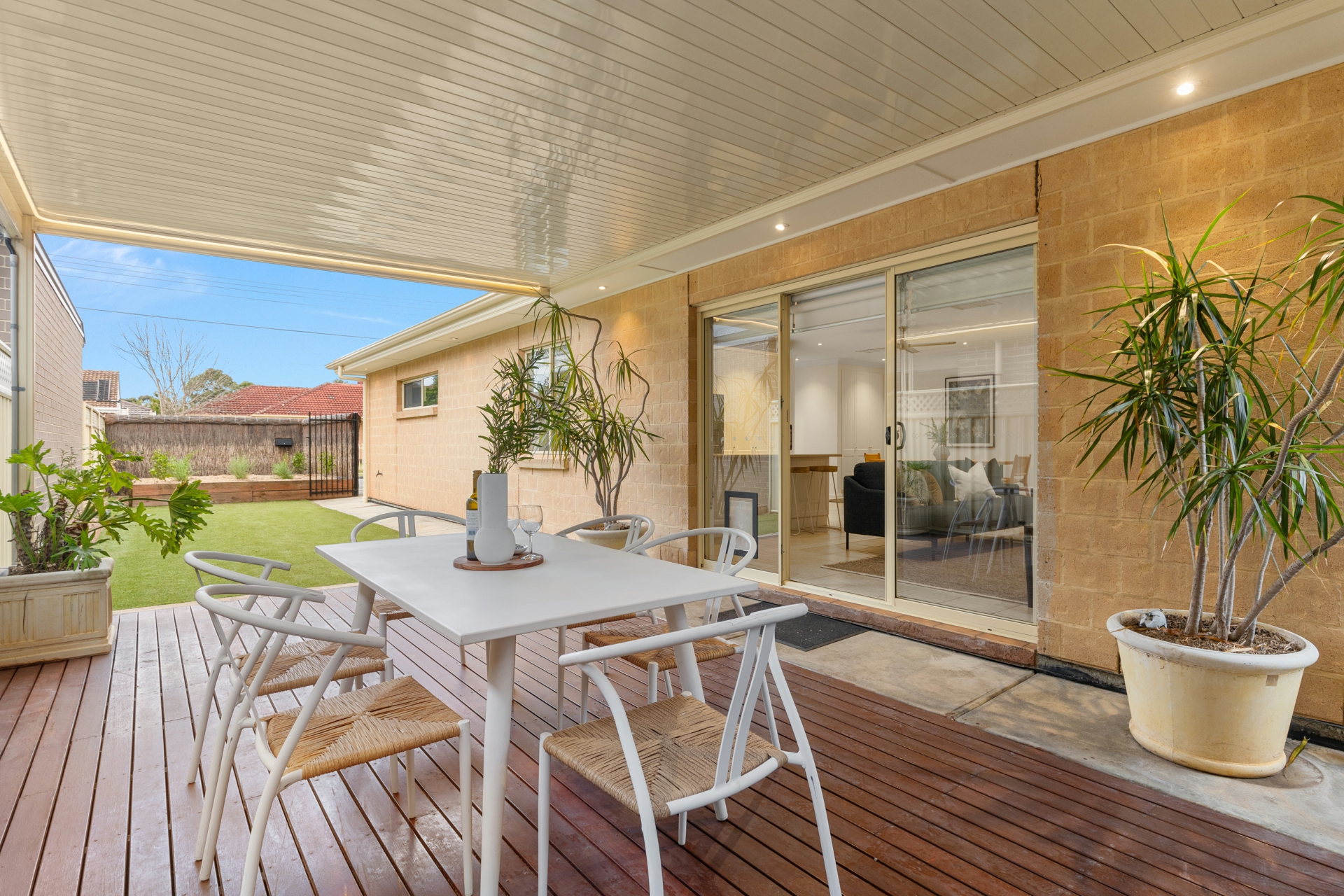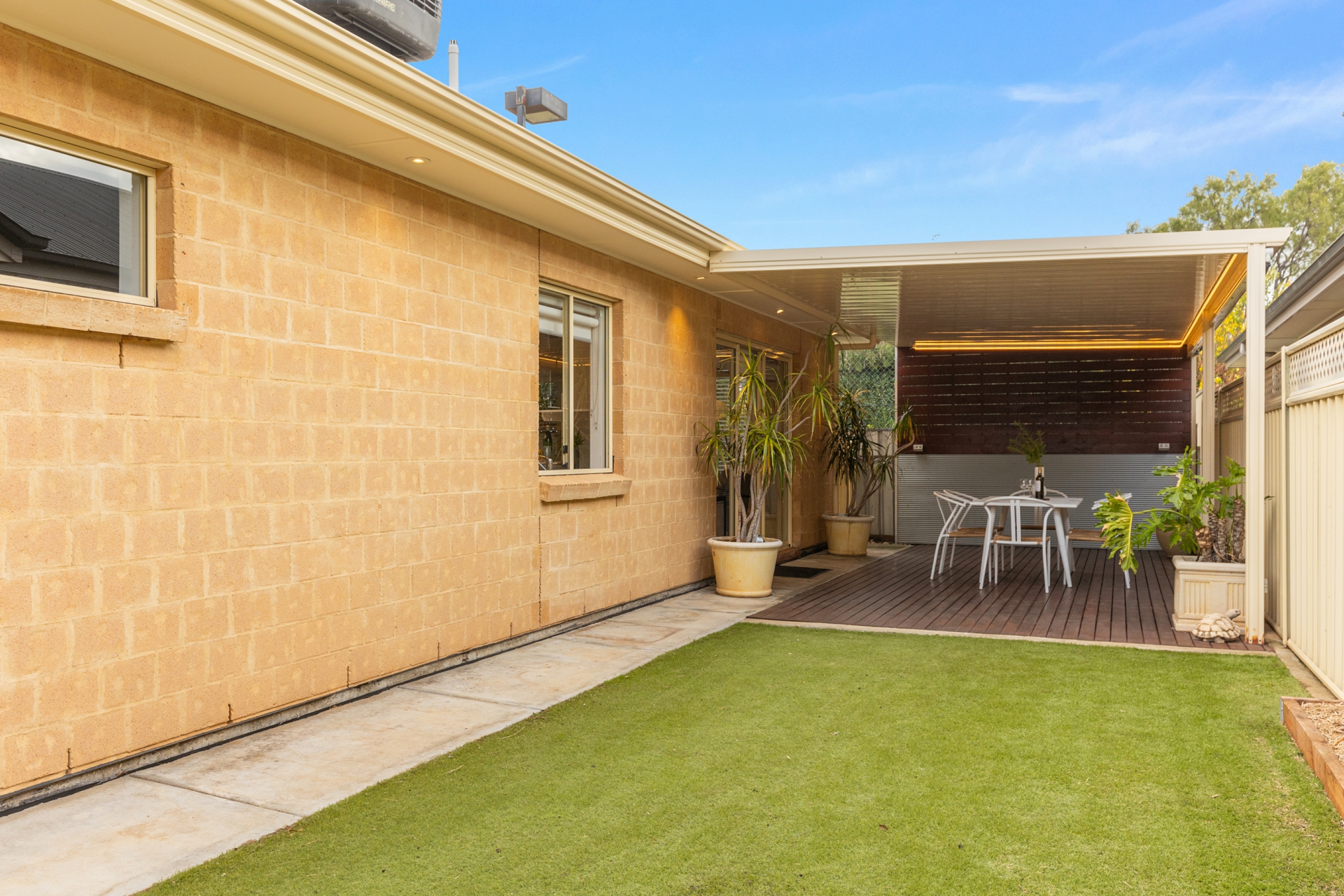 Outside is an entertainers paradise with a colorbond verandah spanning over a lovely timber deck perfect for alfresco dining all year round. The gardens are low maintenance with artificial grass and raised garden beds allow you to create your own veggie gardens for those green thumbs that still need their space.