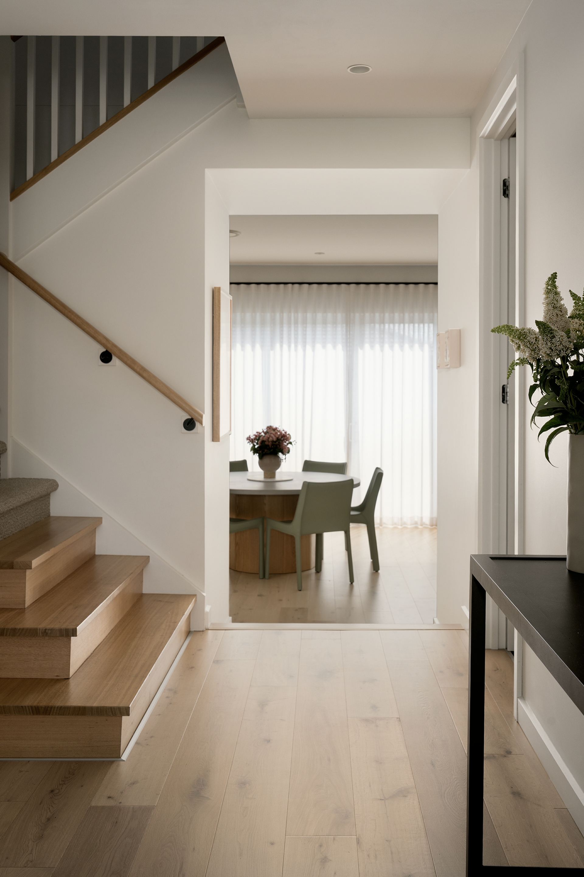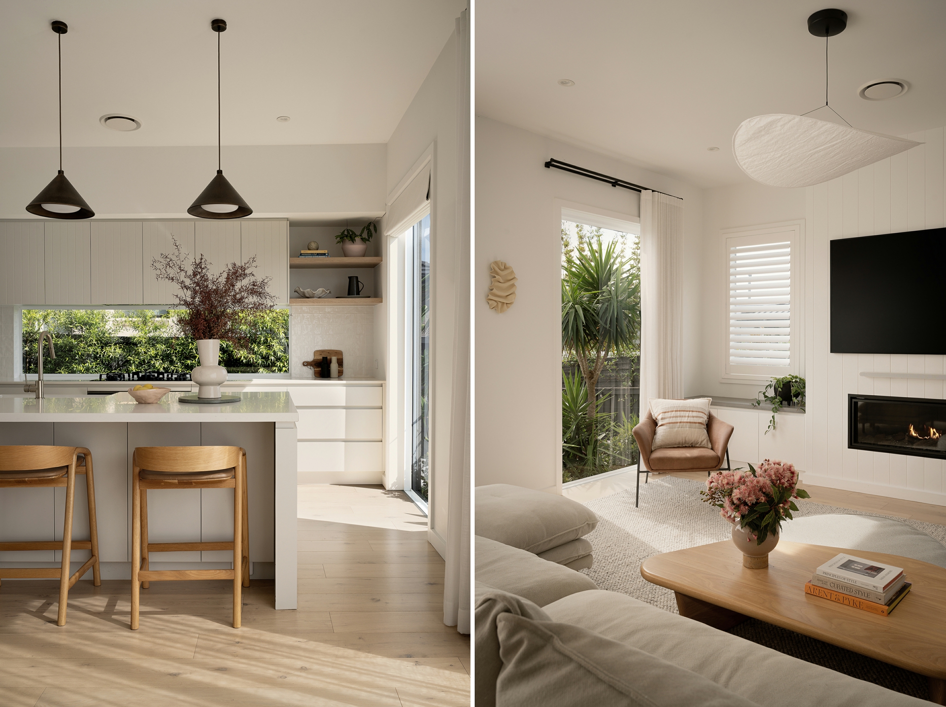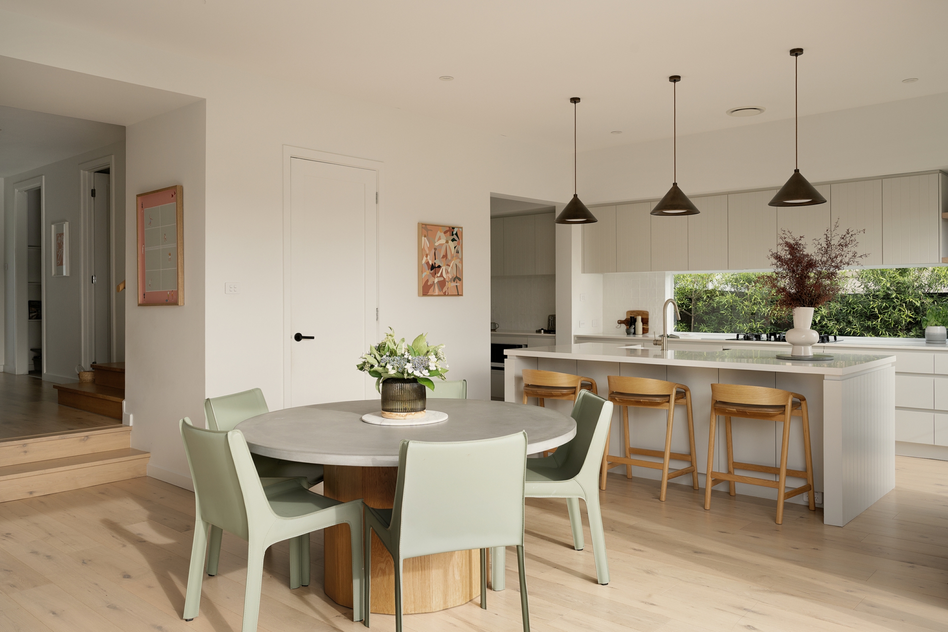 • Light-filled open-plan living and dining zone with a warm, coastal aesthetic and large sliding doors opening directly to the outdoor entertaining area