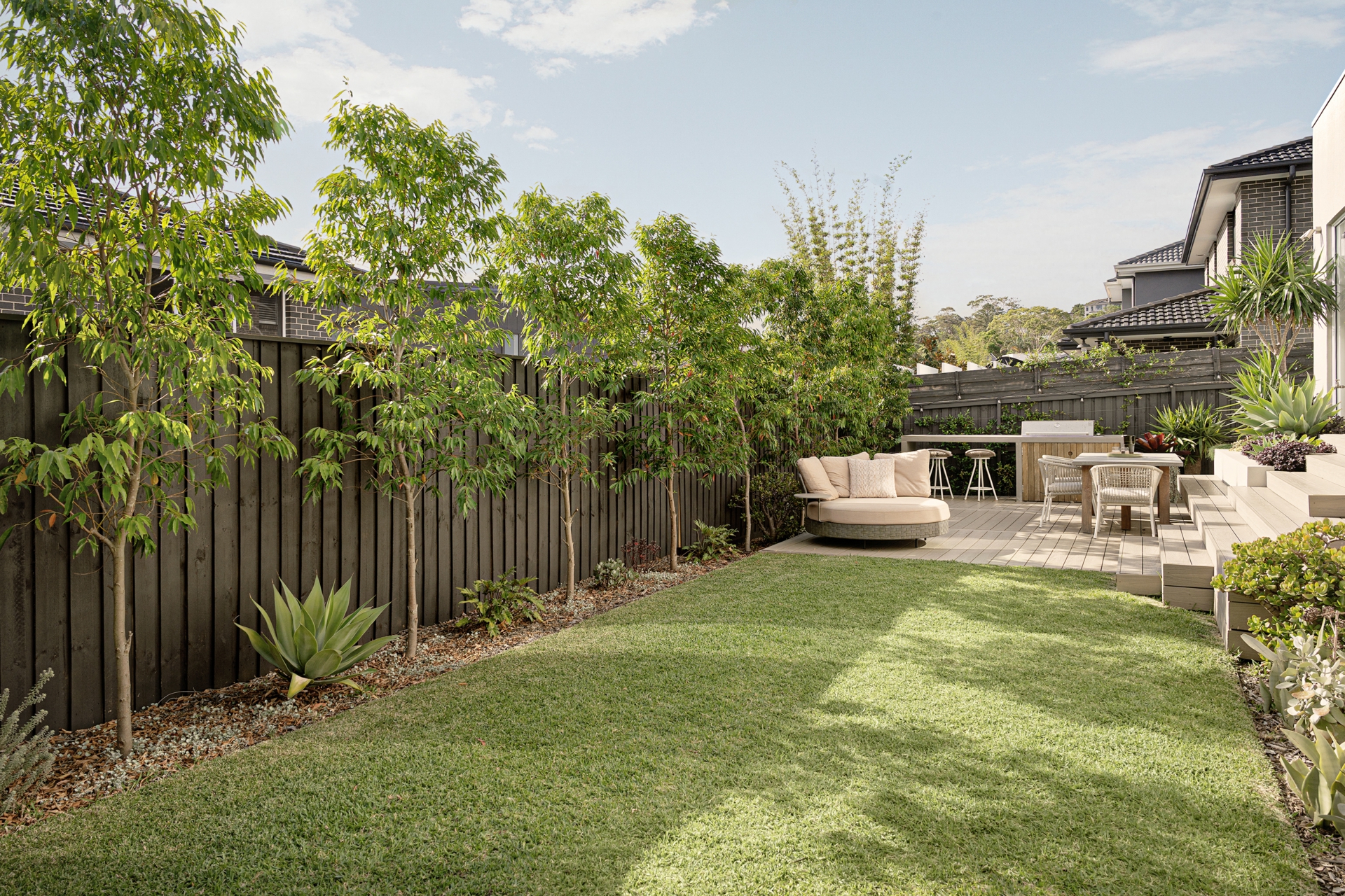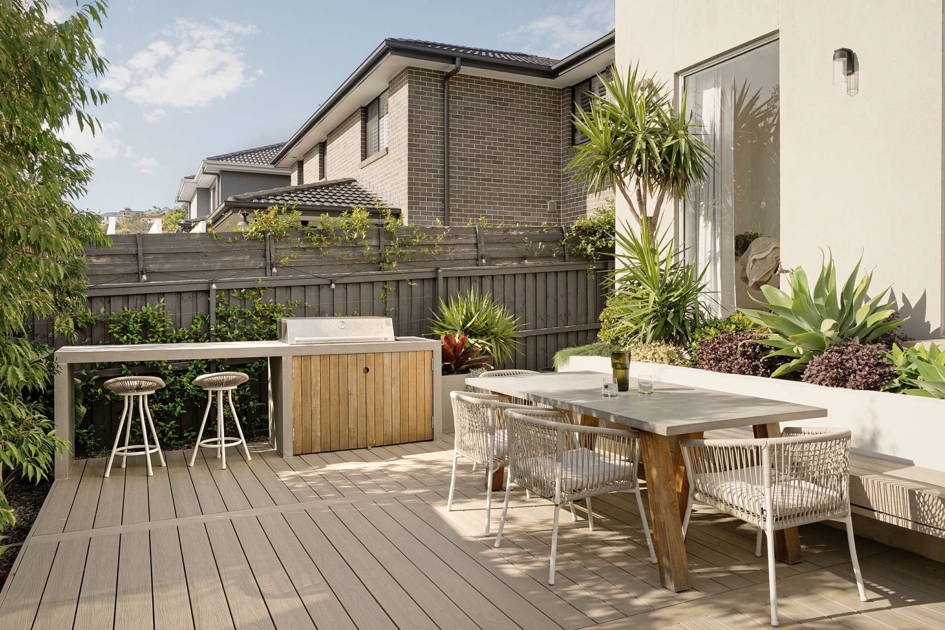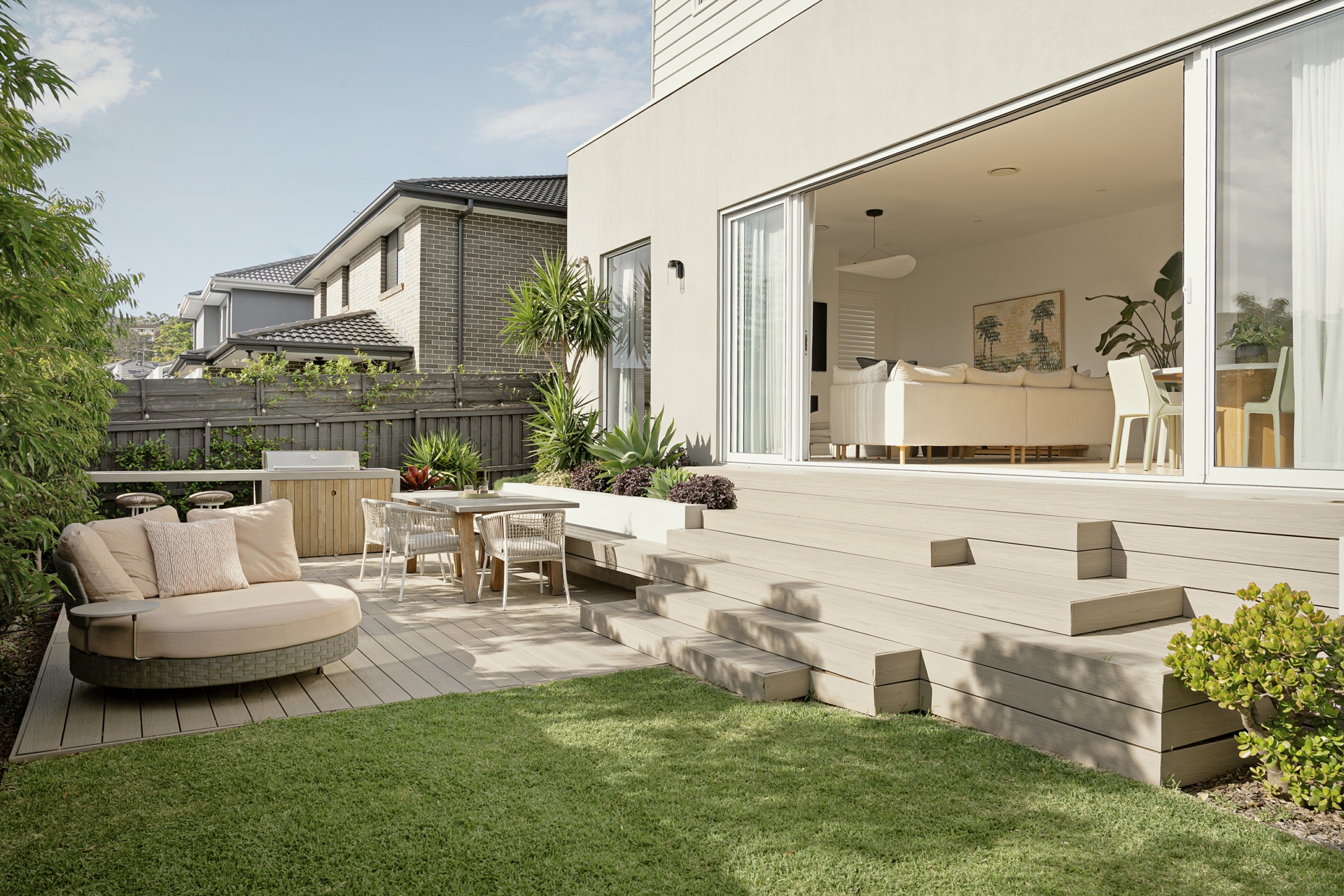 • Purpose-built outdoor entertaining space with built-in BBQ and preparation bench, creating a true extension of the indoor living areas