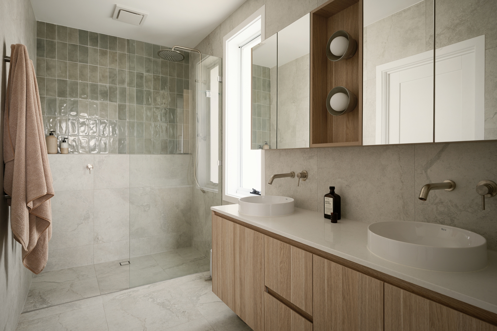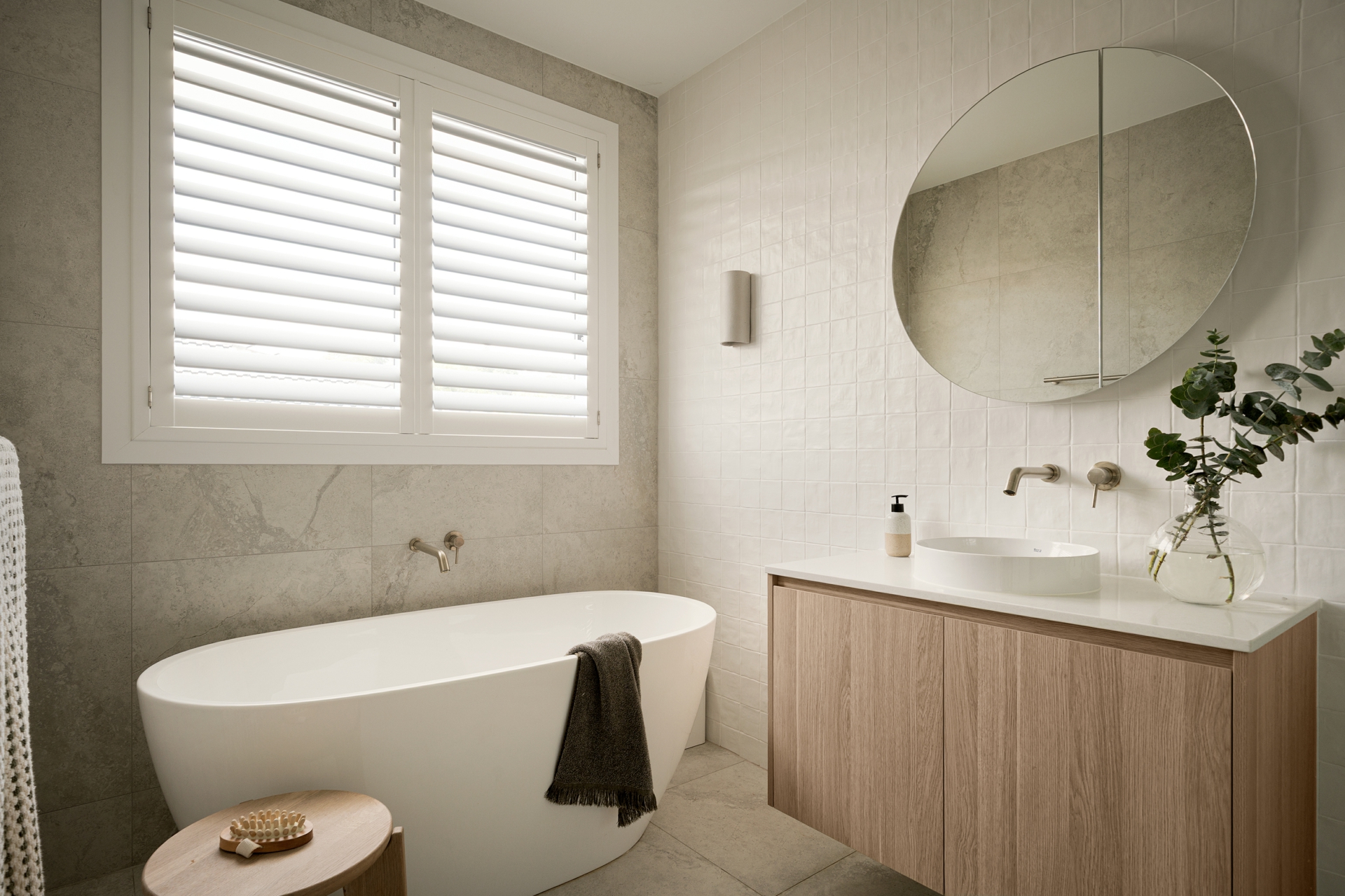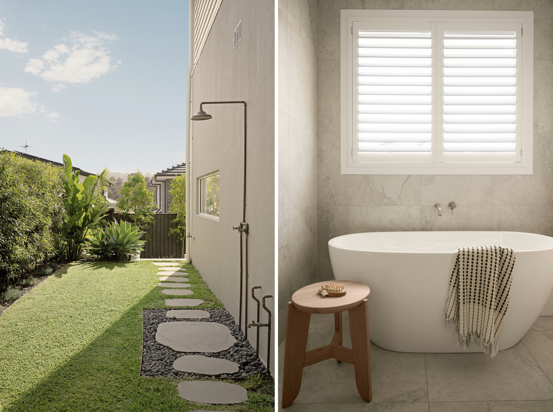 • Elegant bathrooms finished with quality tiling, custom joinery and a freestanding bath, creating a calm, spa-like feel