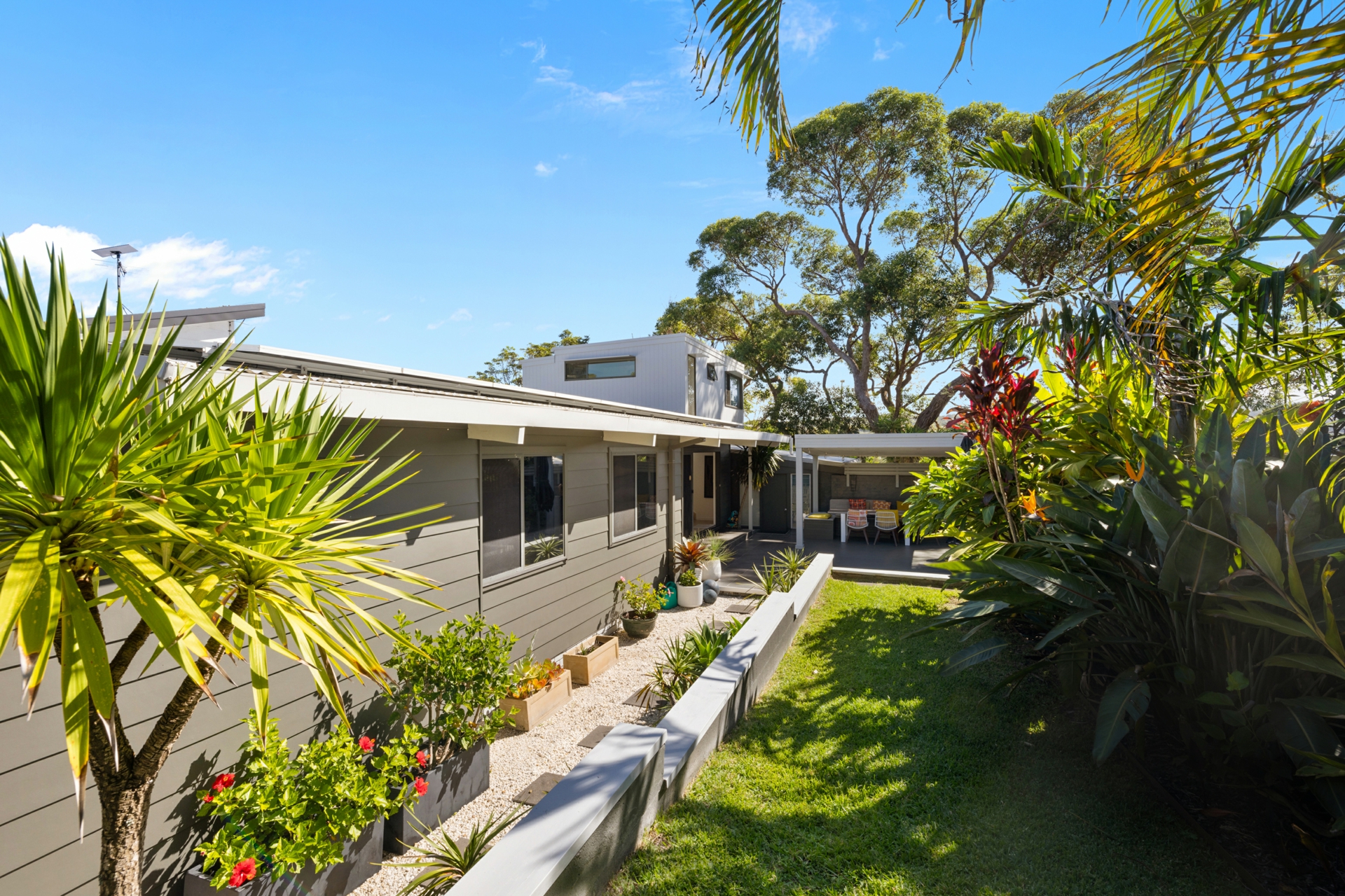 Positioned on a sun drenched corner block with a prized north facing aspect, this beautifully enhanced residence delivers a seamless blend of modern comfort and relaxed coastal style. Designed to maximise natural light and privacy, the home showcases an airy open plan layout with soaring raked ceilings and thoughtfully placed skylights, creating a warm and inviting atmosphere throughout.