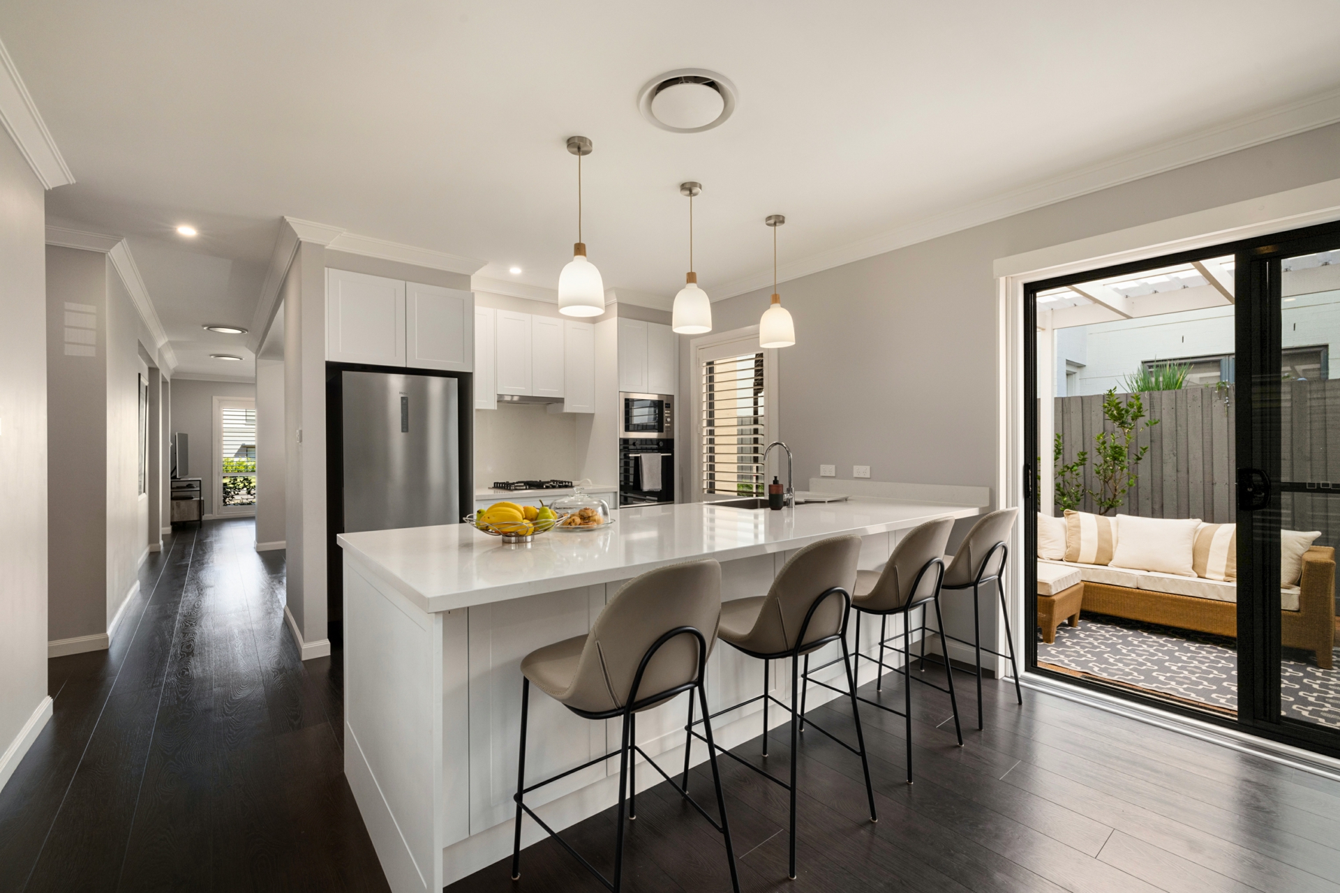 Positioned within the tightly held Shearwater Estate, this elevated residence presents a sophisticated expression of modern coastal living, defined by timeless design and beautifully curated interiors. Impeccably finished throughout, the home reveals a considered layout with premium kitchen and bathrooms, delivering a seamless balance of functionality and understated luxury. A rare offering of low-maintenance ease and refined living within a quiet and private enclave.