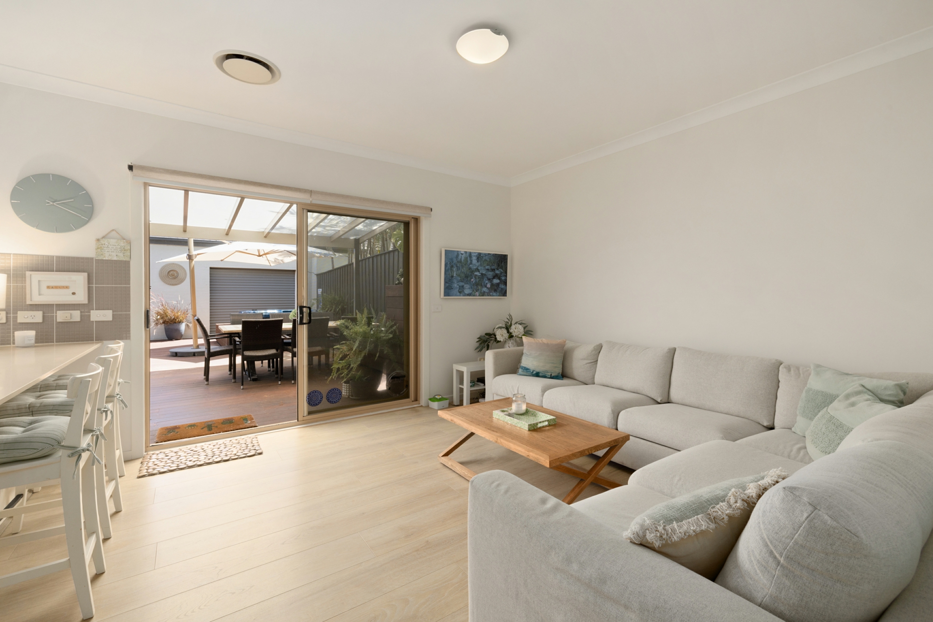 Bathed in natural light and framed by tranquil leafy surrounds, this impeccably presented Torrens-title townhouse delivers a rare sense of space, privacy and relaxed coastal living. Designed for effortless enjoyment, the home reveals generous interiors flowing to an expansive, fully decked rear yard complete with a built-in spa and covered entertaining zone, an inviting setting for both lively gatherings and everyday unwinding.