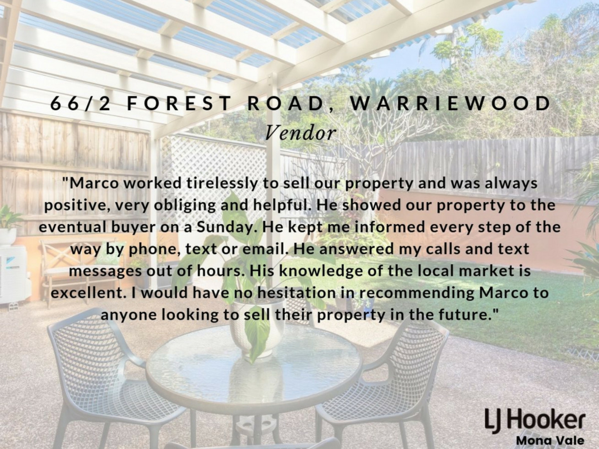 All information contained herewith, including but not limited to the general property description, price and the address, is provided to LJ Hooker Mona Vale by third parties. We have obtained this information from sources we believe to be reliable; however, we cannot guarantee its accuracy. The information contained herewith should not be relied upon and you should make your own enquiries and seek advice in respect of this property or any property on this website.