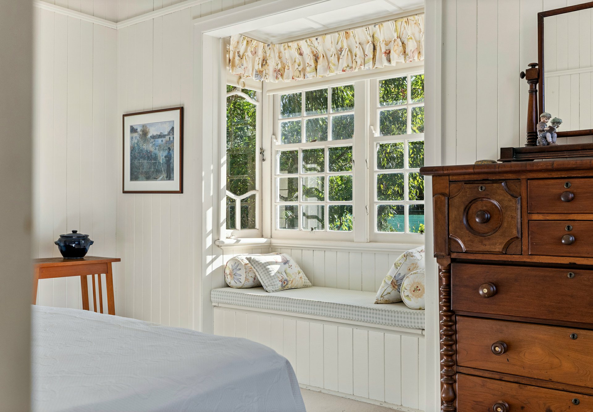 • Pull back your main Bedroom curtains each morning, make a coffee and sit for a while at your bay window seat, look out on the green and garden, such a lovely sundrenched room early morning;