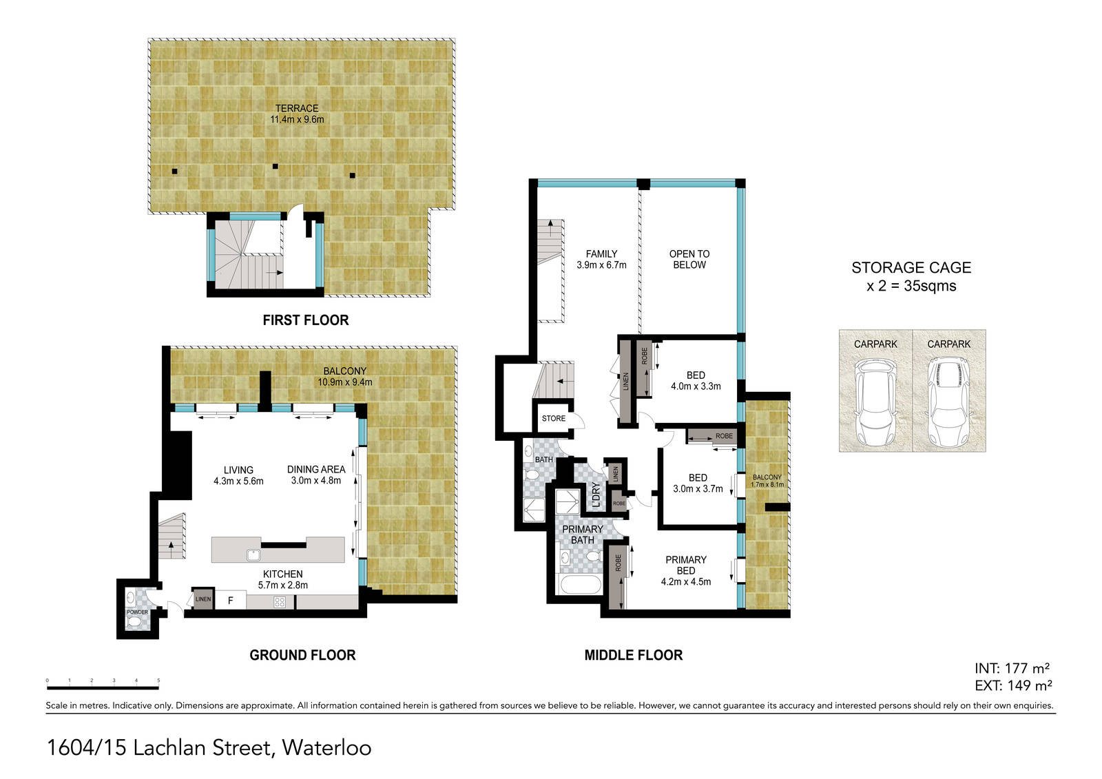 Secure Parking & Storage: Two side-by-side car spaces in a secure garage, plus two dedicated storage cages for convenience.