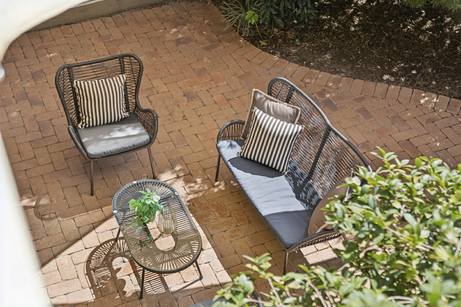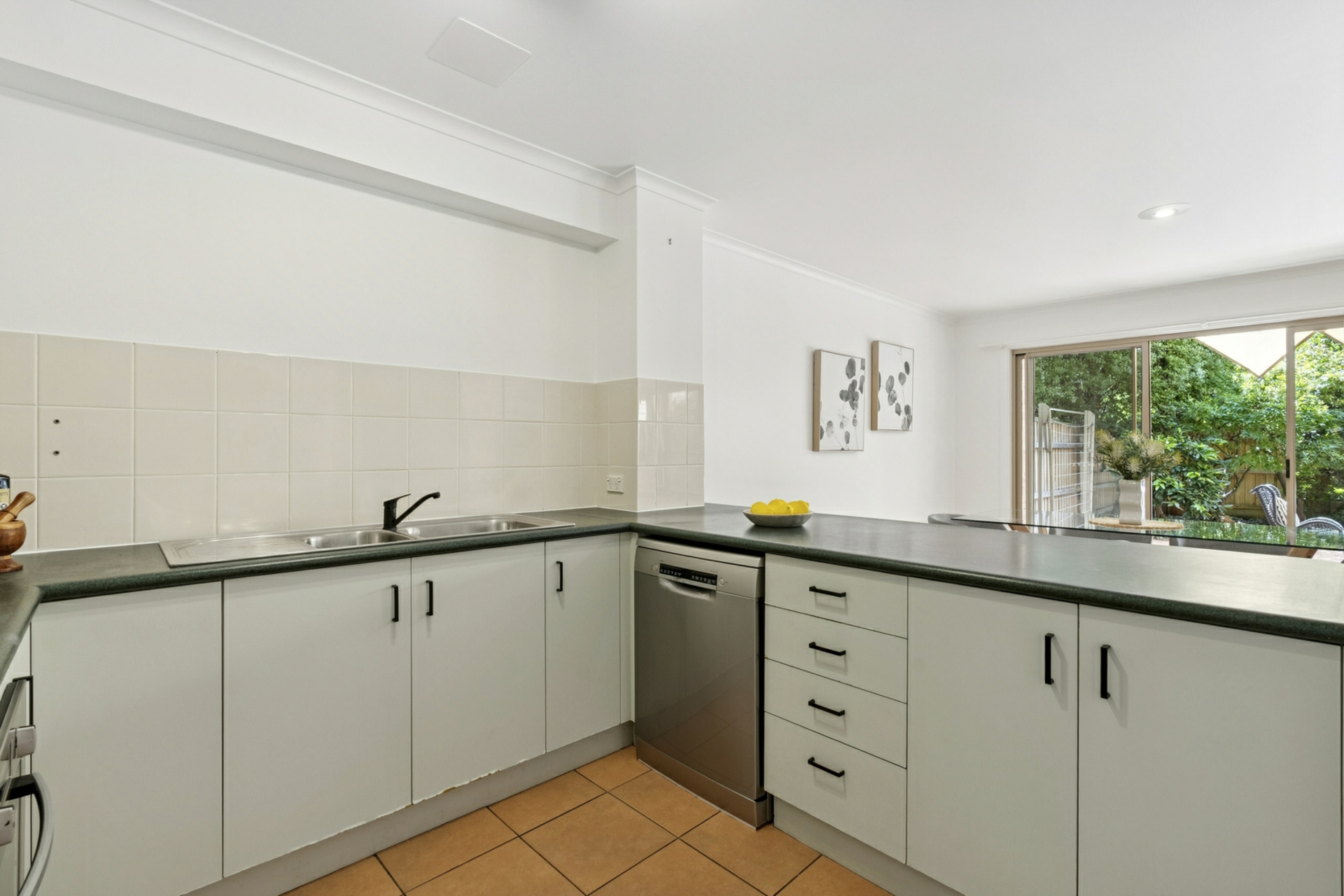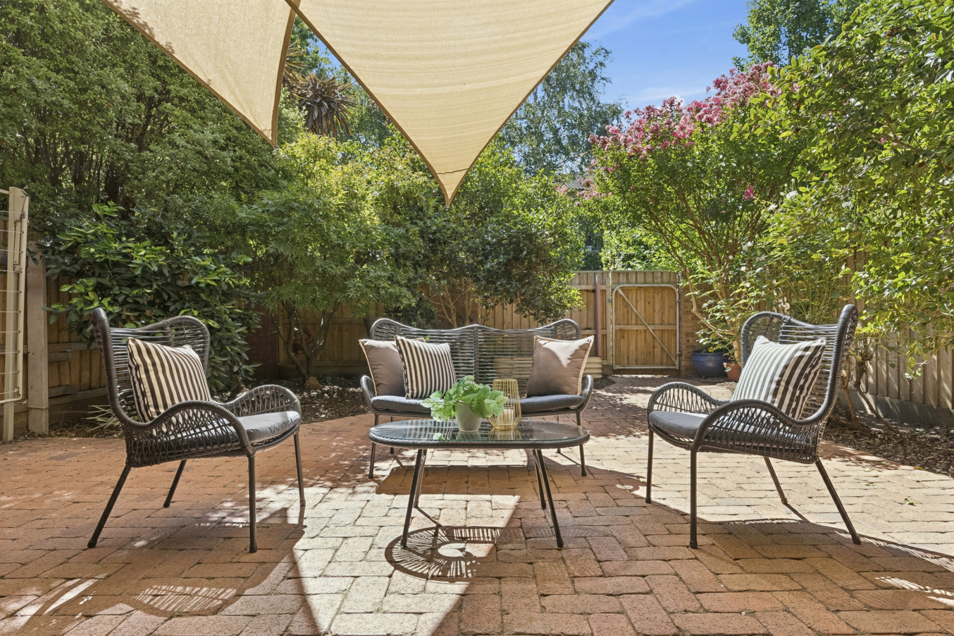 Sliding doors open to the large north-facing courtyard, a peaceful and private outdoor space surrounded by greenery. Designed to be low maintenance, it offers the perfect place to relax or entertain. The courtyard also provides direct access to the complex's established gardens, giving you even more outdoor space to enjoy.