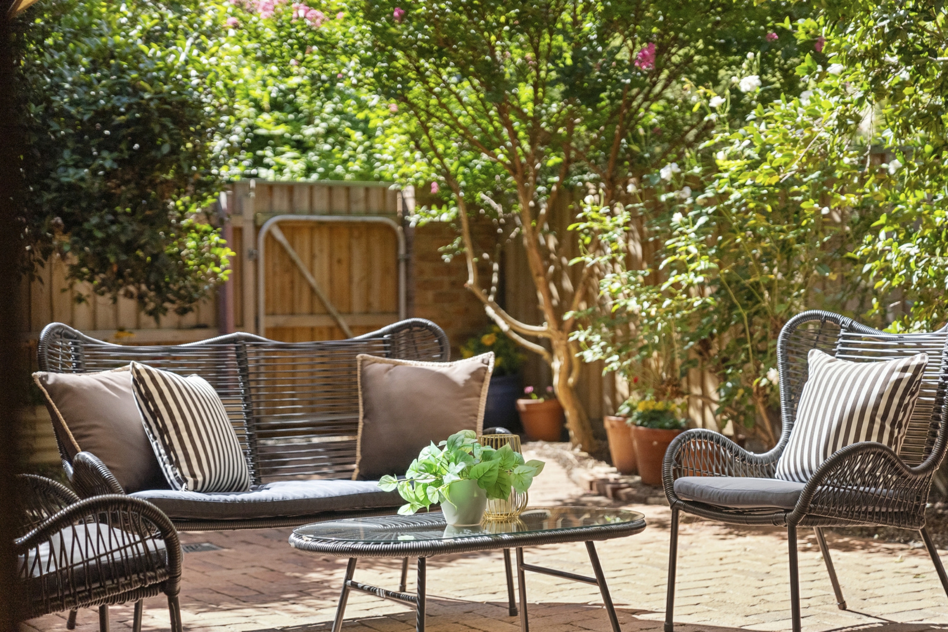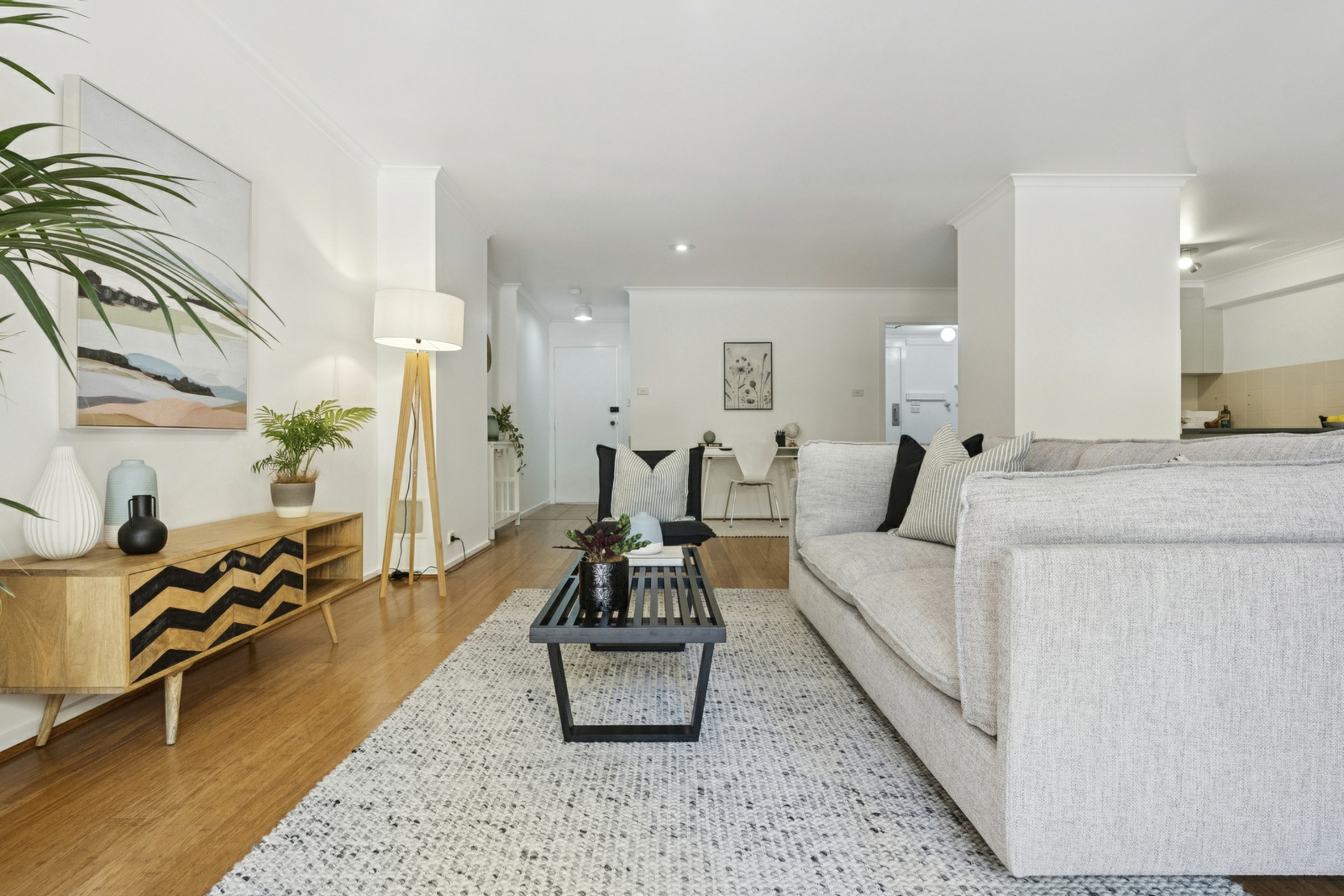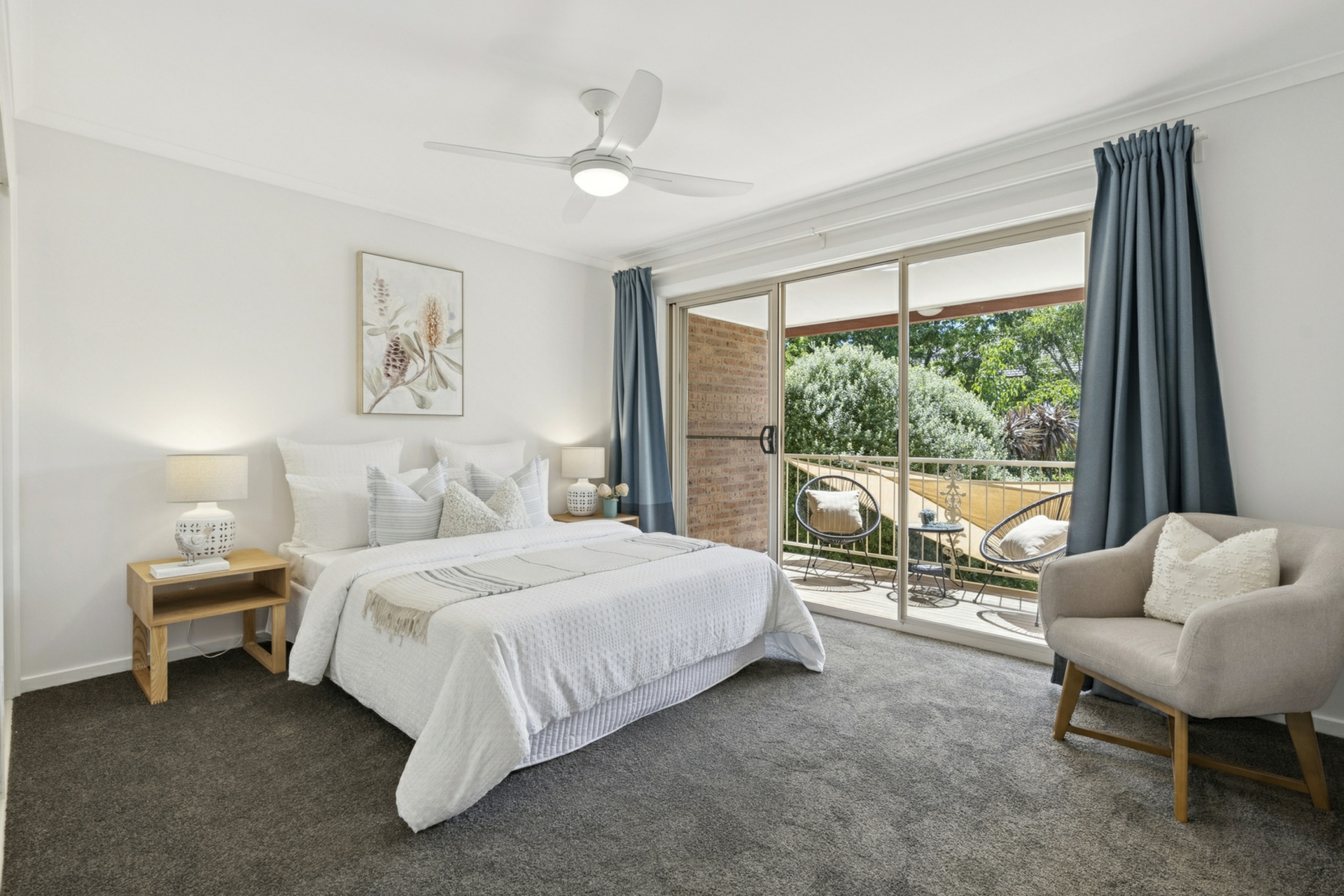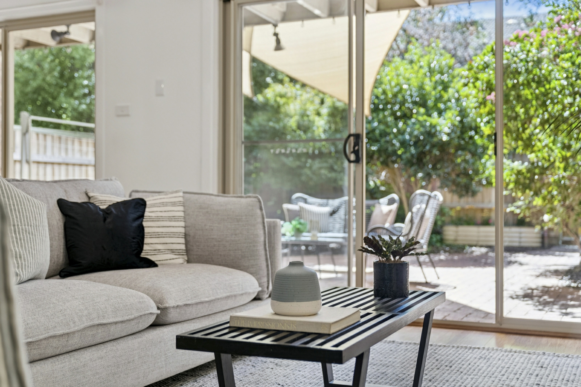 Sliding doors open to the large north-facing courtyard, a peaceful and private outdoor space surrounded by greenery. Designed to be low maintenance, it offers the perfect place to relax or entertain. The courtyard also provides direct access to the complex's established gardens, giving you even more outdoor space to enjoy.