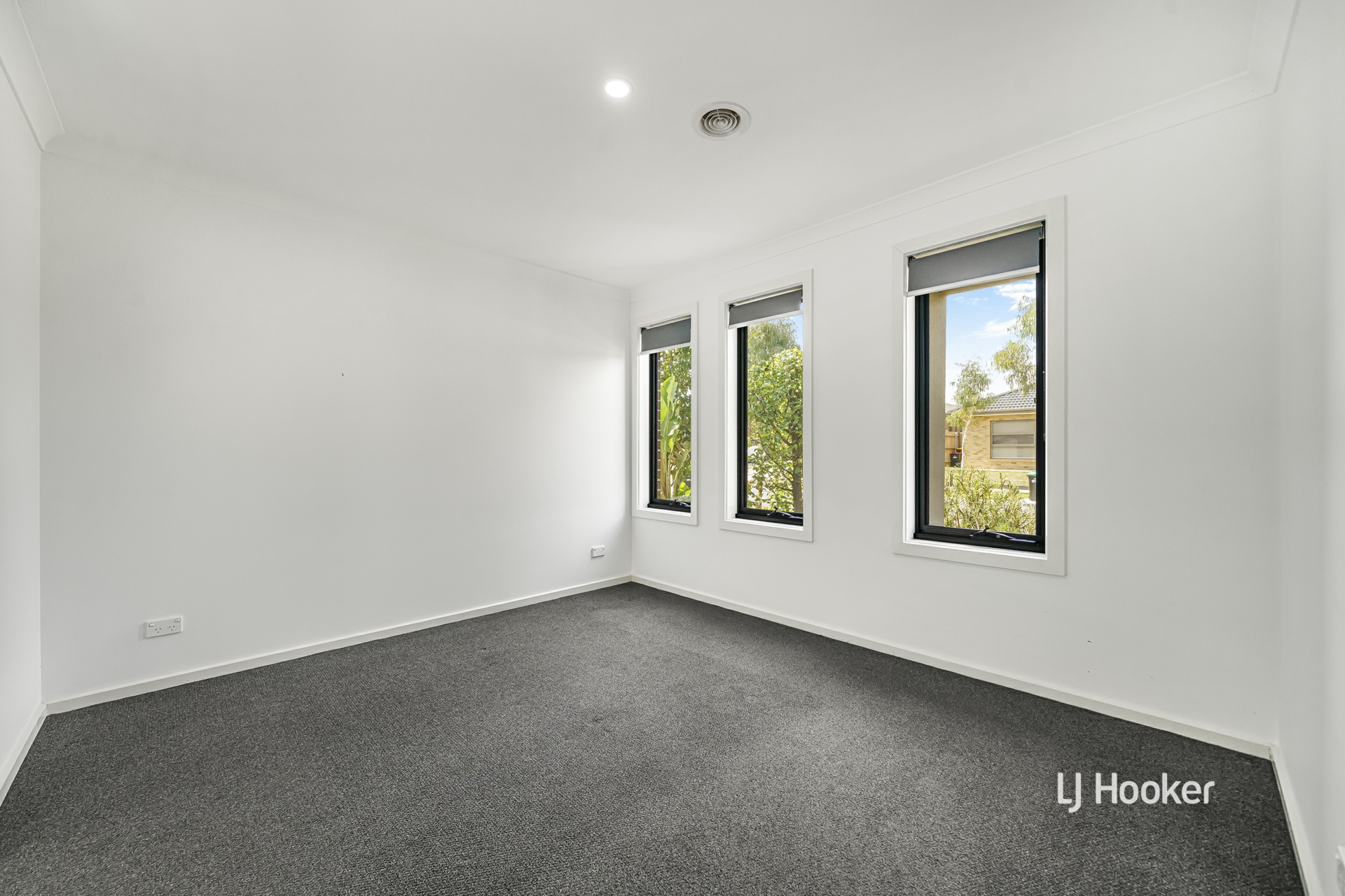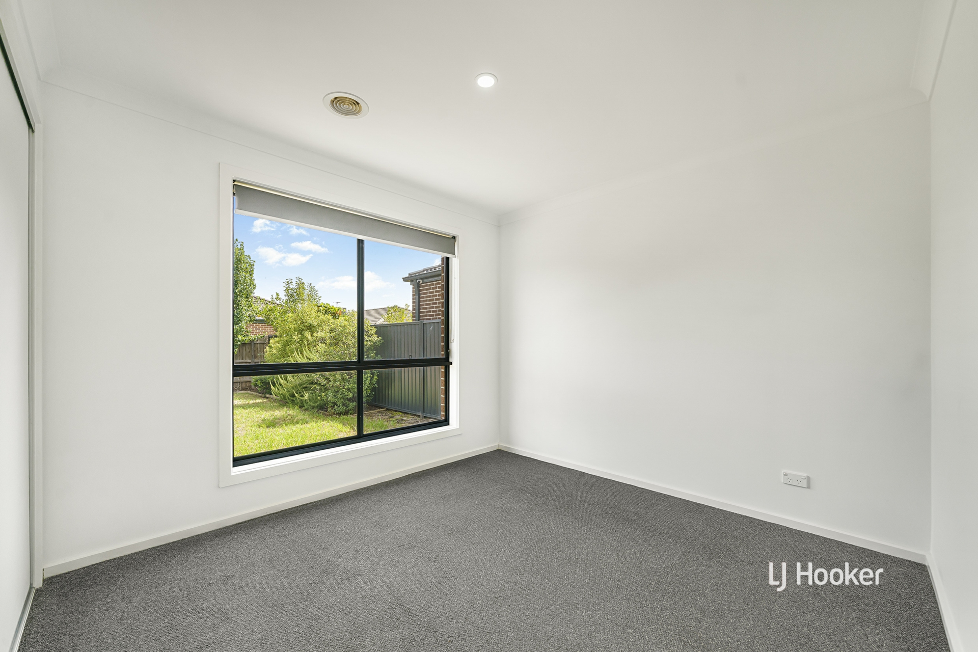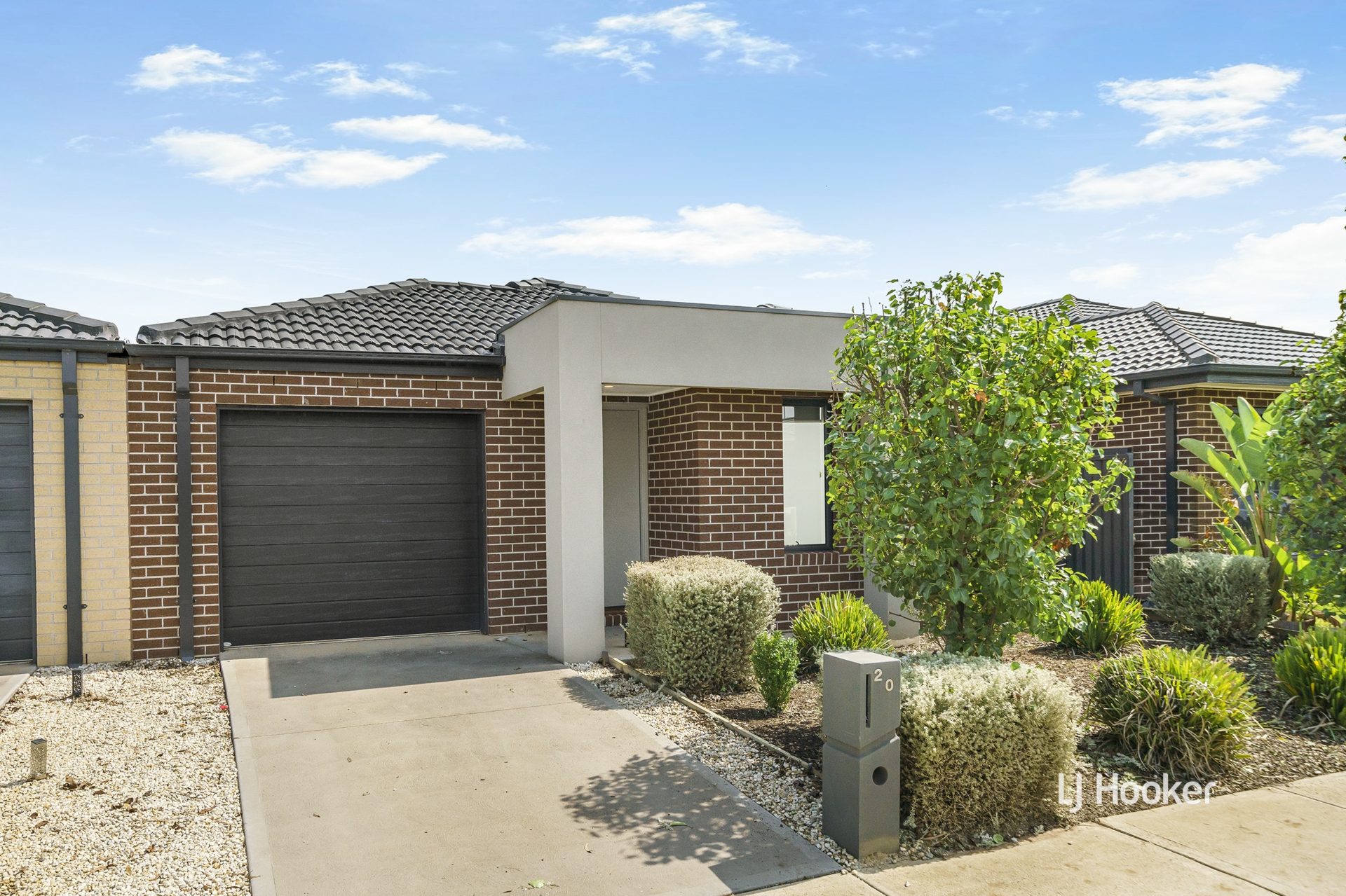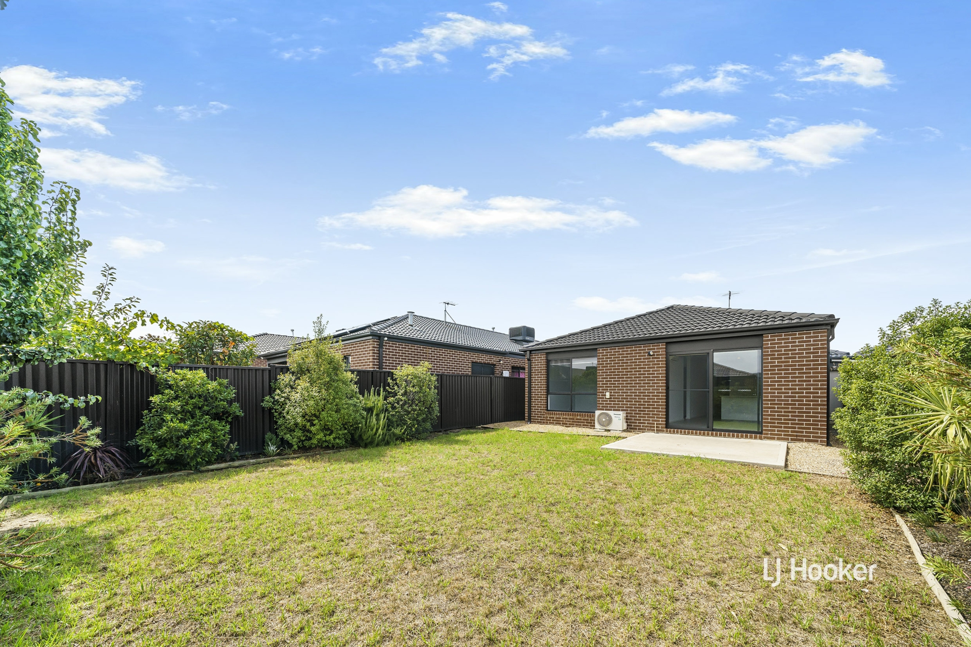 - A spacious backyard with landscaped garden beds offers a low-maintenance outdoor space.