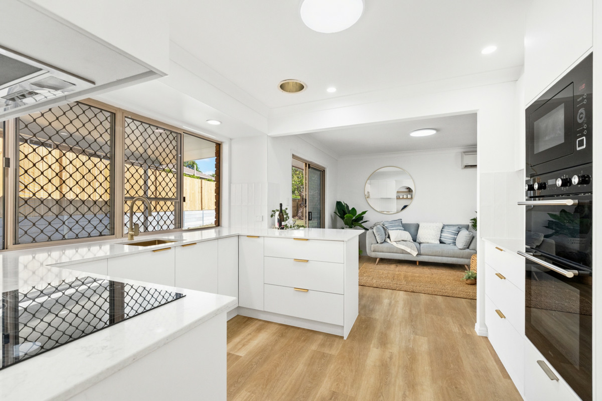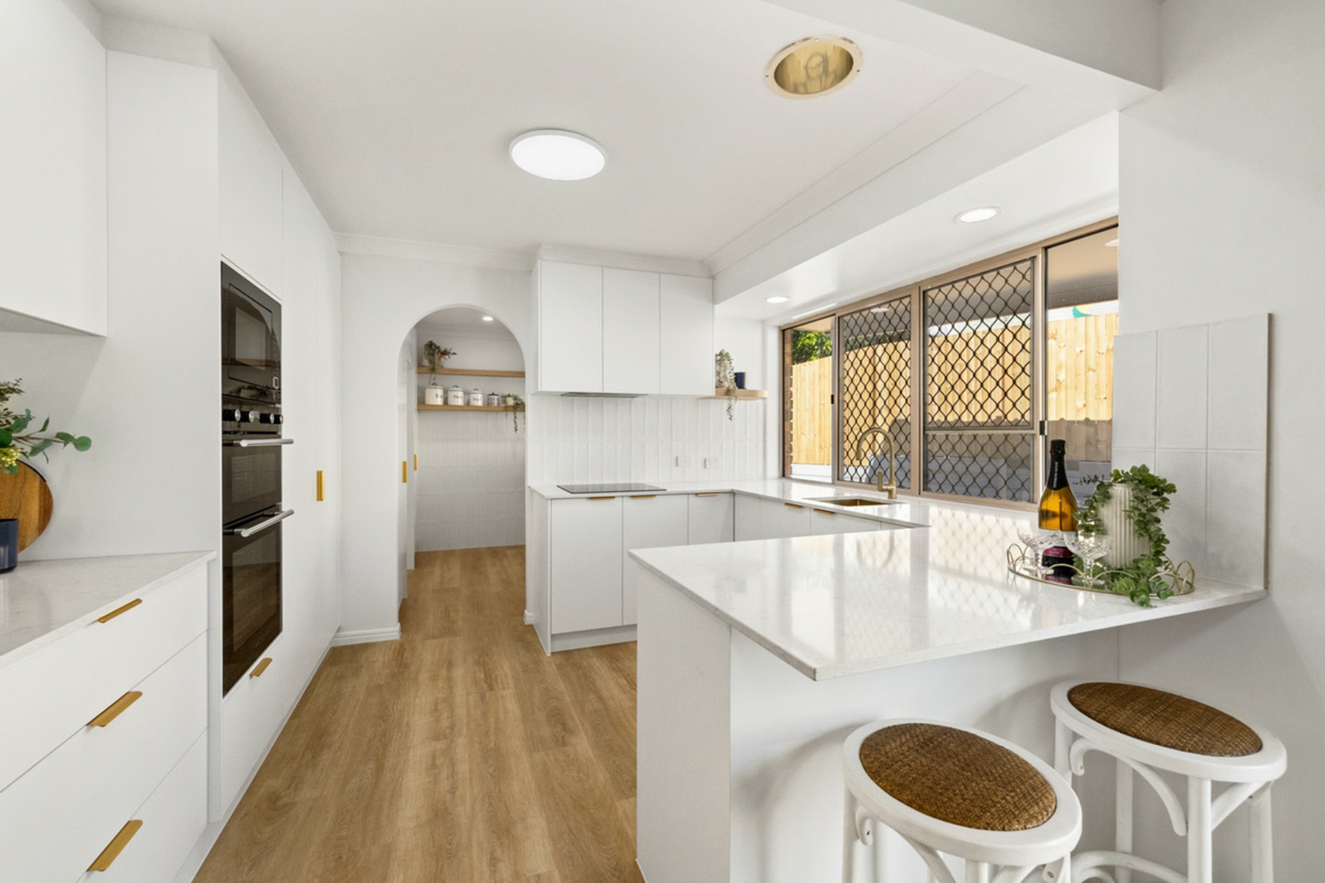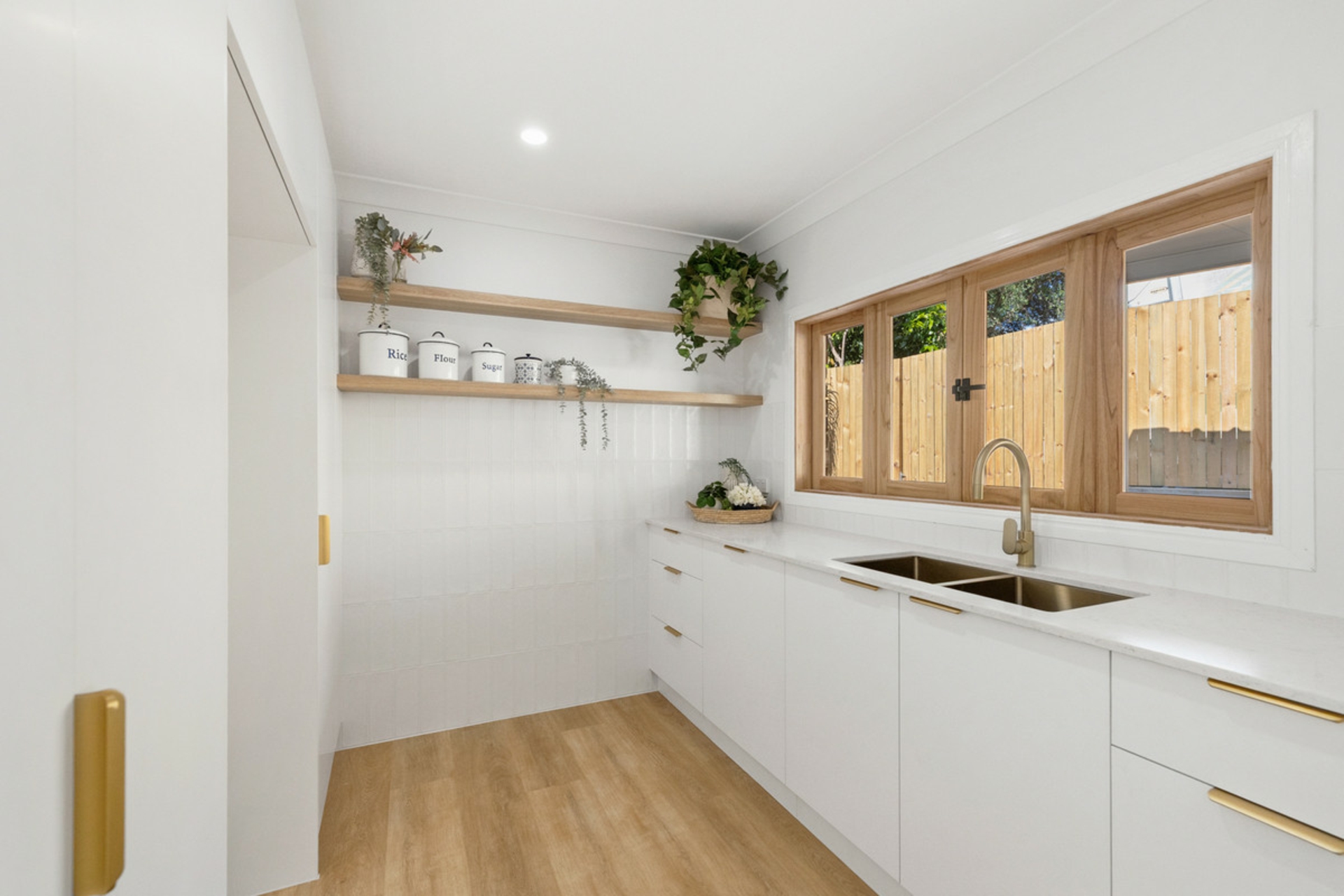 -Newly renovated kitchen with double oven, built in microwave, dishwasher, double pantry, stone bench tops, electric cooktop, ample cupboard and draw space, loads of bench space and stunning butler's pantry with double sink, heaps of storage and large servery to alfresco area.