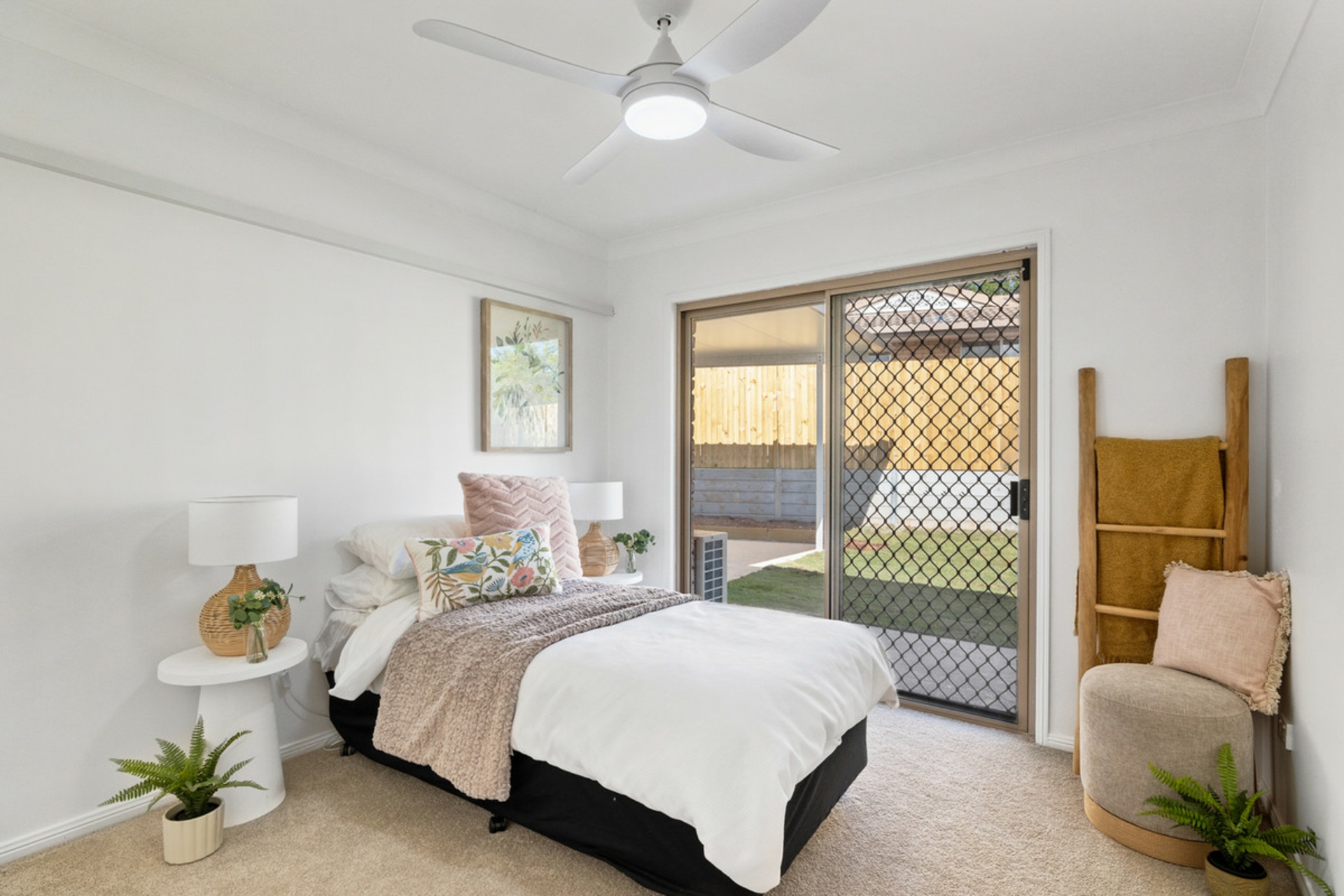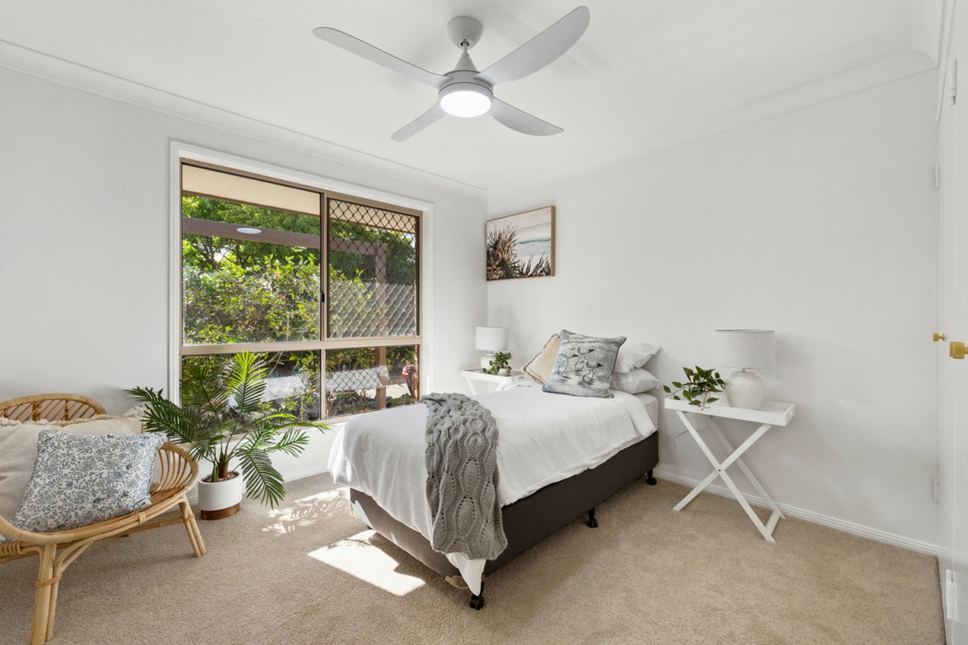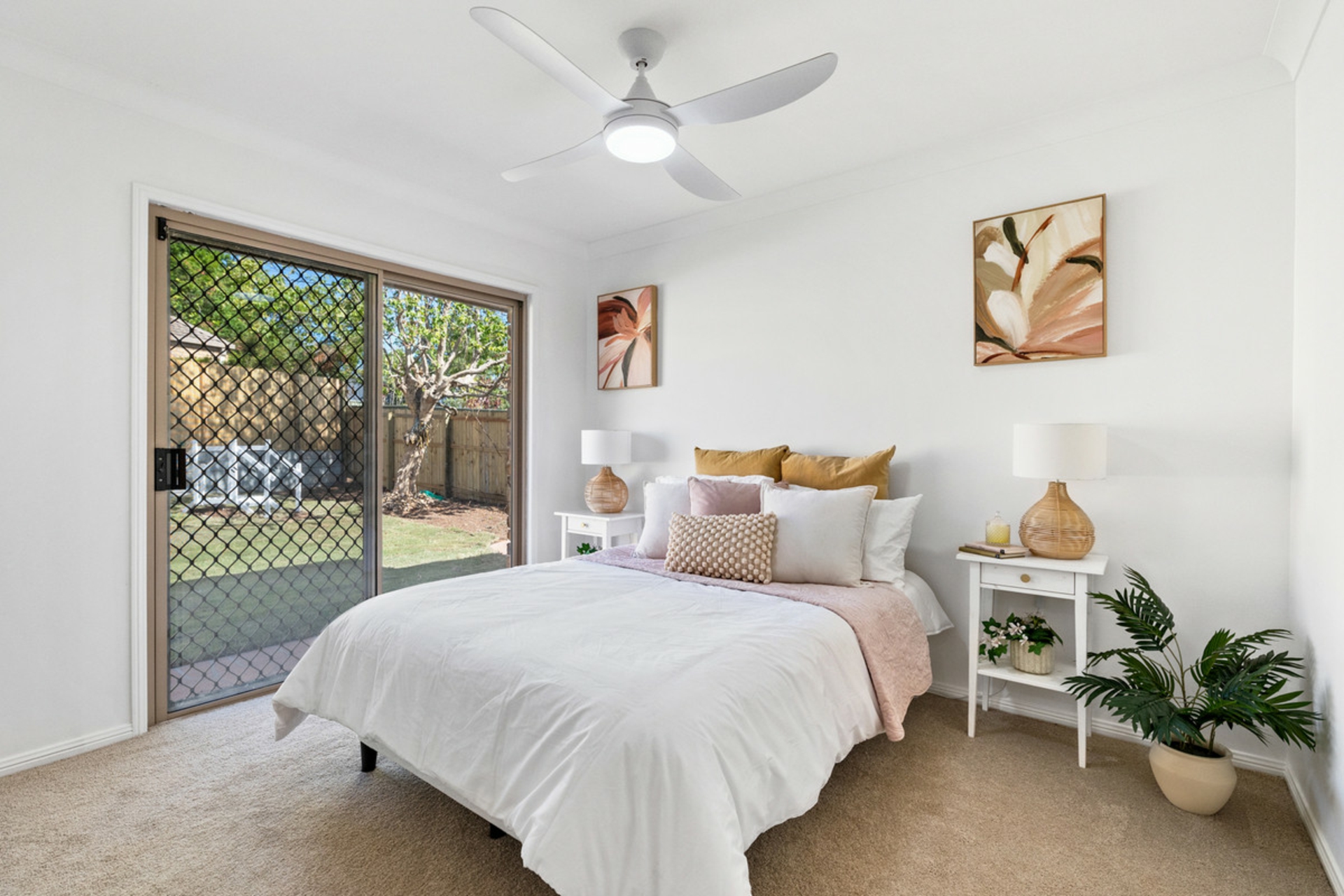 -Master bedroom with walk in wardrobe, fan and exceptional ensuite with large shower, stylish ensuite and brushed brass tapware.