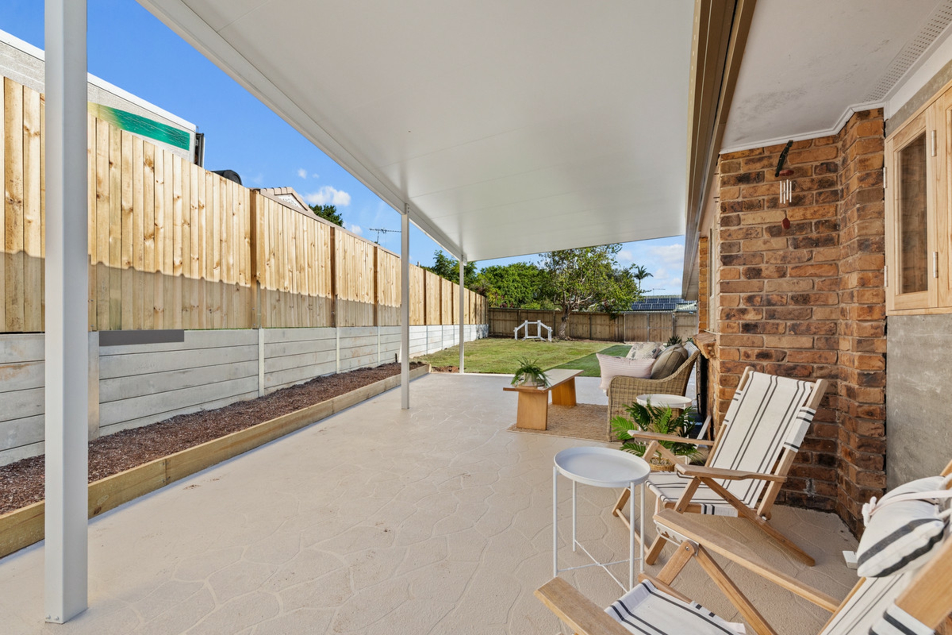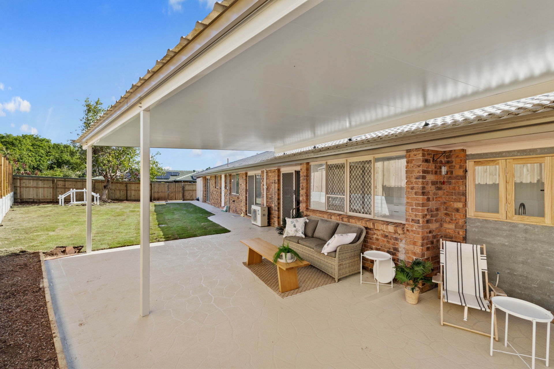 - Brand new, large back patio overlooking back garden with lawns and garden beds.