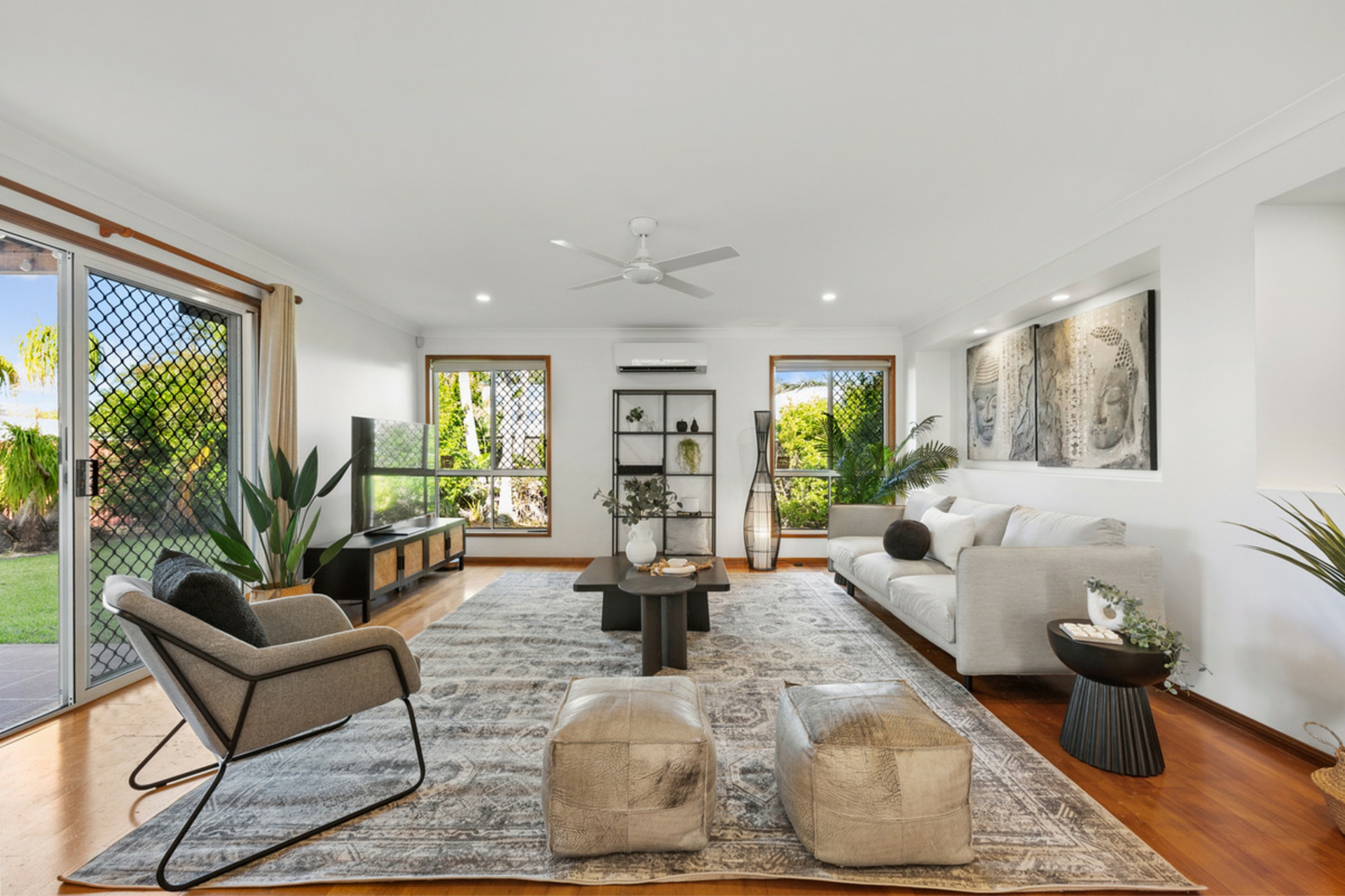 The floorplan will suit extended family groups with a large kitchen at the heart of the home, four large, flexible living areas, a stunning master suite opening onto a private deck, four additional good-sized bedrooms and luxuriously appointed new bathrooms. Redlands College, Wellington Point State school and the train station are walking distance and the shops, cafes and restaurants at Wellington Point Village only a short drive away.