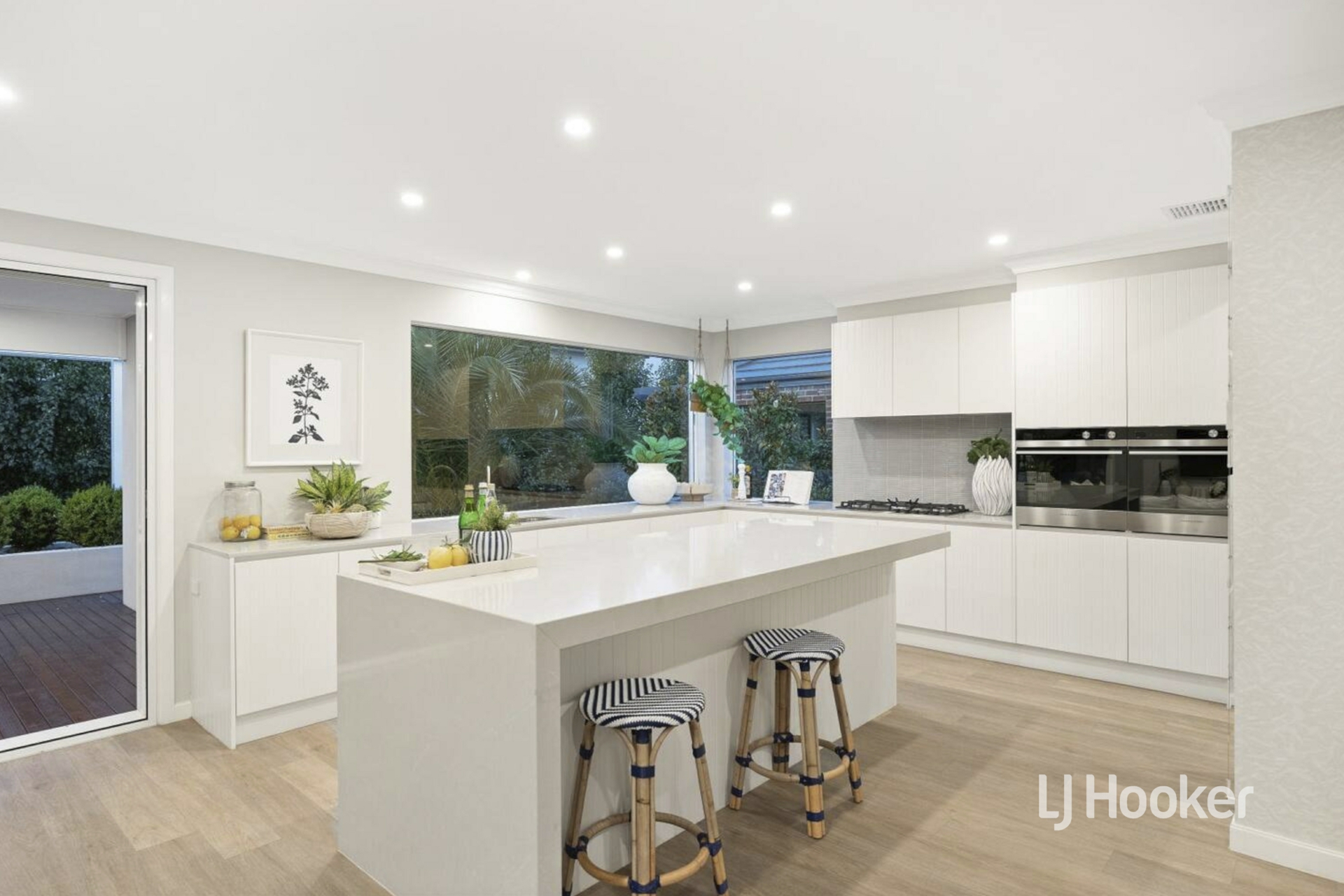 - A spectacular open-plan kitchen showcasing a striking 60mm stone island, refined 20mm stone benchtops, double oven/grill, quality 20mm stainless-steel appliances and extensive storage, further enhanced by a butler's pantry and walk-in pantry