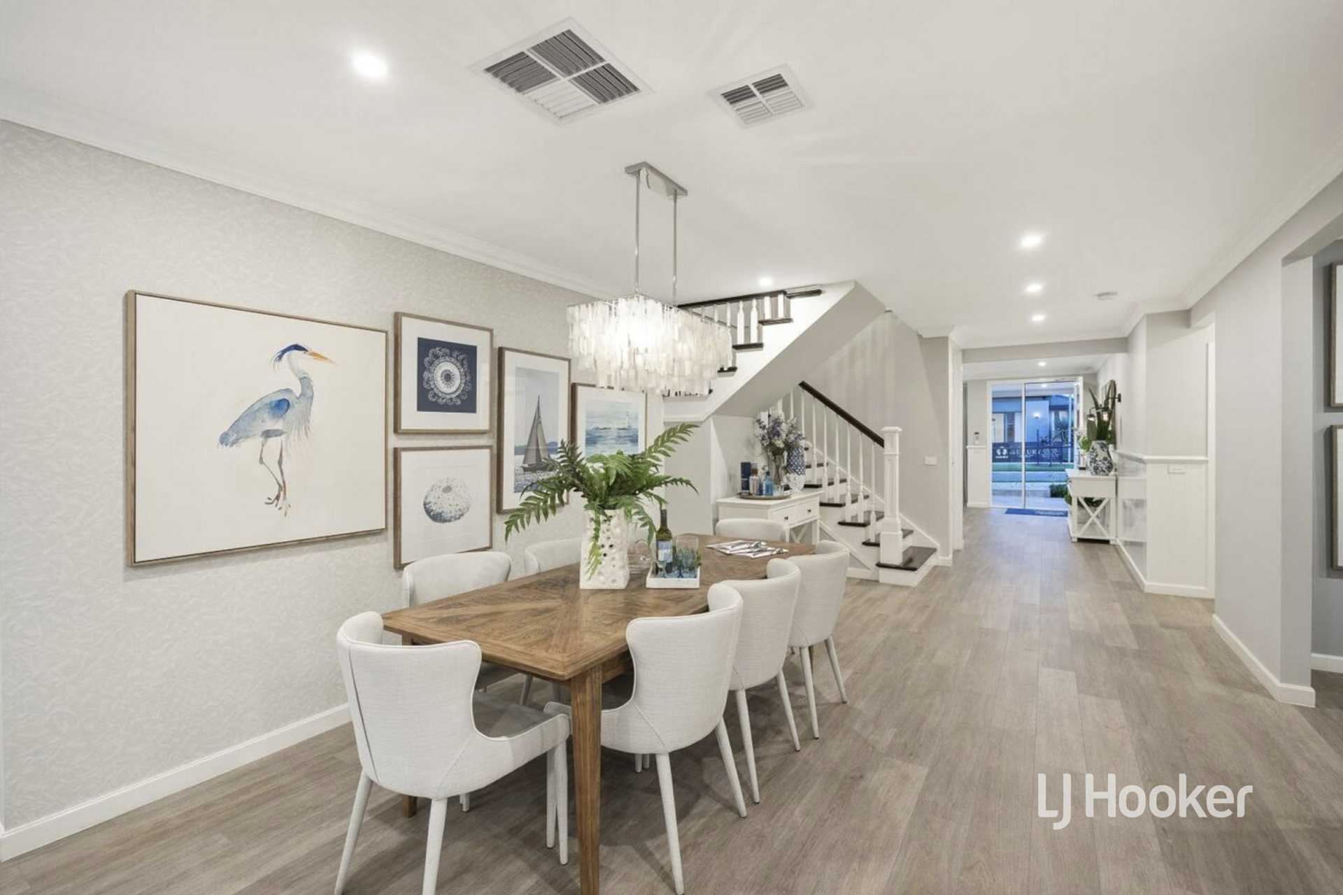 - Greeted upon entry by an exquisitely appointed front lounge enhanced by statement lighting, stunning sheer curtains and beautiful natural light, flowing through to an expansive open-plan family and dining domain, with a refined upstairs retreat completing three impressive living zones across both levels.
