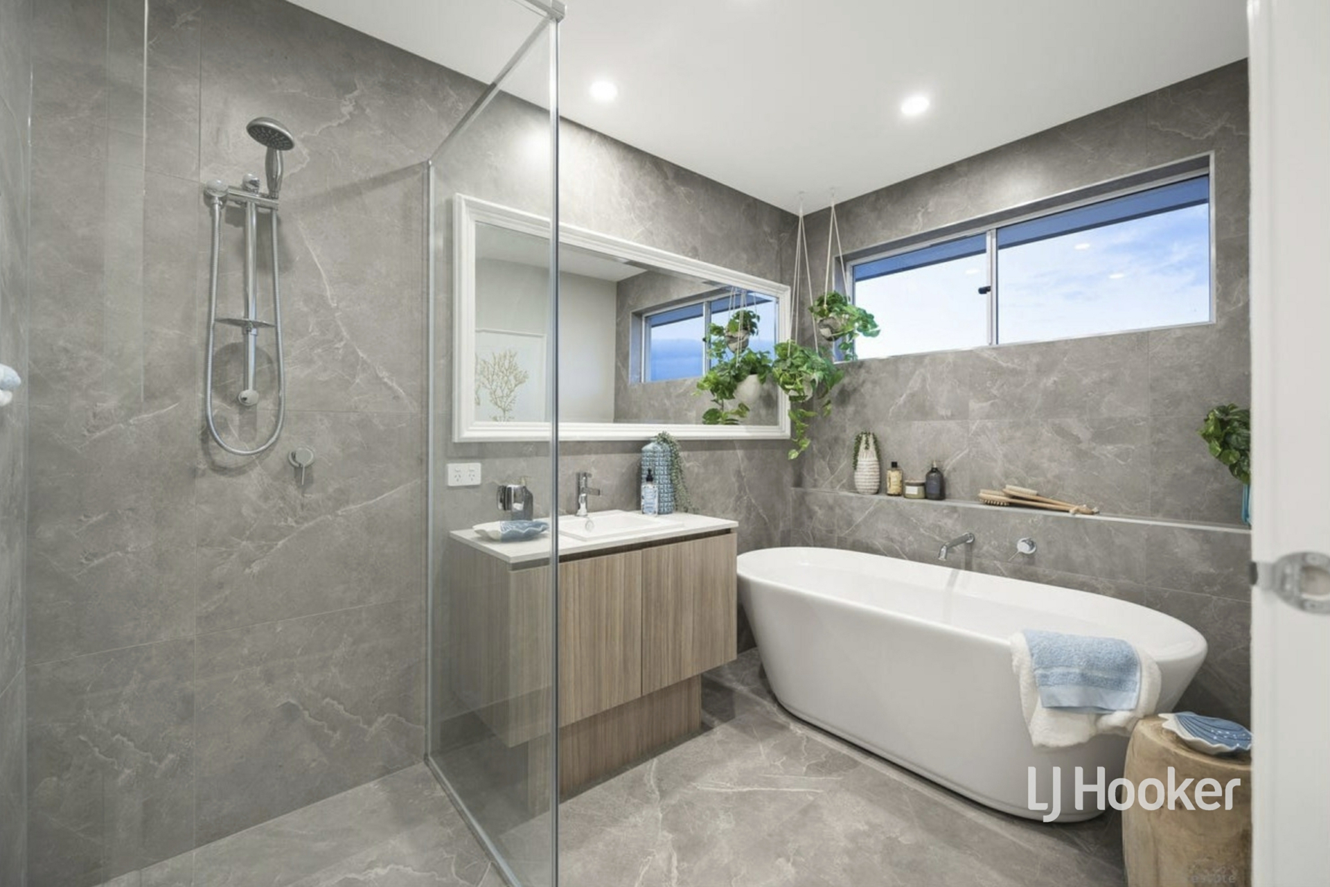 - Comprising four luxurious bedrooms upstairs, including an indulgent main suite featuring a walk-through robe and opulent ensuite with floor-to-ceiling tiling, double vanity on a 20mm stone benchtop and a dedicated shower alcove with two showerheads; the remaining bedrooms offer double sliding-door built-in robes and are serviced by a beautifully appointed central bathroom and separate toilet.